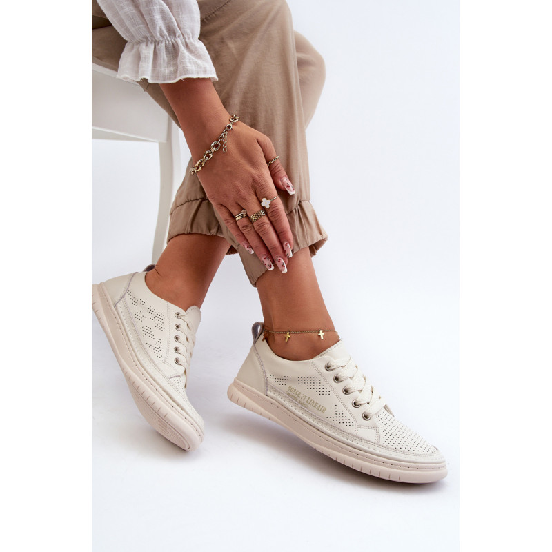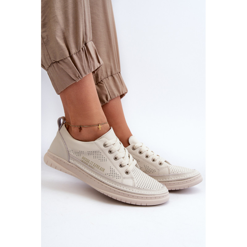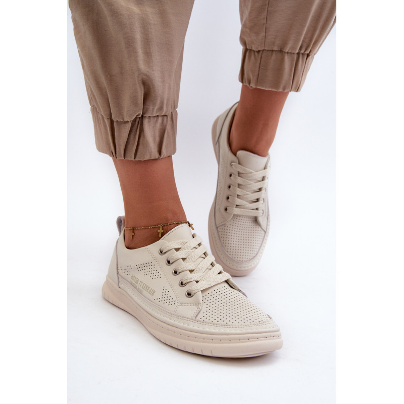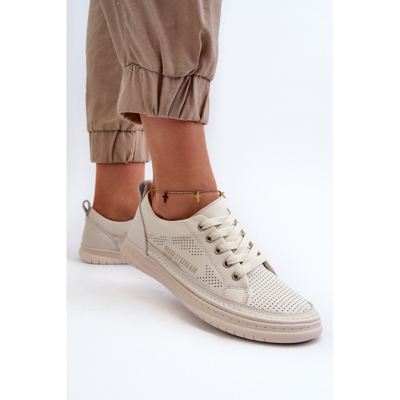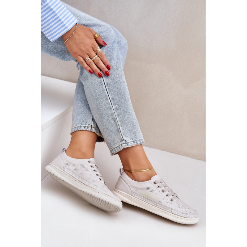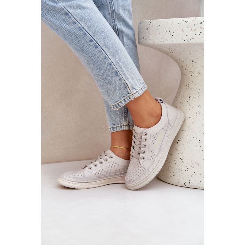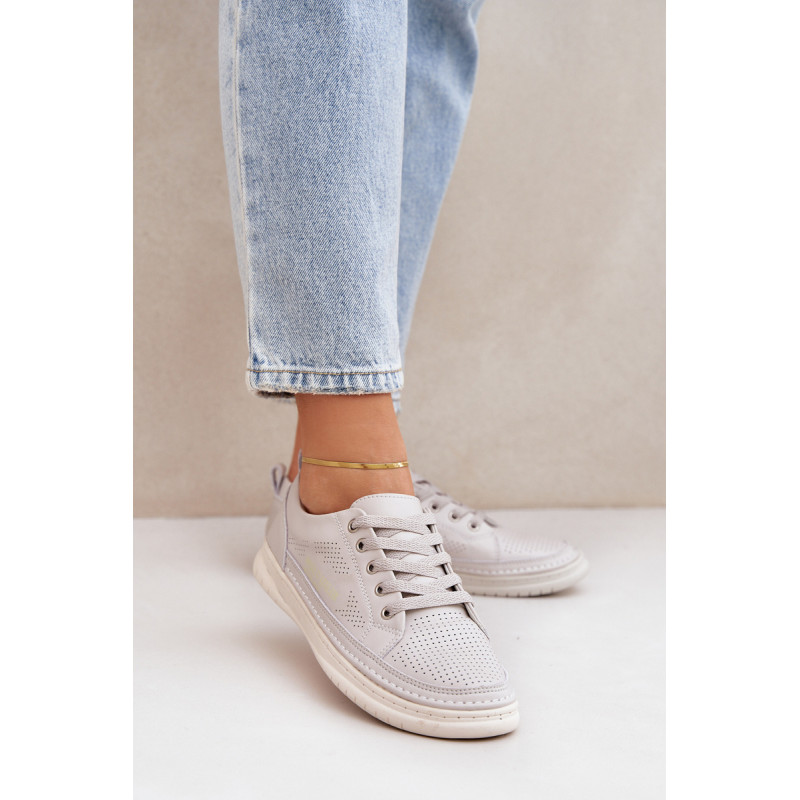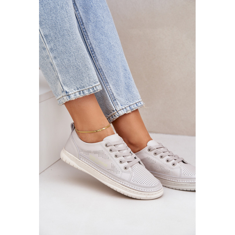 Klasikinio stiliaus sportbačiai guminiu padu. Su žemu viršumi prieš kulkšnį. Modelis suvarstomas apvaliais raišteliais. Pagaminti iš natūralios, minkštos odos su perforacijomis, todėl itin pralaidūs orui ir patogūs dėvėti. Patogus vidpadis taip pat pagamintas iš natūralios odos. Jie puikiai derės prie kasdieninio stiliaus, ypač prie džinsų ar šortų. Lengvi ir madingi – jų turėtum turėti savo garderobe! Rinkdamiesi dydį žiūrėkite dydžių lentelę.