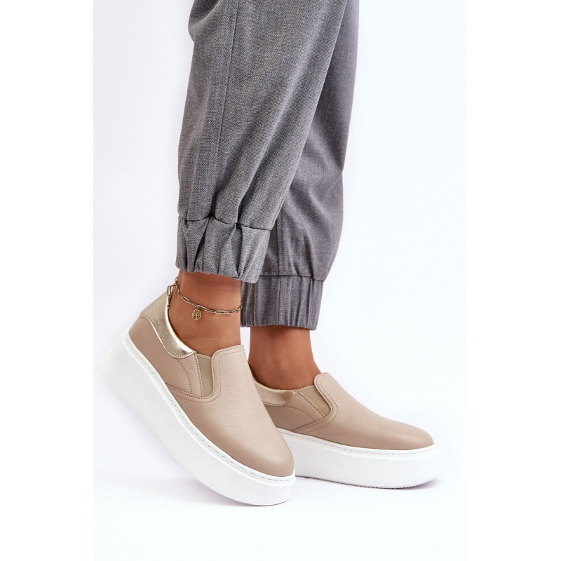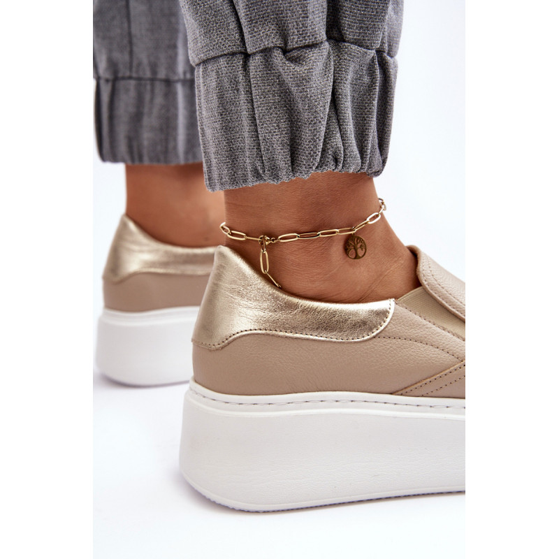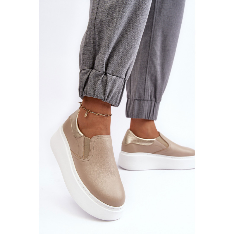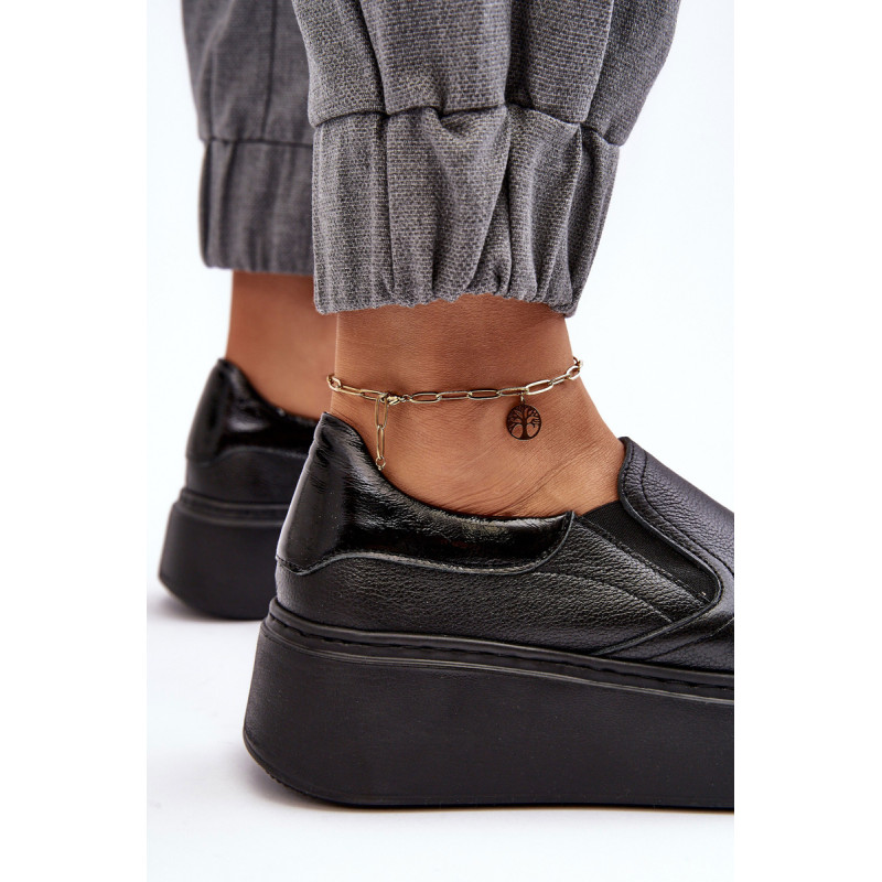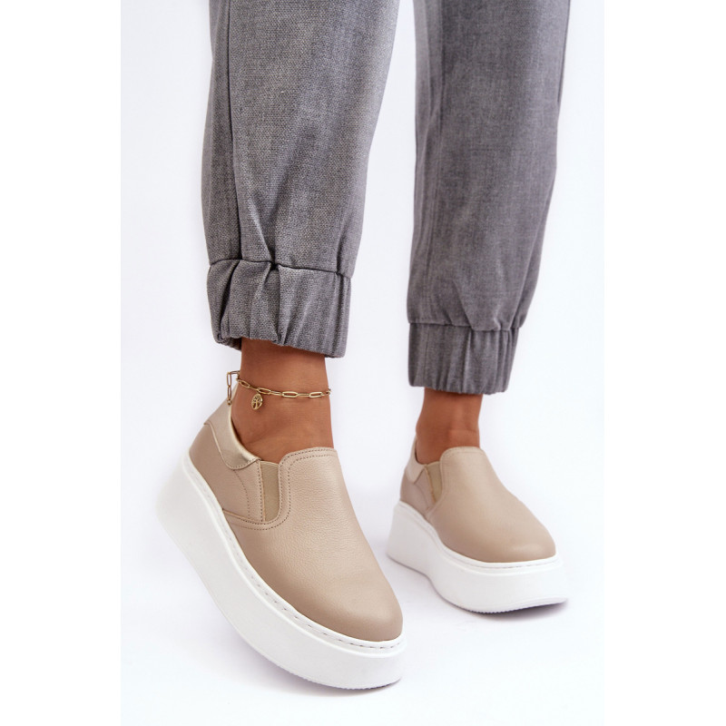 Sportiniai batai, pagaminti iš aukštos kokybės natūralios odos. Įrengtas ant didžiulės platformos. Slip-on modelis. Minkštas odinis vidpadis garantuoja komfortą visą dieną. Suapvalinti kojų pirštai. Sustiprintas kulnas. Šį modelį būtinai turite turėti savo drabužių spintoje! Rinkdamiesi dydį, vadovaukitės dydžių lentele.