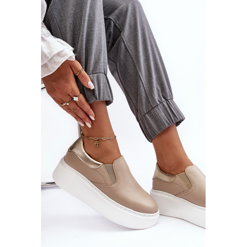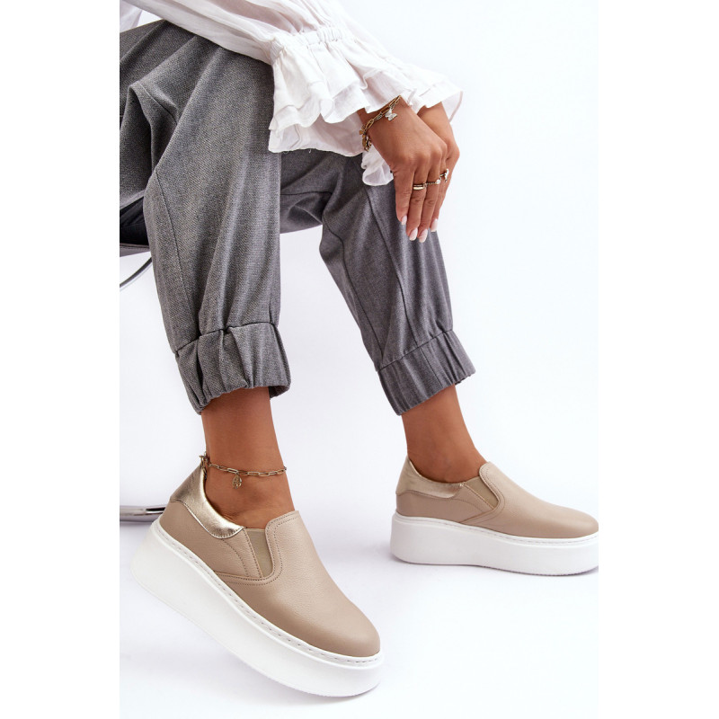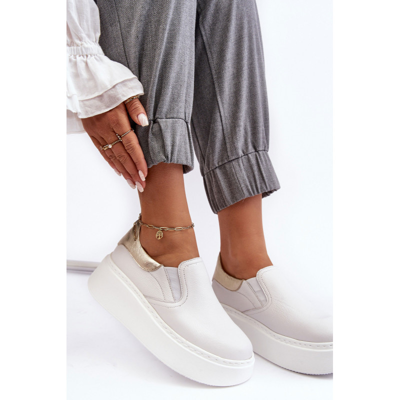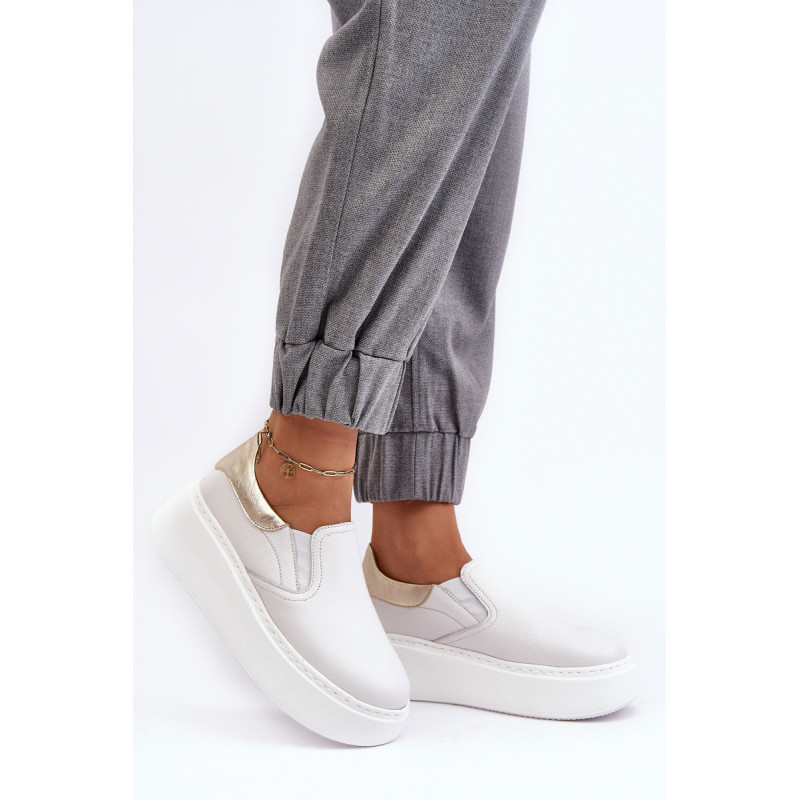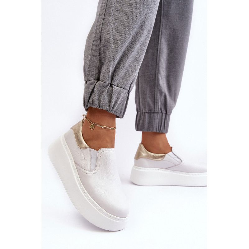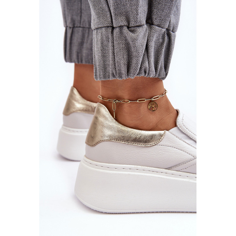 Sportiniai batai, pagaminti iš aukštos kokybės natūralios odos. Įrengtas ant didžiulės platformos. Slip-on modelis. Minkštas odinis vidpadis garantuoja komfortą visą dieną. Suapvalinti kojų pirštai. Sustiprintas kulnas. Šį modelį būtinai turite turėti savo drabužių spintoje! Rinkdamiesi dydį, vadovaukitės dydžių lentele.