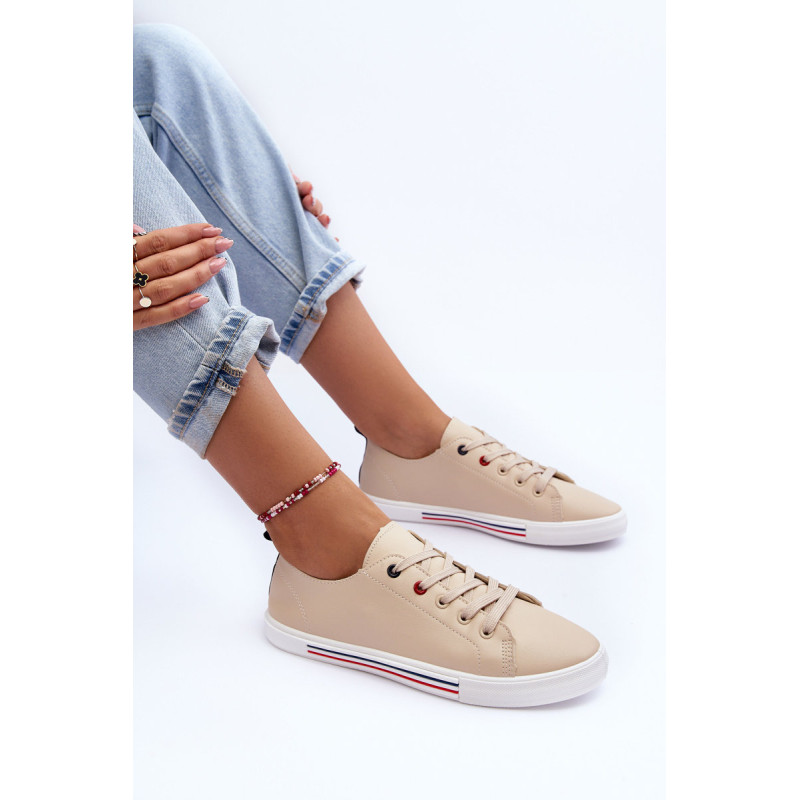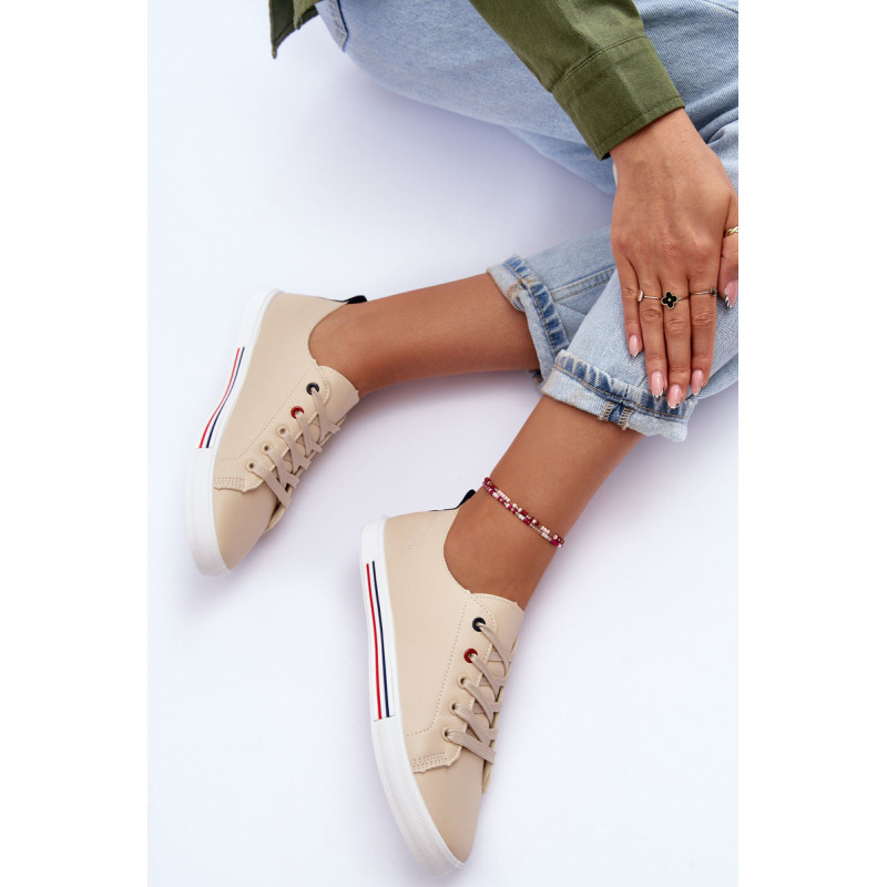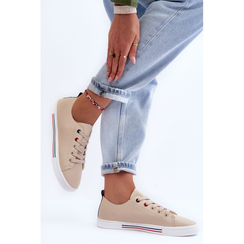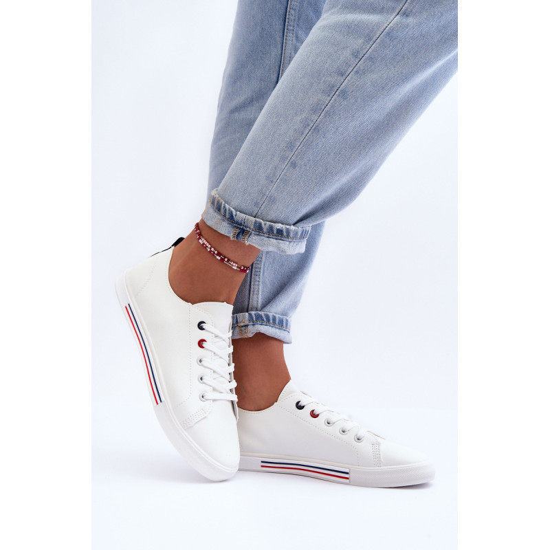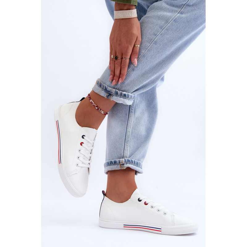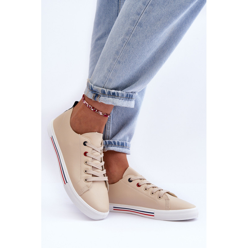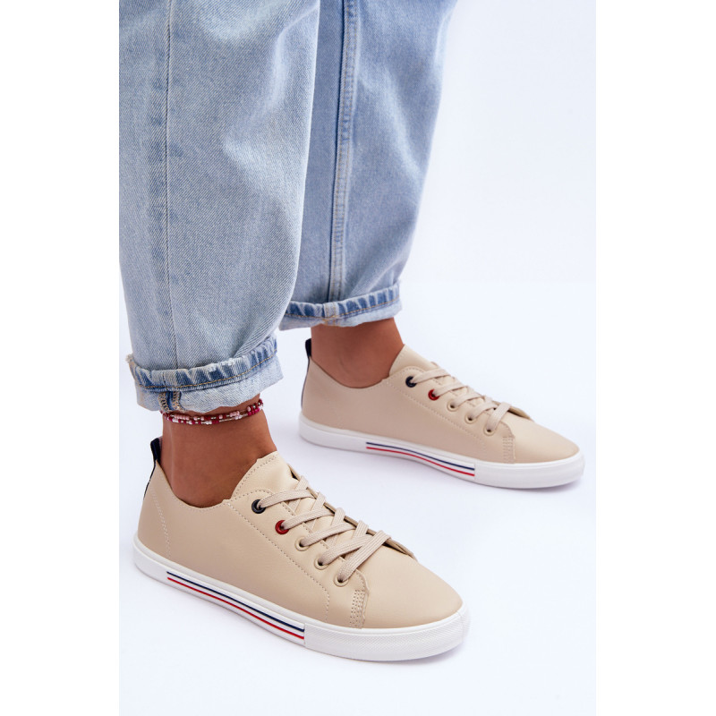 Moteriški sportiniai bateliai ant žemo pado. Klasikinis suvarstomas modelis. Minkštas vidpadis leidžia patogiai dėvėti batus. Apvalios formos pirštai. Šie sportbačiai tikrai bus daugelio stilių hitas! Rinkdamiesi dydį, vadovaukitės dydžių lentele.