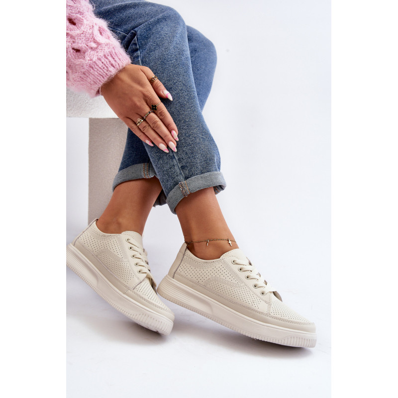 Moteriški sportiniai bateliai puikiai tinka kasdienei veiklai. Vidpadis kartu su viršutine dalimi yra iš natūralios odos. Nustatyti ant platformos. Be to, jie turi šiek tiek sustiprintą kulną. Šį klasikinį stilių galite naudoti daugeliui drabužių! Rinkdamiesi dydį žiūrėkite dydžių lentelę.
