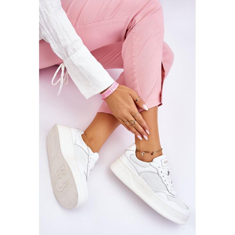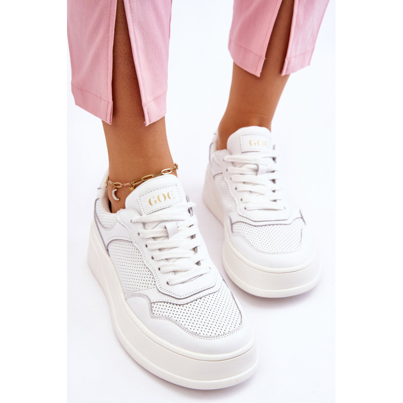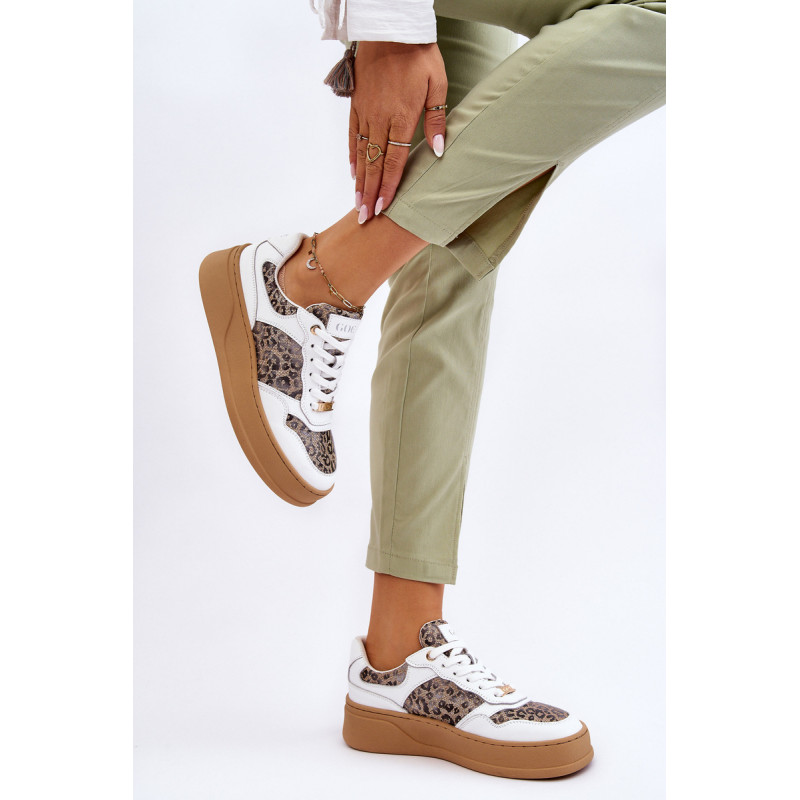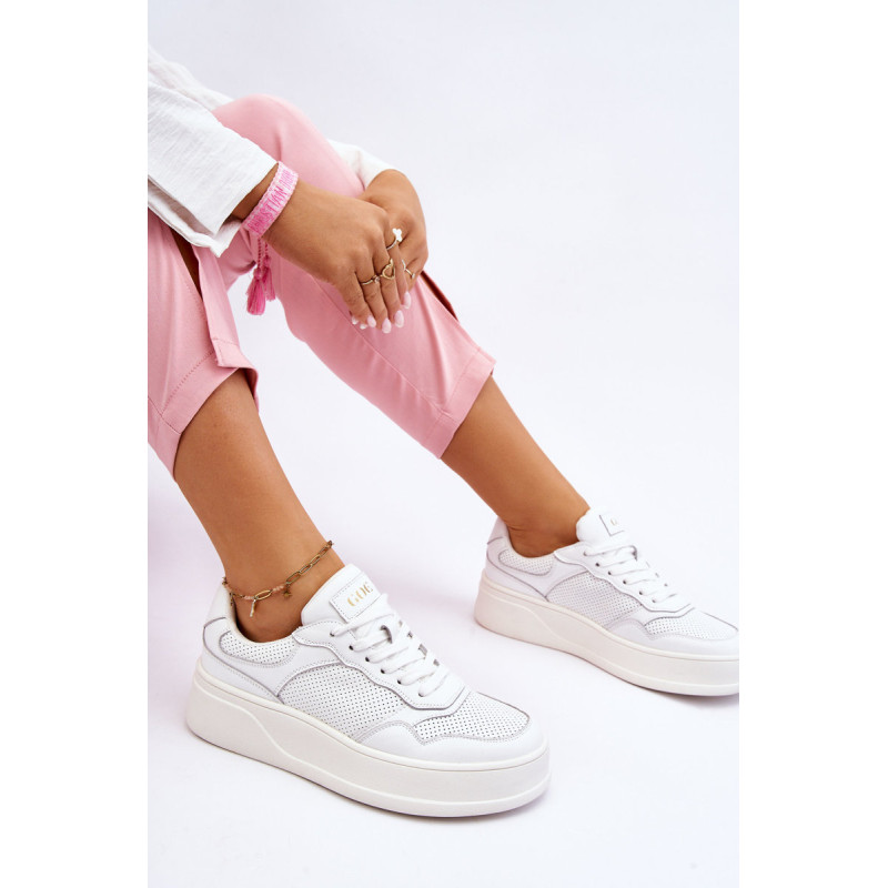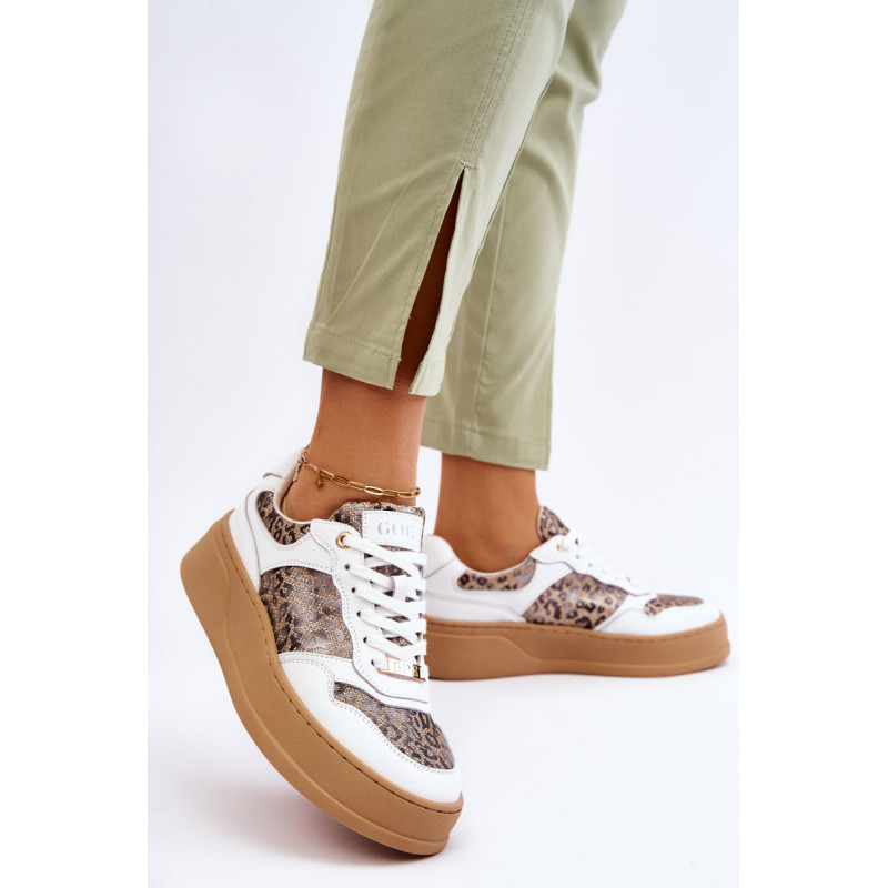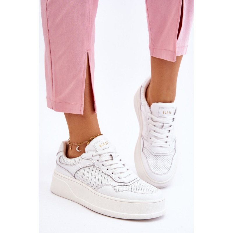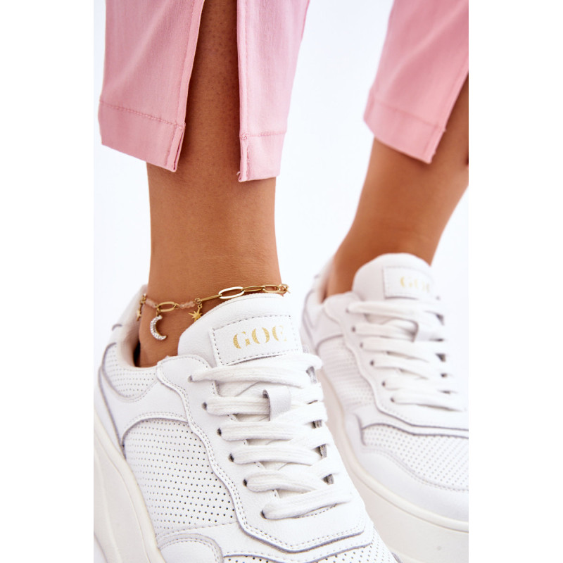 Madingi ir patogūs GOE sportiniai bateliai yra pagaminti iš aukštos kokybės natūralios odos. Viršutinės dalies nugara sutvirtinta. Minkštas, ekologiškos odos vidpadis garantuoja komfortą visą dieną. Batai dedami ant platformos su neslidžiu padu. Klasikinis suvarstymas leis tinkamai priderinti avalynę prie kojos pločio. Rinkdamiesi dydį, vadovaukitės dydžių lentele.