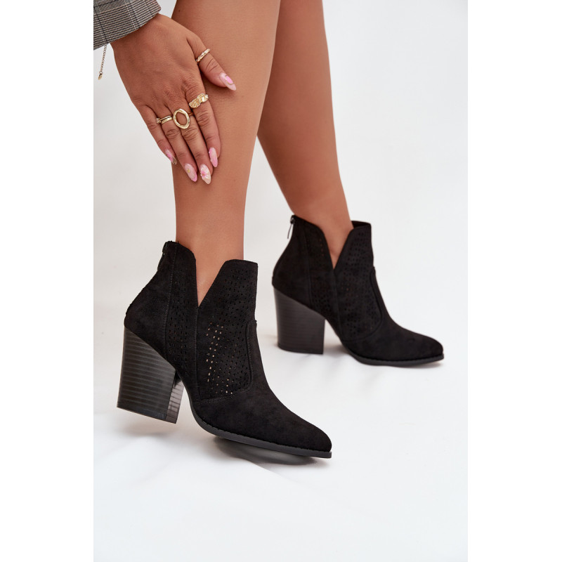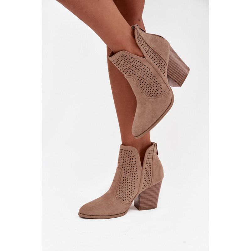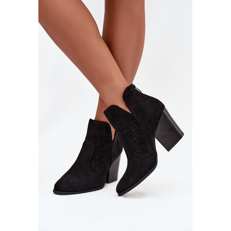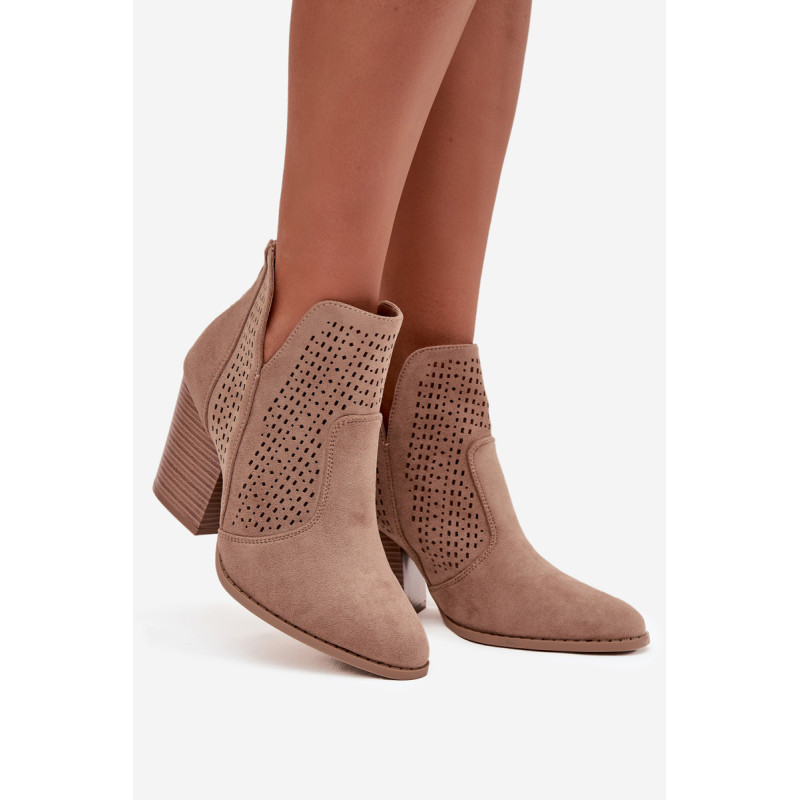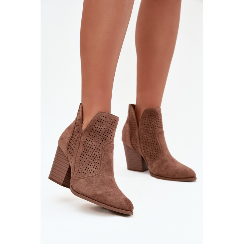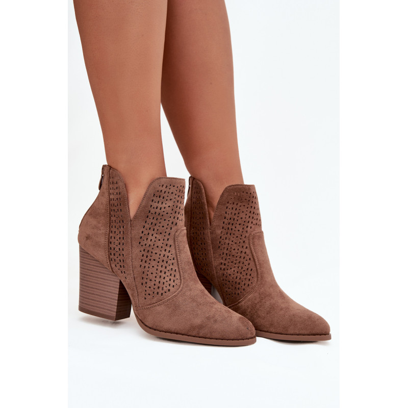 Moteriški auliniai batai iš S. Barski prekės ženklo, pagaminti iš ekologiško zomšos. Pastatyti ant stabilios kubo formos kulno, subtiliai išplečia siluetą. Modelis išsiskiria madingais iškirpimais ir perforuotu raštu ant viršaus, kurie suteikia visam dizainui originalumo. Užsegimas užpakalyje palengvina apsivilkimą ir nusiėmimą. Šie batai puikiai tinka tiek kasdieniams, tiek elegantiškesniems įvaizdžiams. Renkantis dydį, vadovaukitės dydžių lentele.
