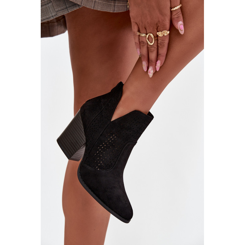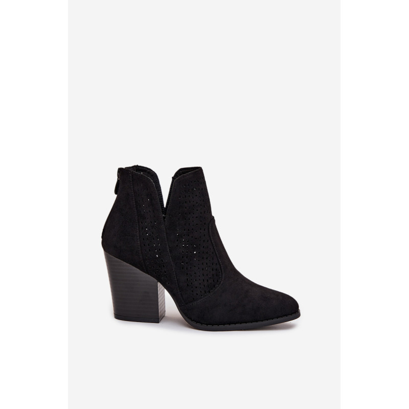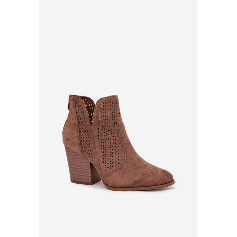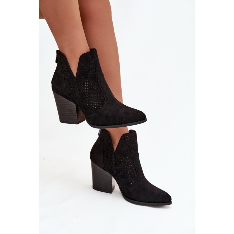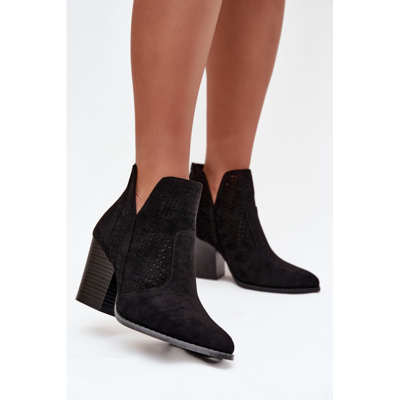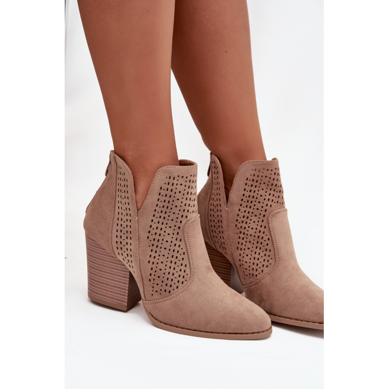 Moteriški auliniai batai iš S. Barski prekės ženklo, pagaminti iš ekologiško zomšos. Pastatyti ant stabilios kubo formos kulno, subtiliai išplečia siluetą. Modelis išsiskiria madingais iškirpimais ir perforuotu raštu ant viršaus, kurie suteikia visam dizainui originalumo. Užsegimas užpakalyje palengvina apsivilkimą ir nusiėmimą. Šie batai puikiai tinka tiek kasdieniams, tiek elegantiškesniems įvaizdžiams. Renkantis dydį, vadovaukitės dydžių lentele.