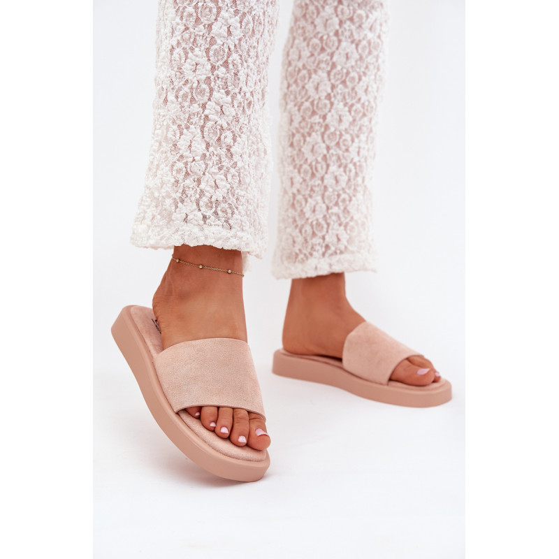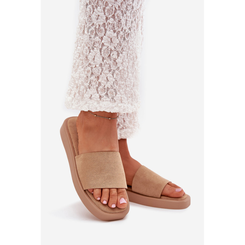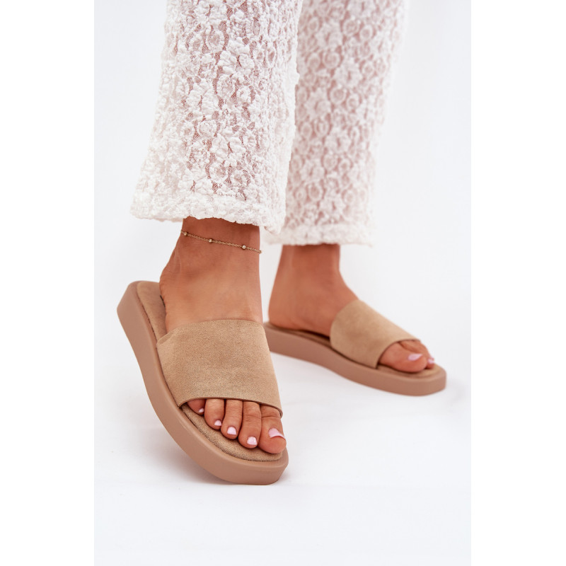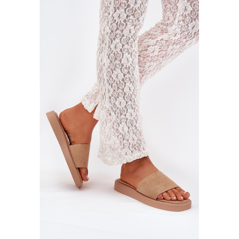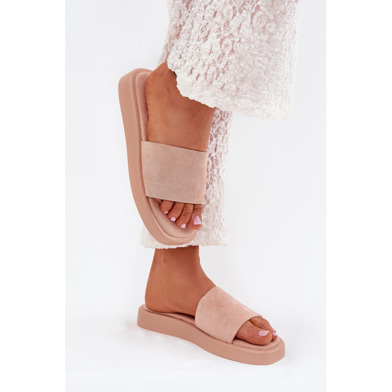 Klasikiniai moteriški šlepetės iš ekosuedės, įrengtos ant platformos, sujungia patogumą su paprastu stiliumi. Idealiai tinka kasdieniniams įvaizdžiams, puikiai dera su suknelėmis, sijonais ar kelnėmis, užtikrindamos komfortą ir elegantišką išvaizdą kasdieniam dėvėjimui. Renkantis dydį, vadovaukitės dydžių lentele.