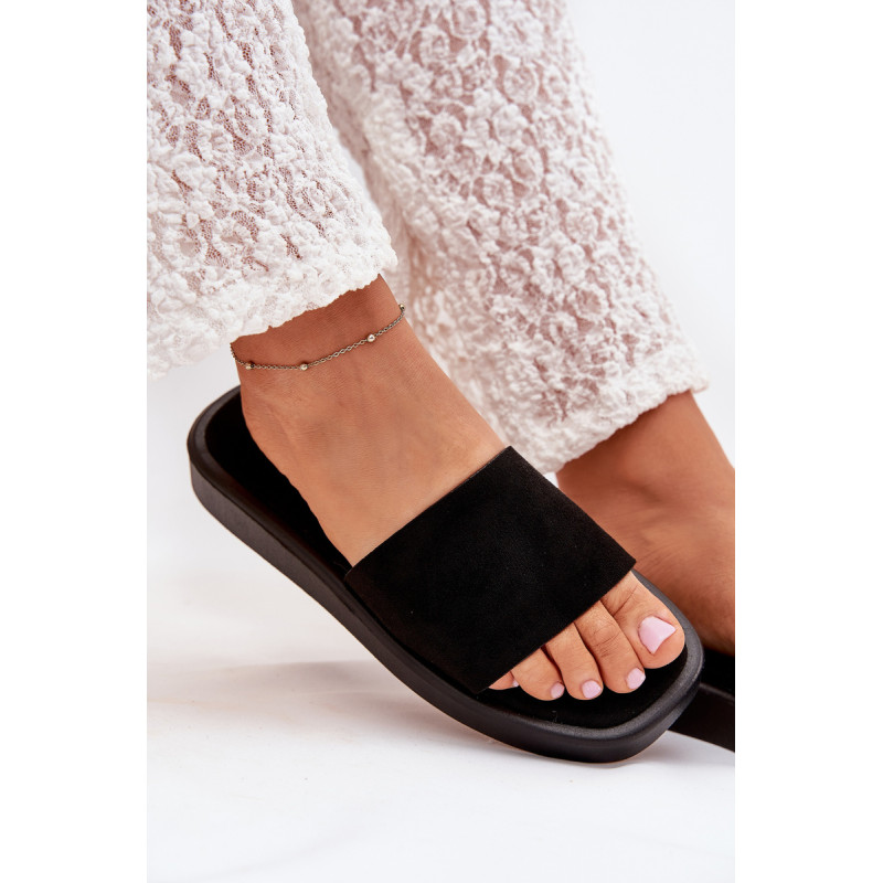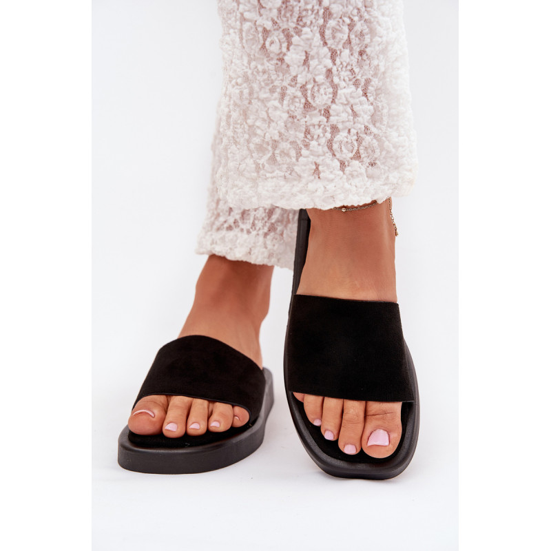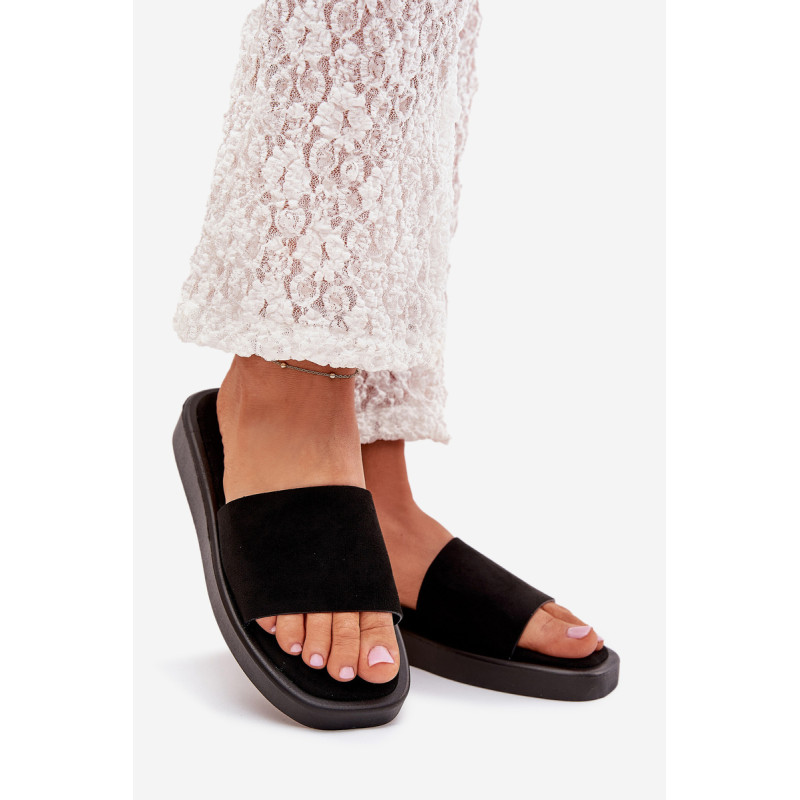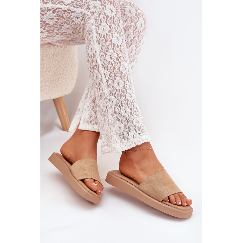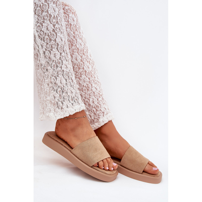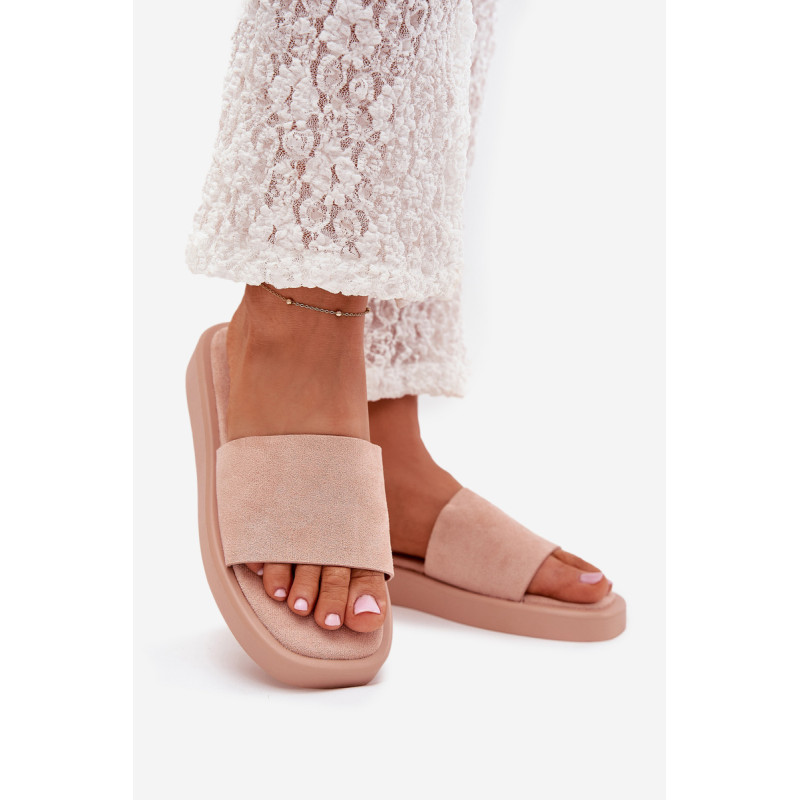 Klasikiniai moteriški šlepetės iš ekosuedės, įrengtos ant platformos, sujungia patogumą su paprastu stiliumi. Idealiai tinka kasdieniniams įvaizdžiams, puikiai dera su suknelėmis, sijonais ar kelnėmis, užtikrindamos komfortą ir elegantišką išvaizdą kasdieniam dėvėjimui. Renkantis dydį, vadovaukitės dydžių lentele.