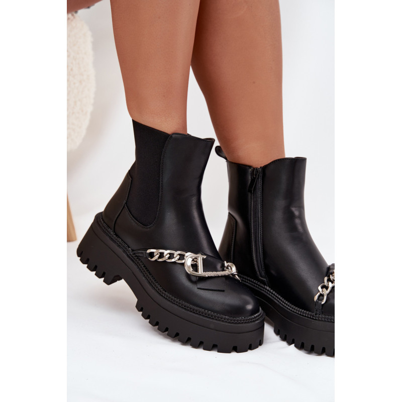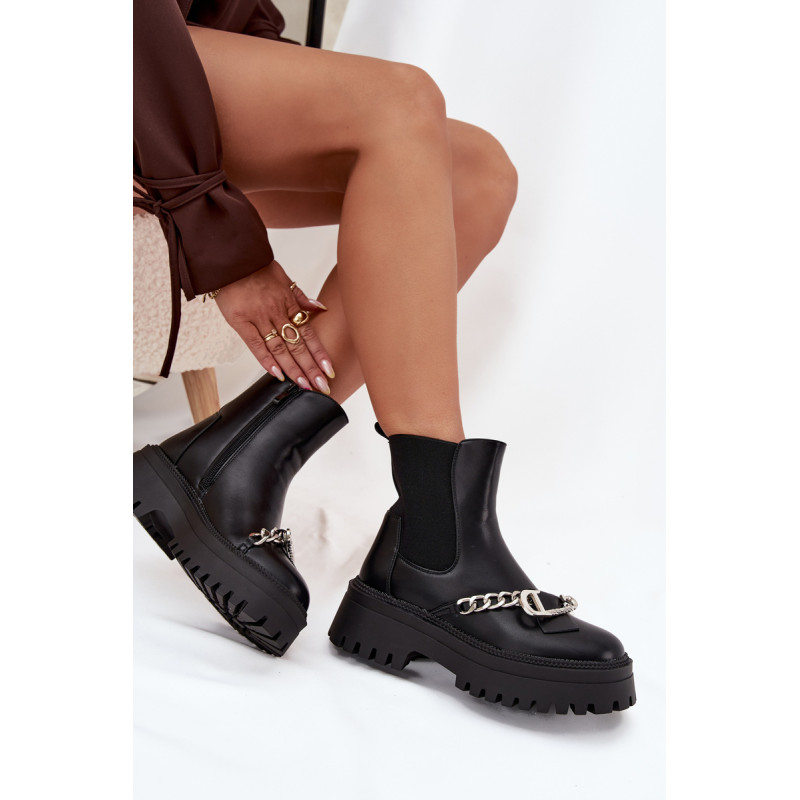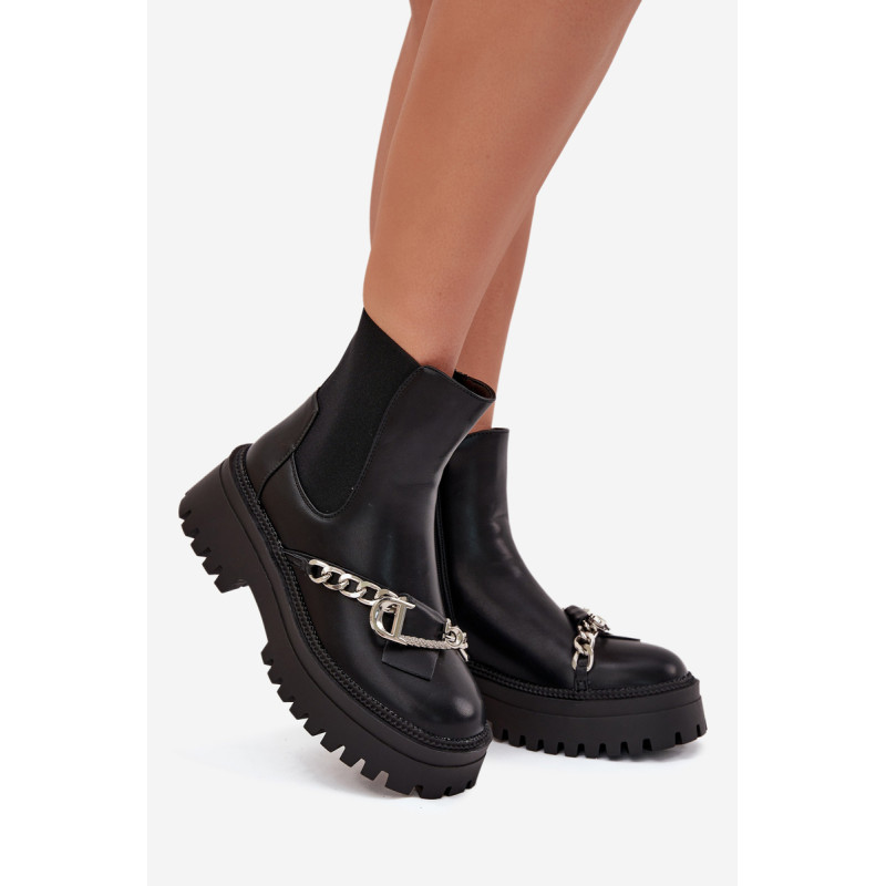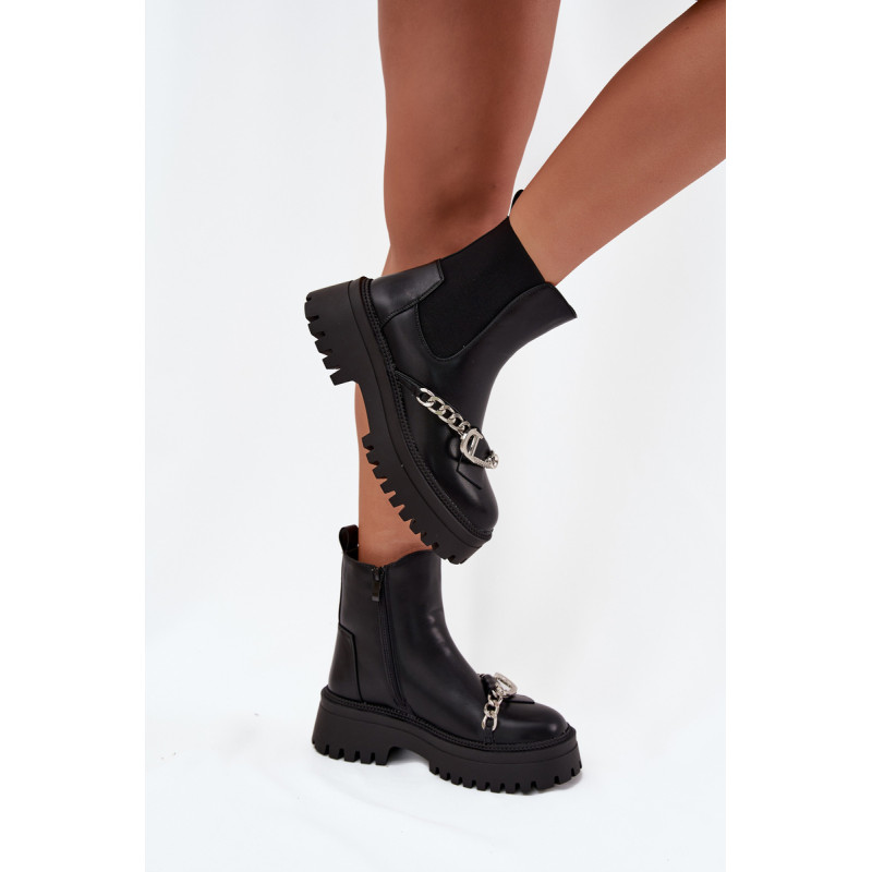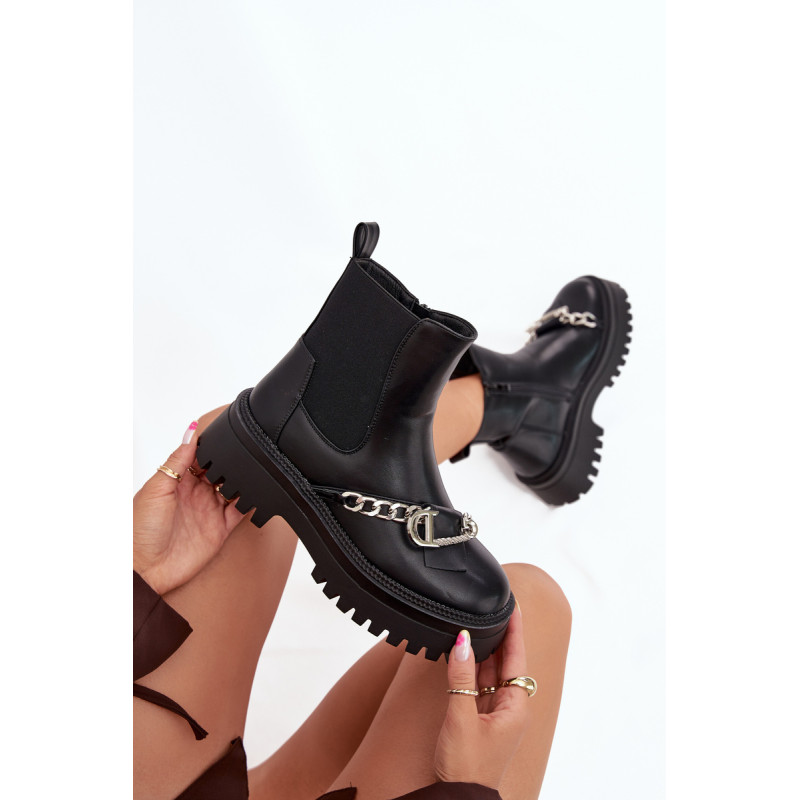 Moteriški pusbačiai iš eko odos yra stilingas ir patogus pasirinkimas vėsesnėms dienoms. Įrengti ant platformos, jie užtikrina komfortą ir stabilumą, o apvalūs pirštai suteikia jiems subtilų charakterį. Vidus, apšiltintas kailiu, garantuoja šilumą, o dekoratyvinis grandinėlė ir segė, panaši į smeigtuką, ant blauzdos suteikia jiems išskirtinį išvaizdą. Lankstus įdėklas šone palengvina užsidėjimą, o užtrauktukas užtikrina patogų pritaikymą. Puikiai tinka kasdieniam naudojimui. Pasirenkant dydį, prašome vadovautis dydžių lentelėmis. Renkantis dydį, vadovaukitės dydžių lentele.