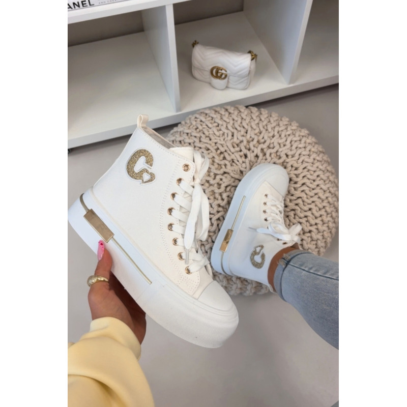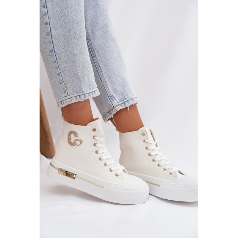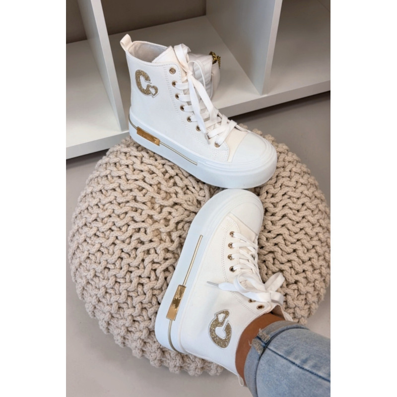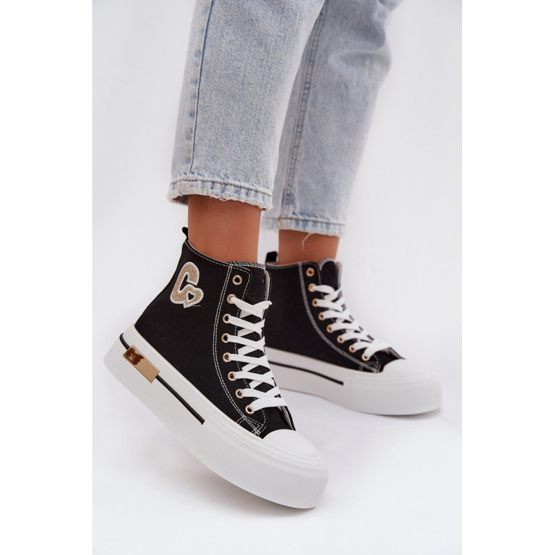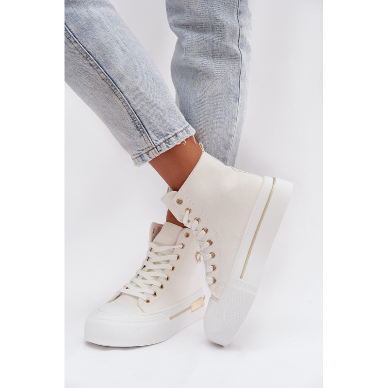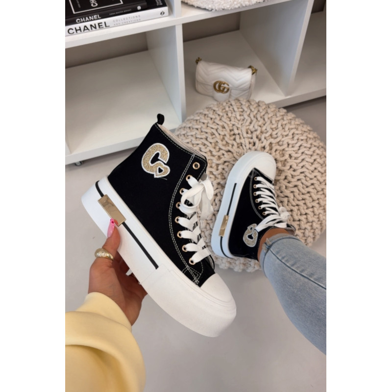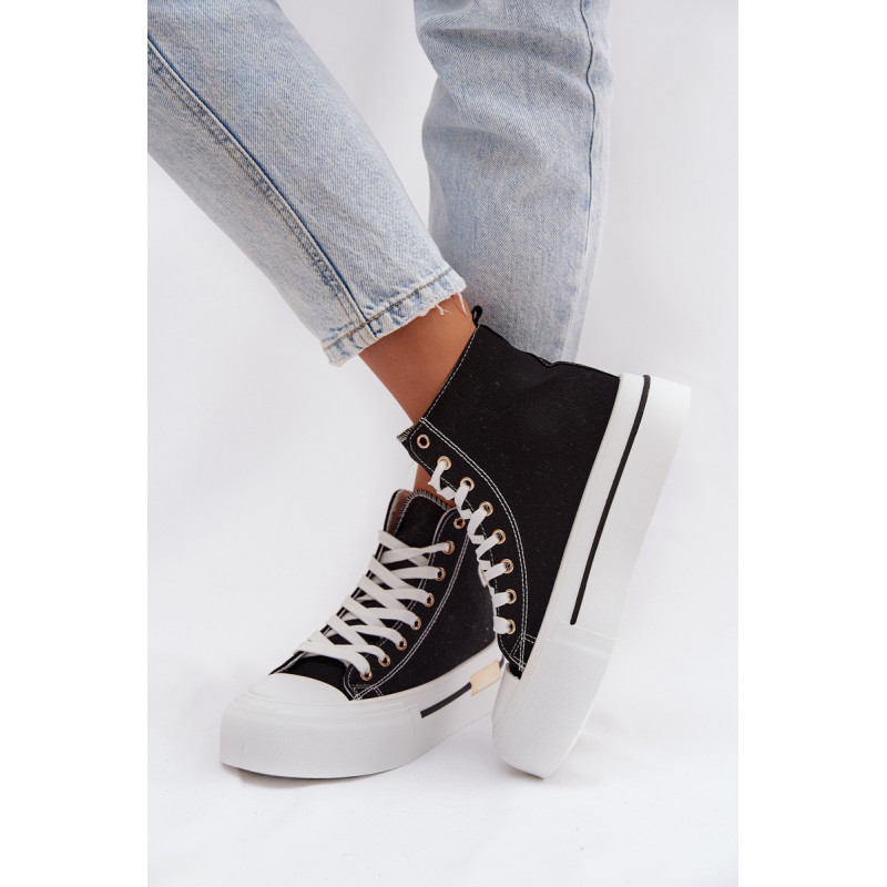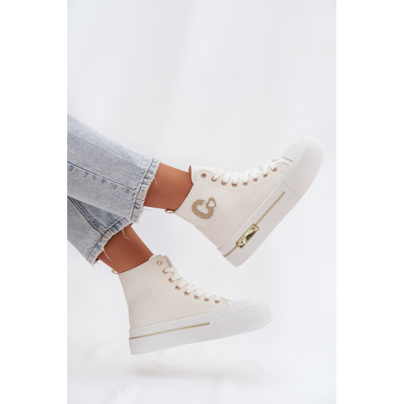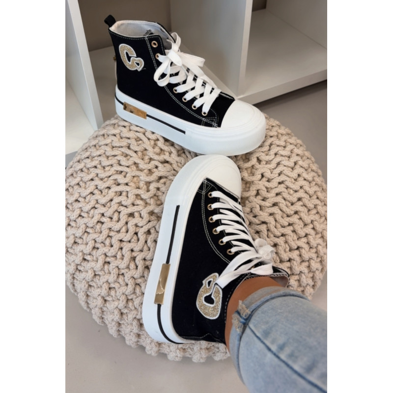 Moteriški sportbačiai su masyvia platforma yra stilingas kasdienis pasirinkimas. Storas padas užtikrina komfortą ir stabilumą, o auksinis elementas ant platformos suteikia elegancijos. Šone yra dekoratyvinė siūlė, kuri pabrėžia modelio madingą charakterį. Renkantis dydį, vadovaukitės dydžių lentele.