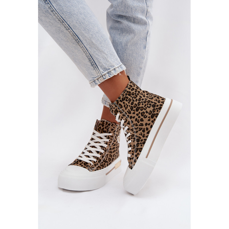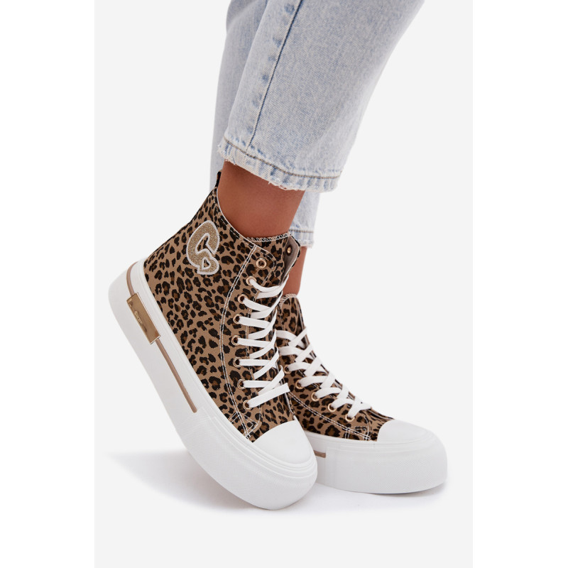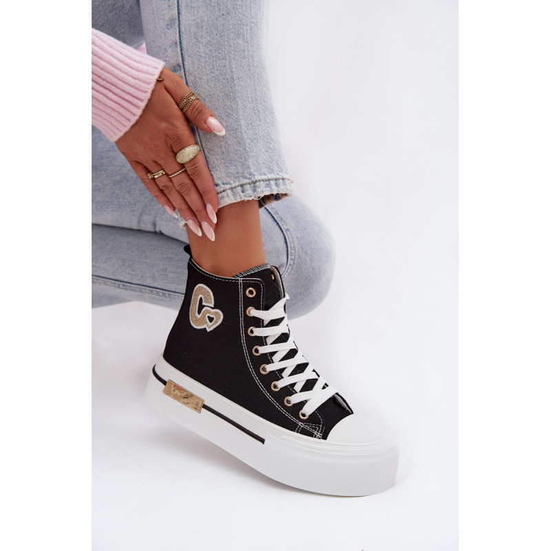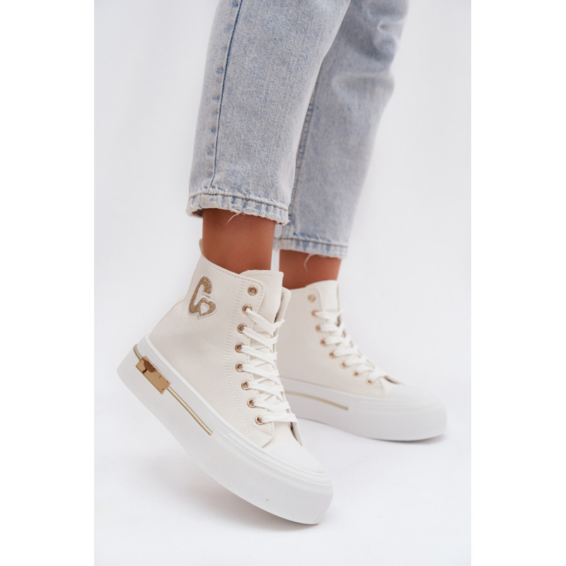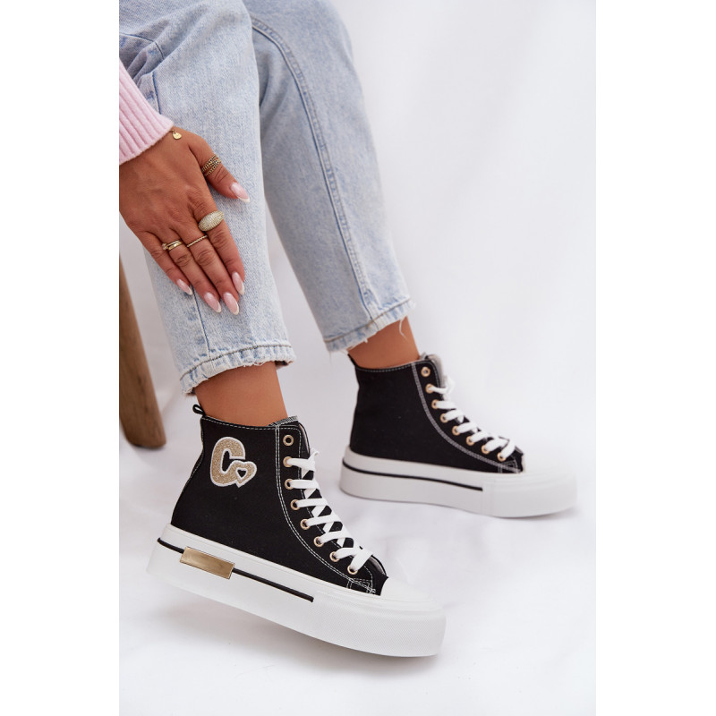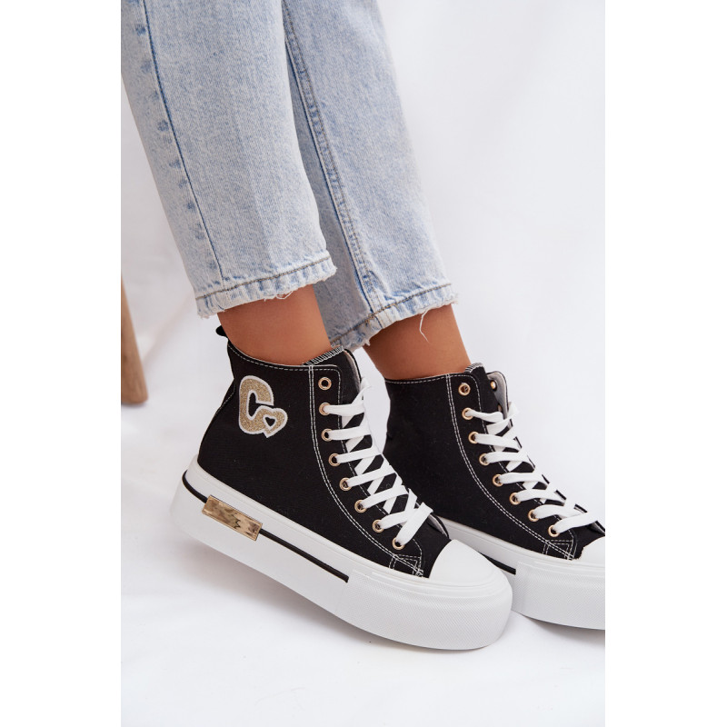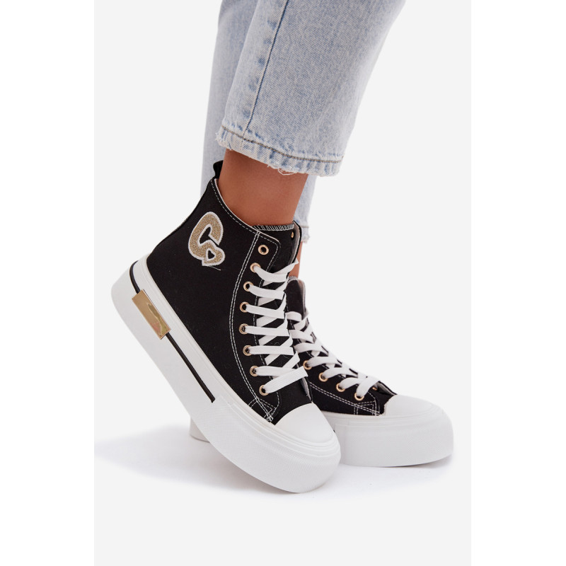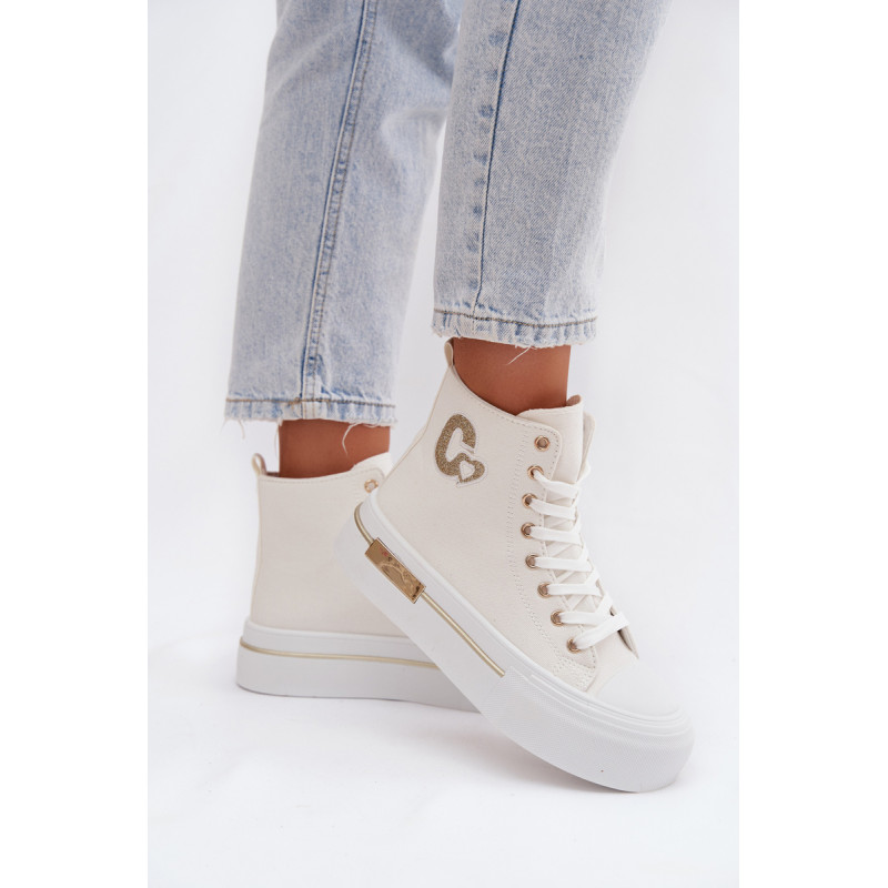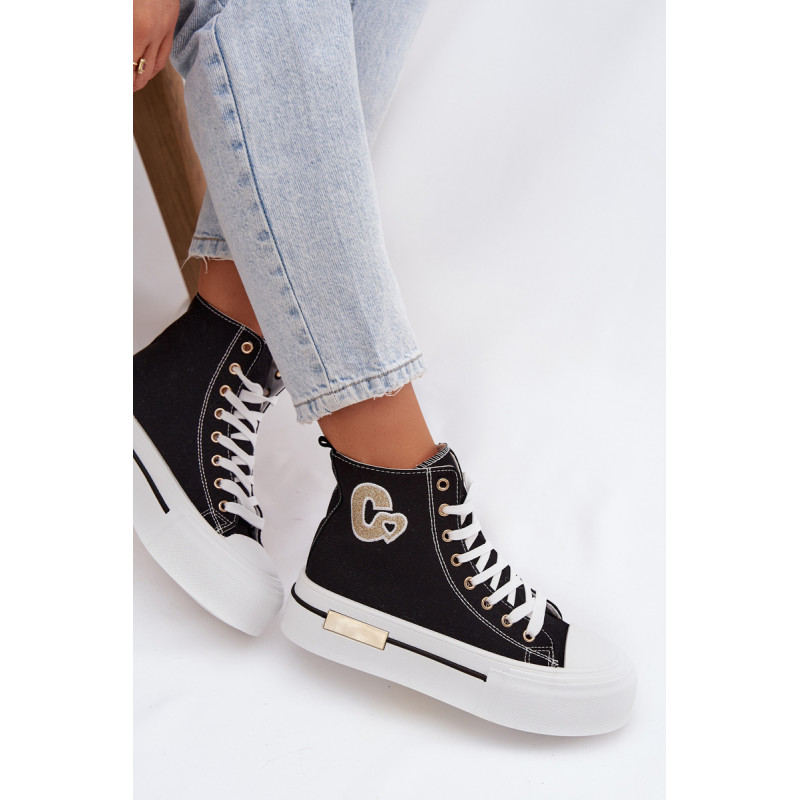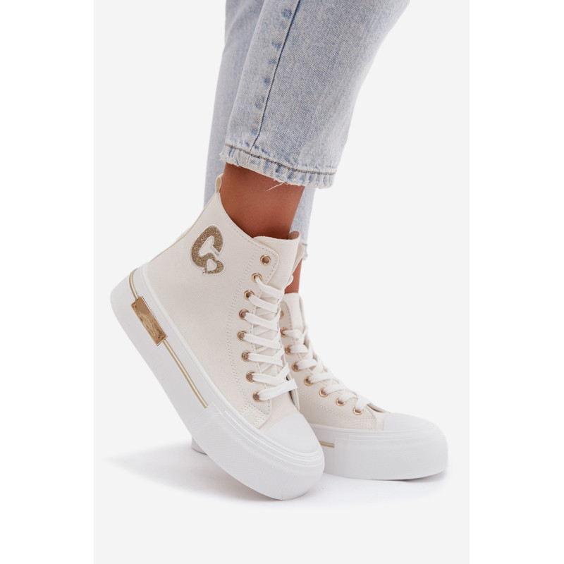 Moteriški sportbačiai su masyvia platforma yra stilingas kasdienis pasirinkimas. Storas padas užtikrina komfortą ir stabilumą, o auksinis elementas ant platformos suteikia elegancijos. Šone yra dekoratyvinė siūlė, kuri pabrėžia modelio madingą charakterį. Renkantis dydį, vadovaukitės dydžių lentele.