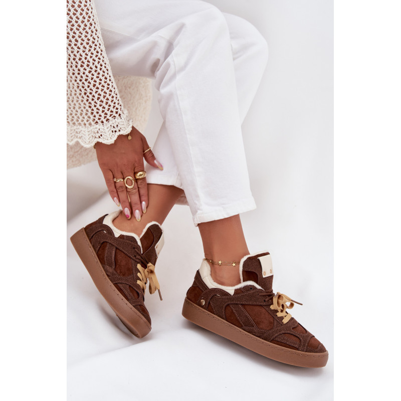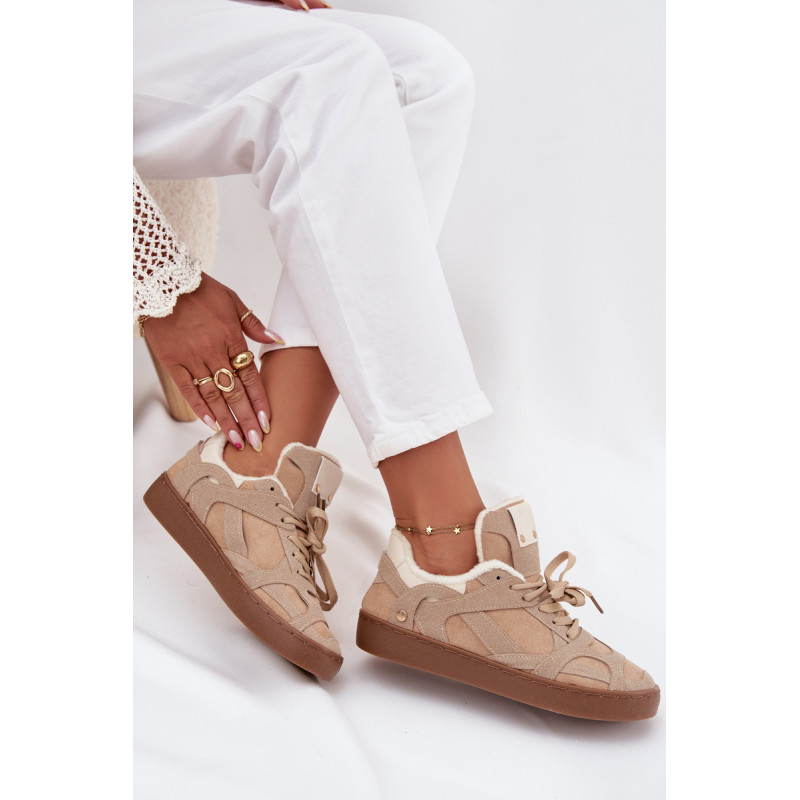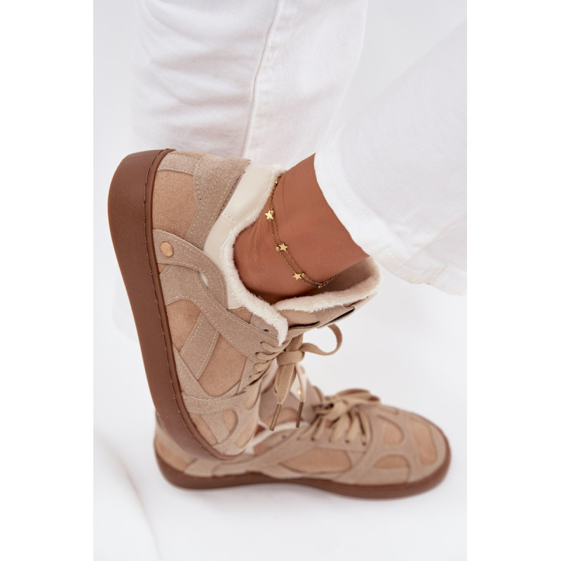 Moteriški sportbačiai, pagaminti iš ekologiško zomšos, yra puikus pasirinkimas vėsesnėms dienoms. Batų vidus yra išklotas minkšta kailiu, užtikrinančiu šilumą ir patogumą. Švelni platforma ne tik suteikia aukštį, bet ir užtikrina patogų dėvėjimą visą dieną. Šie sportbačiai puikiai tinka kasdieniam stiliui. Pasirinkdami dydį, vadovaukitės dydžių lentele. Renkantis dydį, vadovaukitės dydžių lentele.