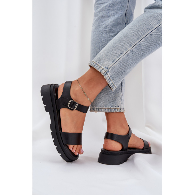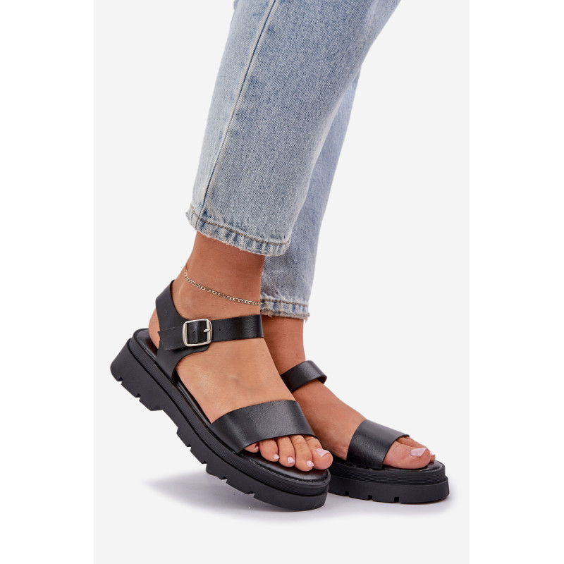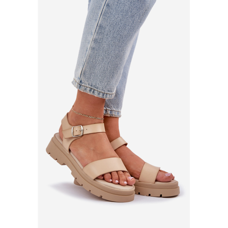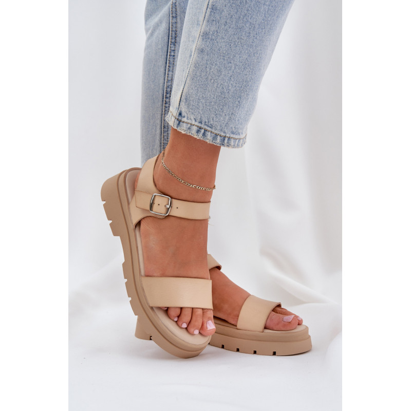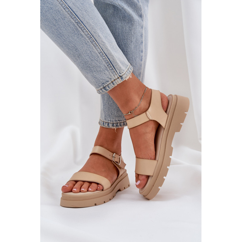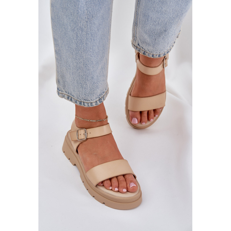 Patogūs moterų sandalai buvo sukurti ant plokščio kulno ir platformos. Pagaminti iš ekologiškos odos, jie turi plačią dirželį, kuris stabilizuoja pėdą ir neleidžia jai slinkti. Dėl minkštos pado ši avalynė garantuoja komfortą net visos dienos dėvėjimo metu! Modelis užsisega aplink kulkšnį su reguliuojamu dirželiu ir sagtimi. Tai puikus pasirinkimas šiltoms vasaros dienoms. Renkantis dydį, vadovaukitės dydžių lentele.