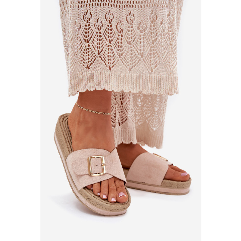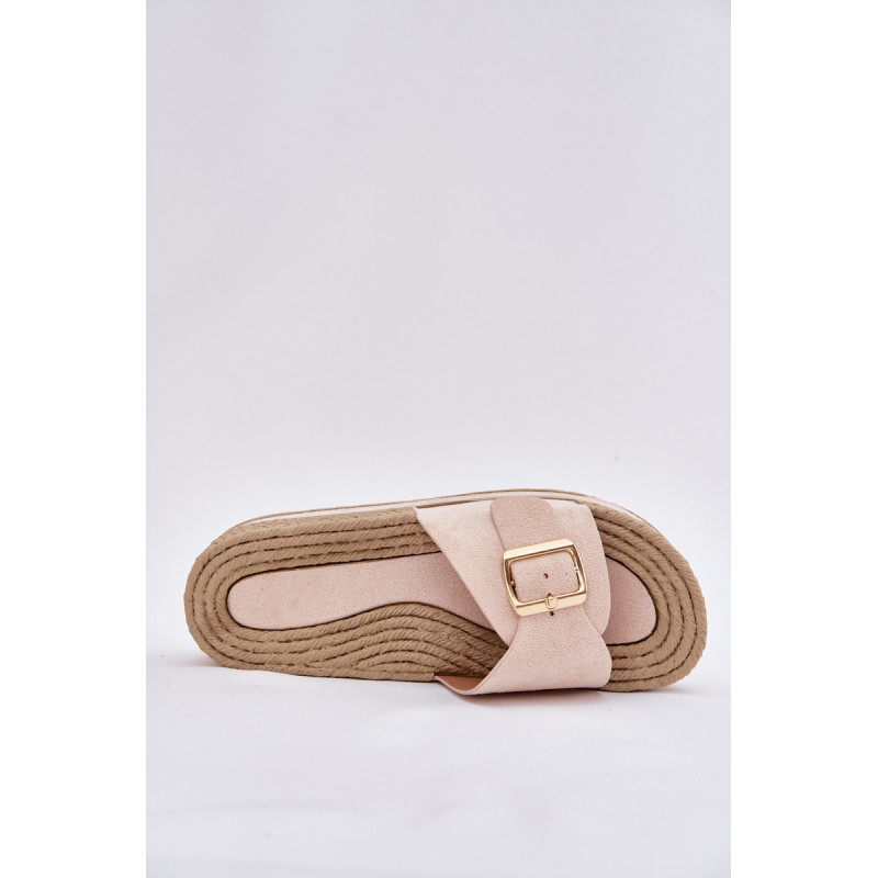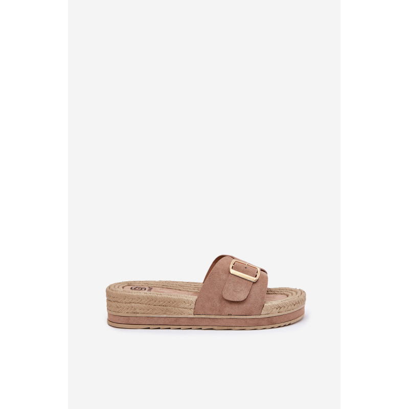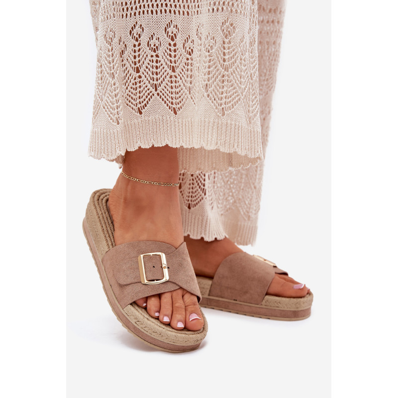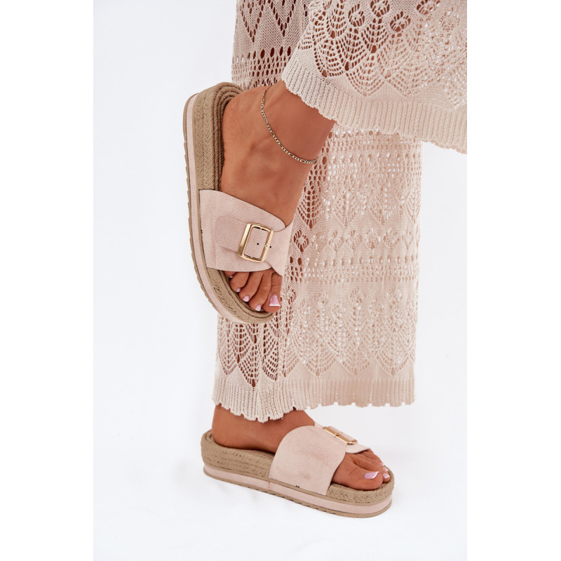 Moteriški šlepetės, pagamintos iš ekologiškos zomšos, yra puikus pasirinkimas šiltoms dienoms. Priekyje šlepetės turi reguliuojamą dirželį su elegantiška auksine sagtimi, leidžiančia puikiai pritaikyti prie pėdos. Įrengtos ant platformos, jos suteikia papildomą aukštį ir komfortą, nesumažindamos patogumo. Papuoštos pintinės imitacija, kuri suteikia joms lengvumo ir charakterio. Šios šlepetės puikiai derės su vasaros suknelėmis, šortais ar šortais, sukuriant madingą ir kasdienį įvaizdį kiekvienai dienai. Renkantis dydį, vadovaukitės dydžių lentele.