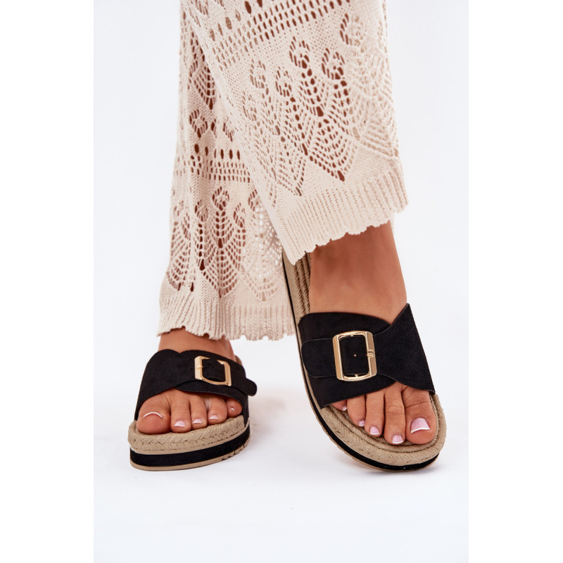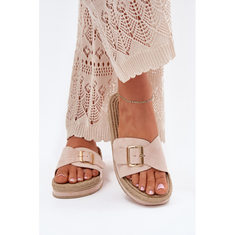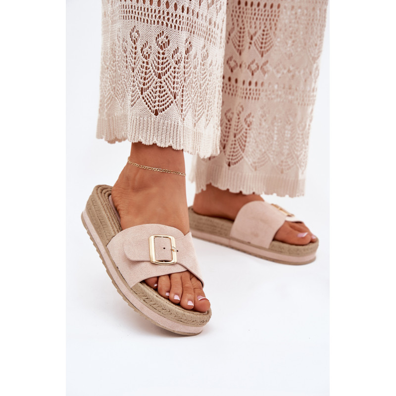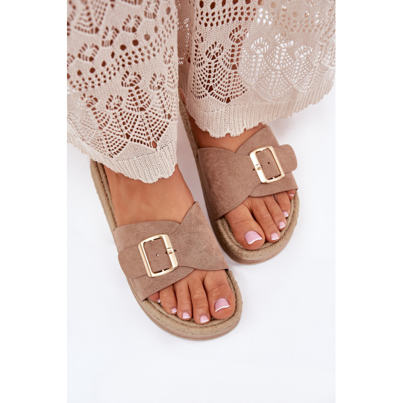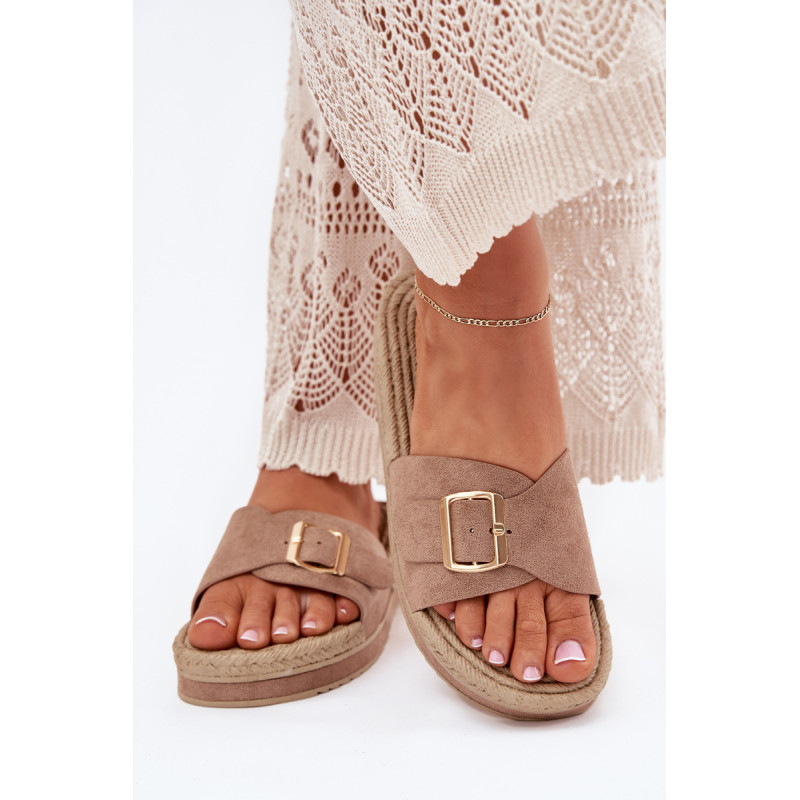 Moteriški šlepetės, pagamintos iš ekologiškos zomšos, yra puikus pasirinkimas šiltoms dienoms. Priekyje šlepetės turi reguliuojamą dirželį su elegantiška auksine sagtimi, leidžiančia puikiai pritaikyti prie pėdos. Įrengtos ant platformos, jos suteikia papildomą aukštį ir komfortą, nesumažindamos patogumo. Papuoštos pintinės imitacija, kuri suteikia joms lengvumo ir charakterio. Šios šlepetės puikiai derės su vasaros suknelėmis, šortais ar šortais, sukuriant madingą ir kasdienį įvaizdį kiekvienai dienai. Renkantis dydį, vadovaukitės dydžių lentele.