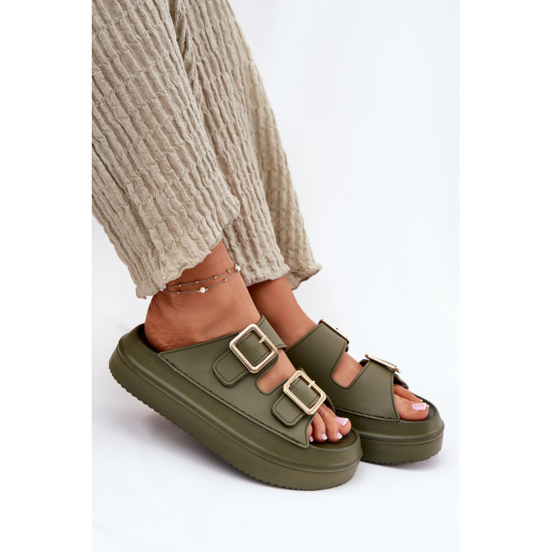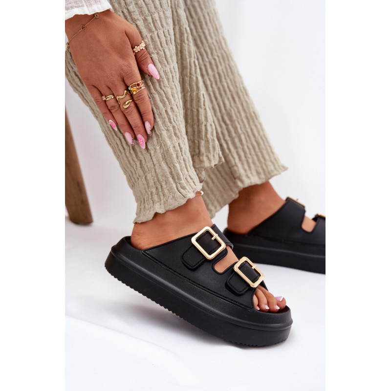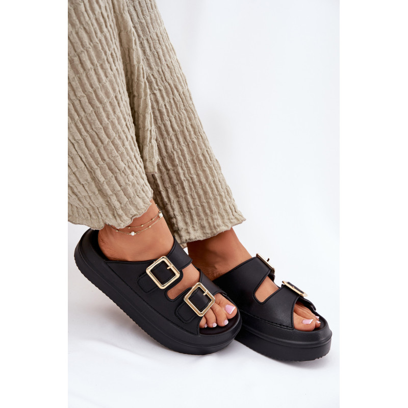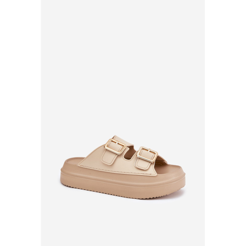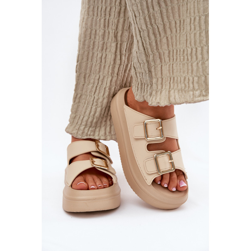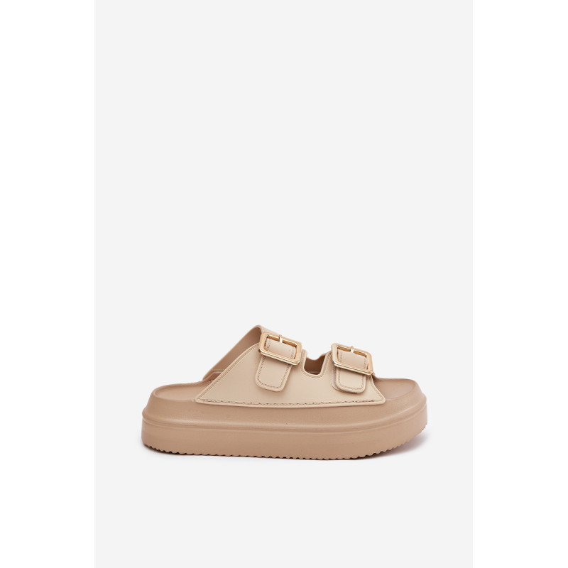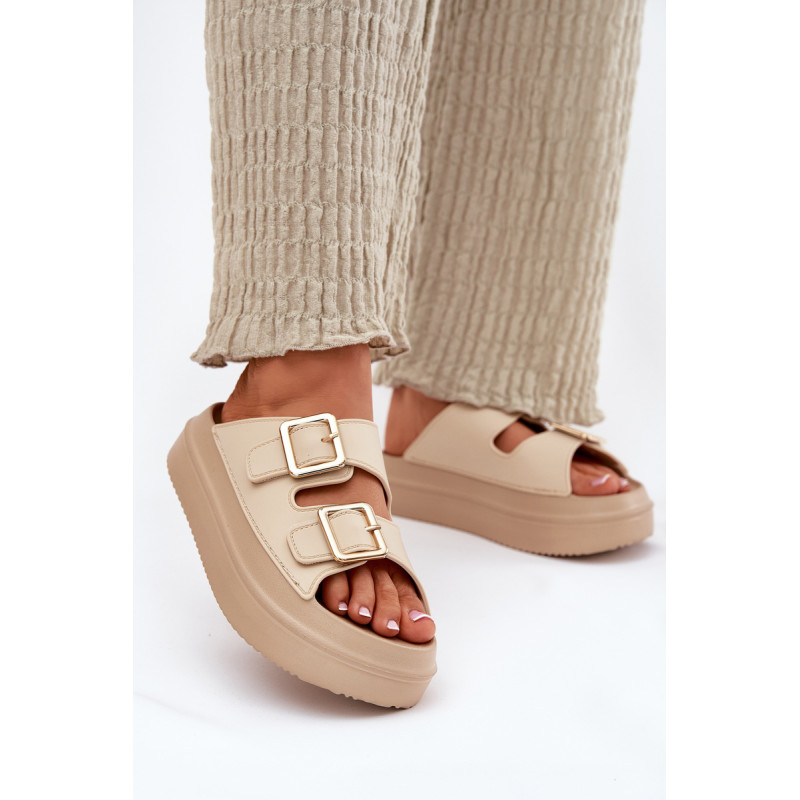 Stilingi moteriški šlepetės ant platformos iš putų medžiagos. Viršutinė dalis pagaminta iš elastingos gumos, puikiai priglundančios prie kojos, o dvi dekoratyvinės sagties priekyje suteikia visumai madingą charakterį. Idealiai tinka vasaros dienoms - tiek pasivaikščiojimams mieste, tiek paplūdimyje! Renkantis dydį, vadovaukitės dydžių lentele.
