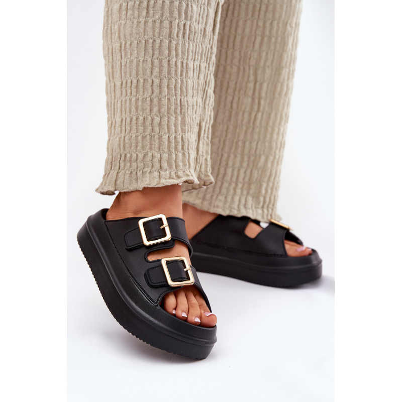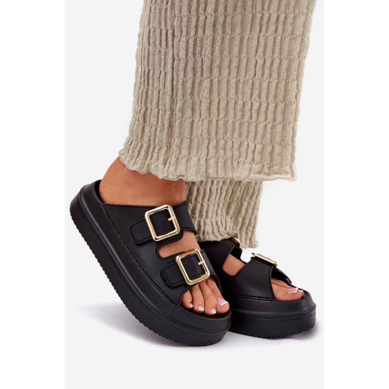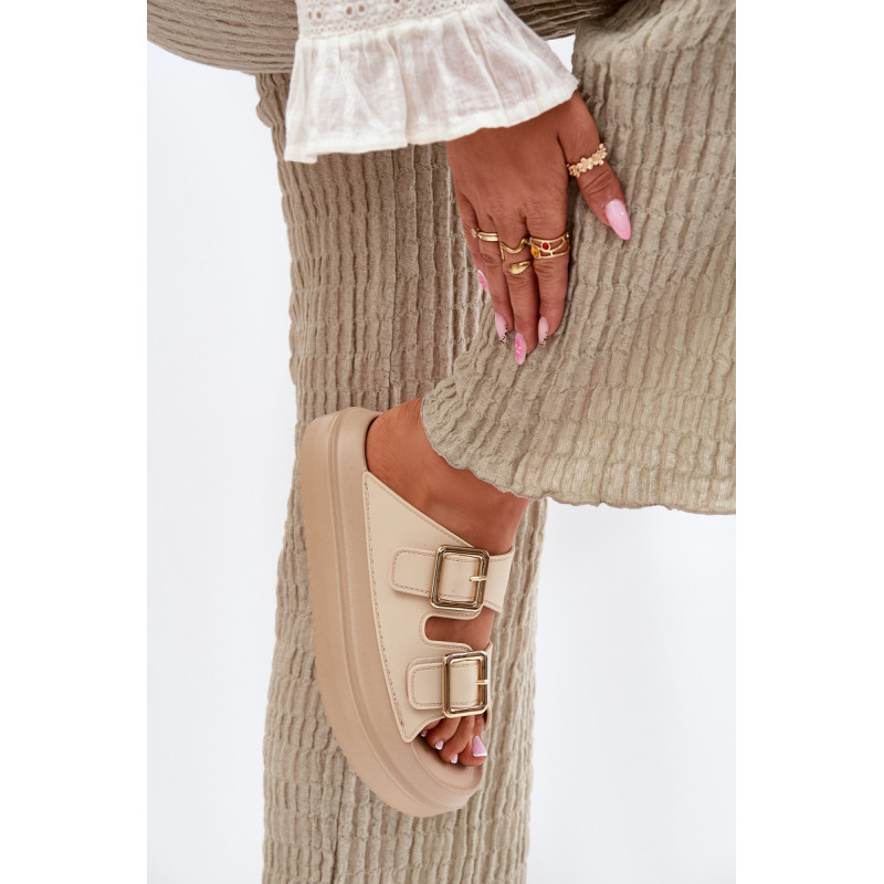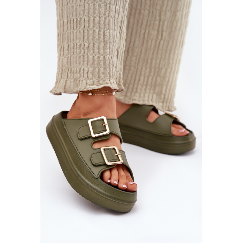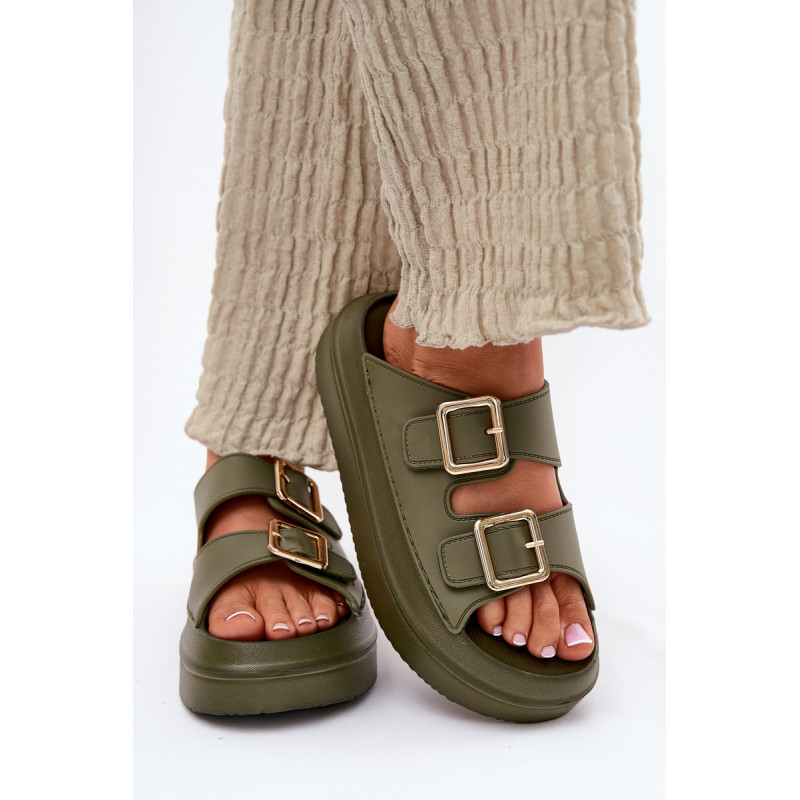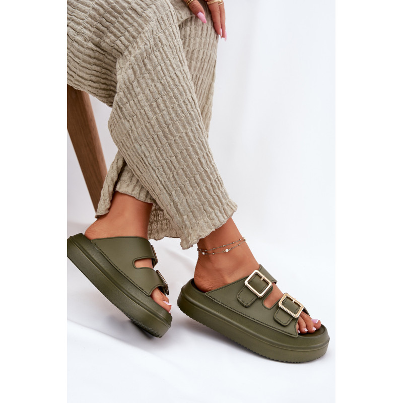 Stilingi moteriški šlepetės ant platformos iš putų medžiagos. Viršutinė dalis pagaminta iš elastingos gumos, puikiai priglundančios prie kojos, o dvi dekoratyvinės sagties priekyje suteikia visumai madingą charakterį. Idealiai tinka vasaros dienoms - tiek pasivaikščiojimams mieste, tiek paplūdimyje! Renkantis dydį, vadovaukitės dydžių lentele.