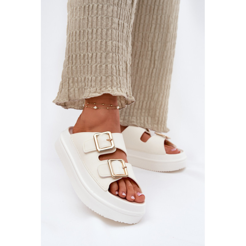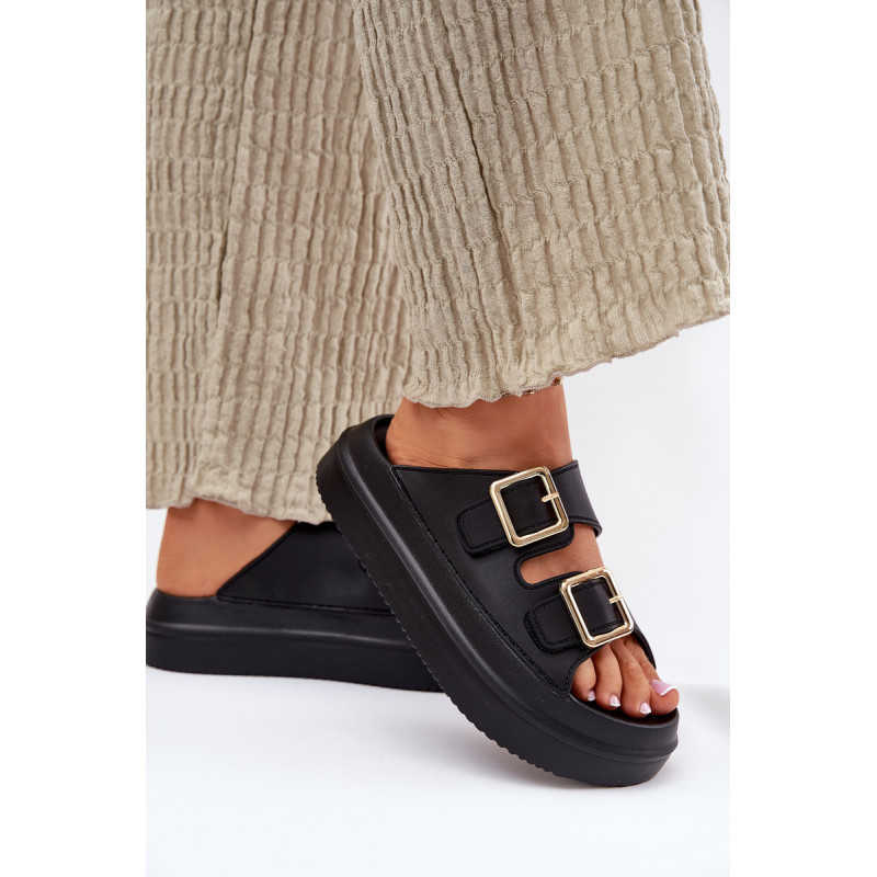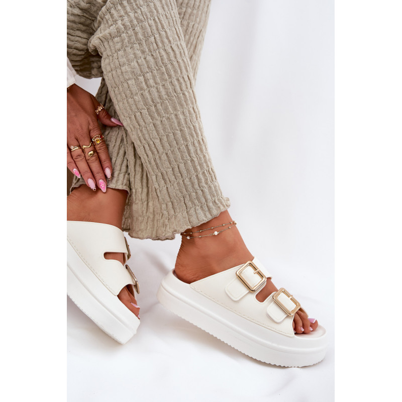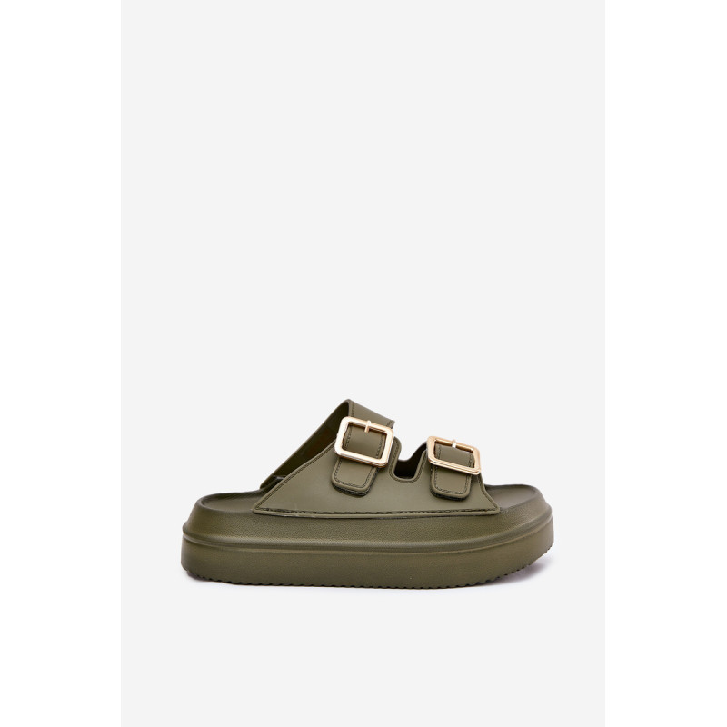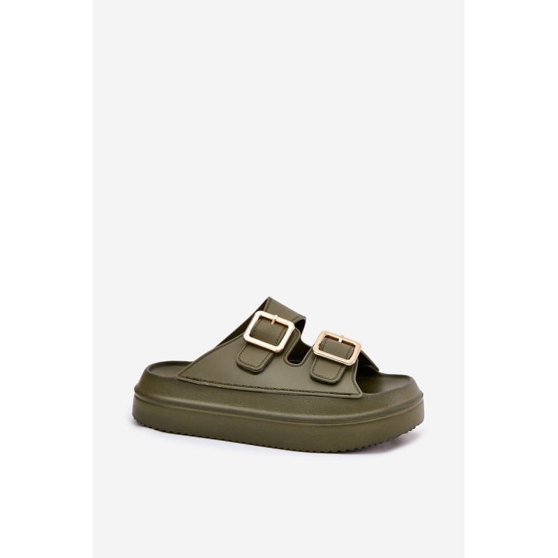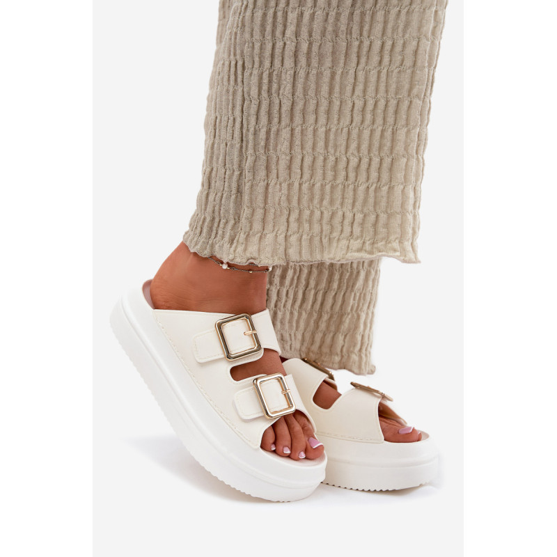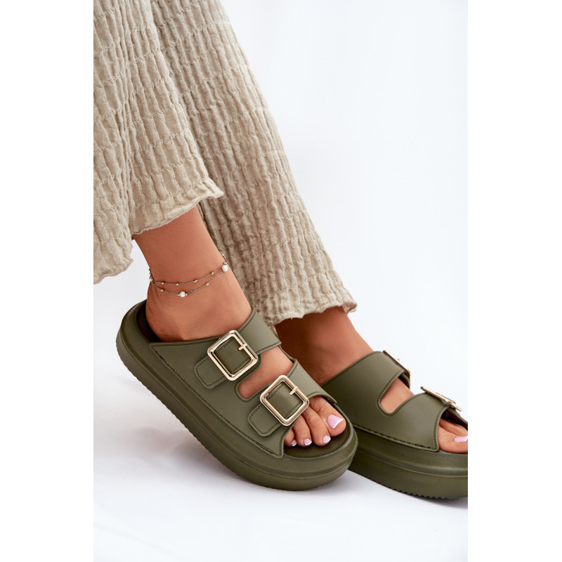 Stilingi moteriški šlepetės ant platformos iš putų medžiagos. Viršutinė dalis pagaminta iš elastingos gumos, puikiai priglundančios prie kojos, o dvi dekoratyvinės sagties priekyje suteikia visumai madingą charakterį. Idealiai tinka vasaros dienoms - tiek pasivaikščiojimams mieste, tiek paplūdimyje! Renkantis dydį, vadovaukitės dydžių lentele.