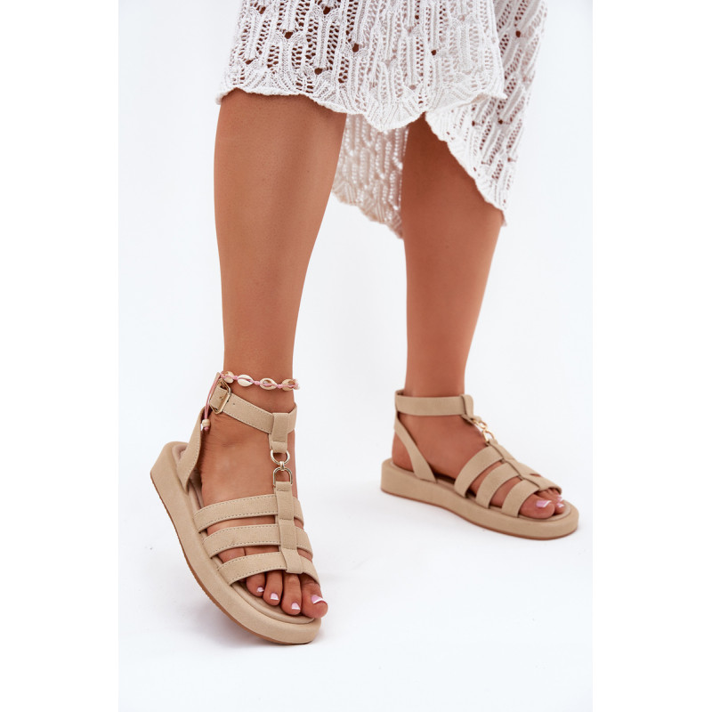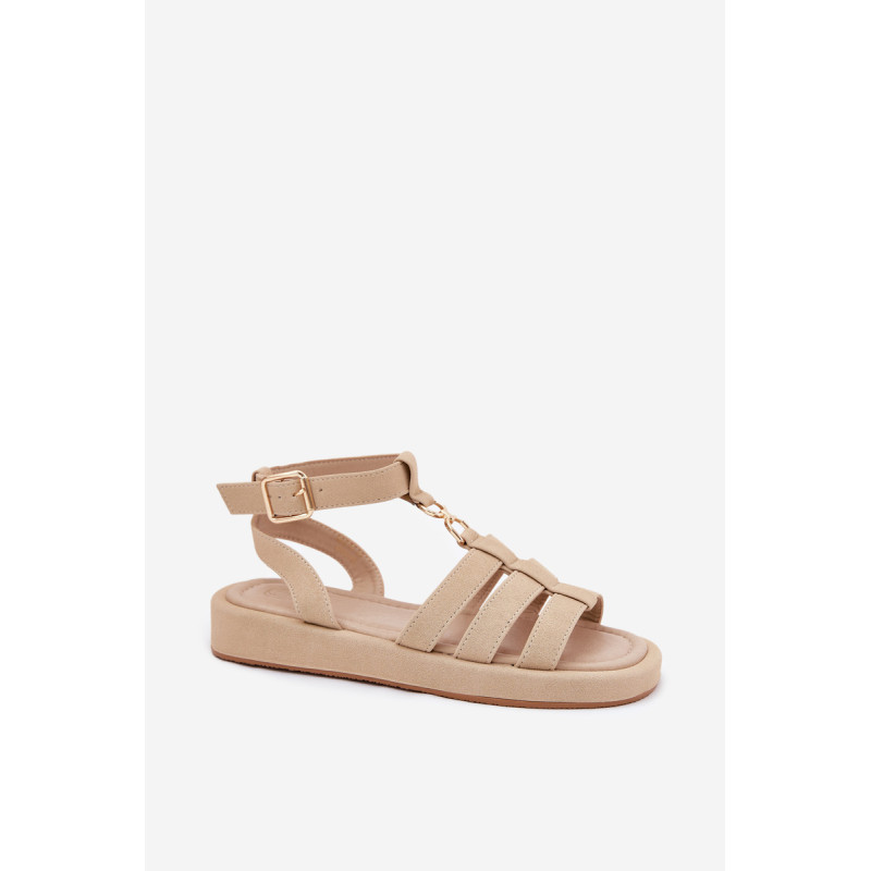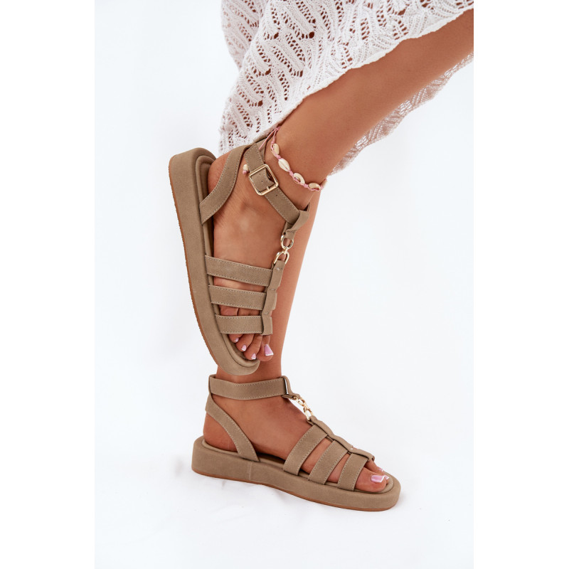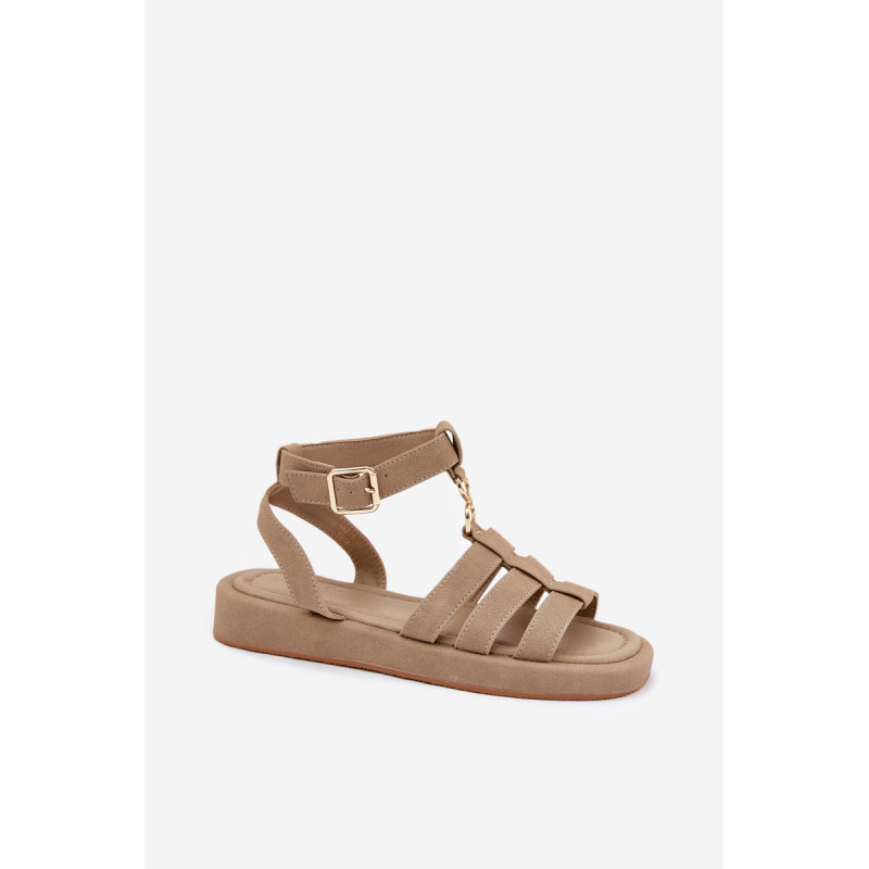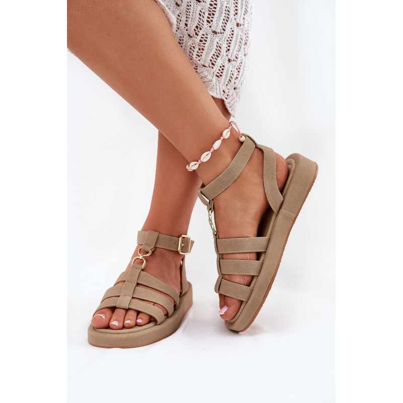 Moteriški sandalai pagaminti iš ekologiško zomšos. Įrengti ant delikaus platformos, jie užtikrina komfortą ir stabilumą visą dieną. Uždaryti sagtimi su reguliuojamu dirželiu, jie leidžia tobulai pritaikyti prie pėdos. Priekyje yra subtilus auksinis akcentas, kuris sujungia dirželius. Minkšta padas užtikrina komfortą vaikščiojant. Puikiai tinka tiek su suknelėmis, tiek su kelnėmis, sukuriant stilingą išvaizdą bet kokiai progai. Renkantis dydį, vadovaukitės dydžių lentele.