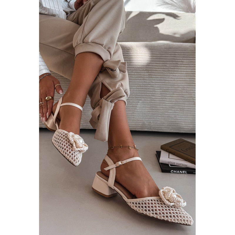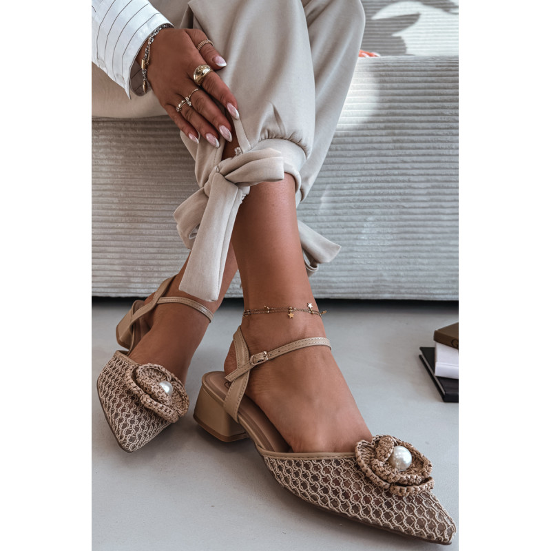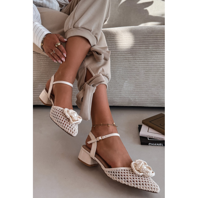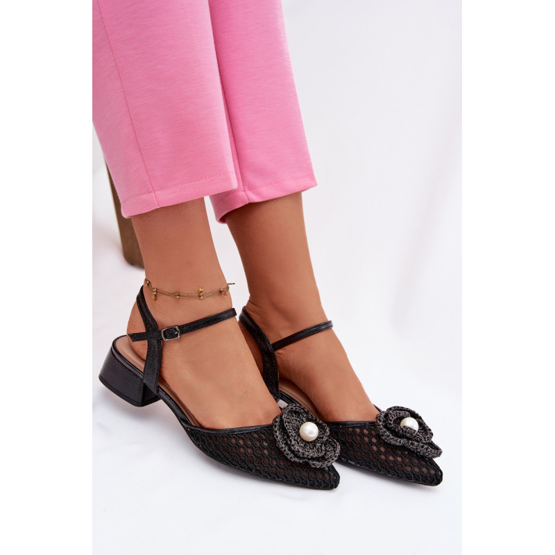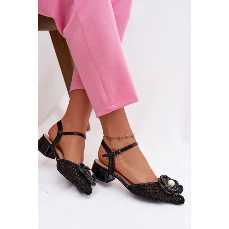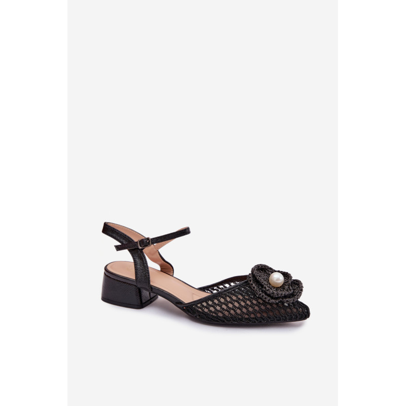 Moteriškos tinklelio sandalai yra išskirtinis pasiūlymas moterims, vertinančioms originalų stilių. Modelis su stabilia kubo formos kulnu užtikrina komfortą ir pasitikėjimą žingsniu. Užsegimas su sagtimi ir reguliuojamu dirželiu leidžia puikiai pritaikyti prie pėdos. Priekinė avalynės dalis papuošta efektingu detaliu su karoliuku, kuris patraukia dėmesį. Šie sandalai puikiai tiks vasaros išvykoms, vakarėliams ir ypatingoms progoms. Renkantis dydį, vadovaukitės dydžių lentele.