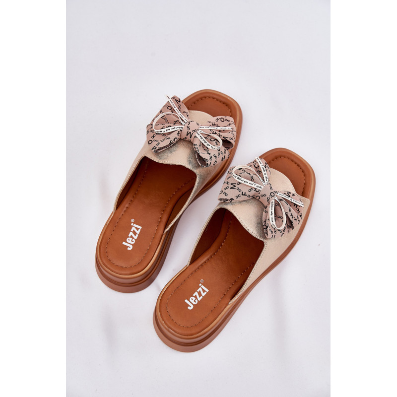 Jezzi prekės moteriški sandalai, pagaminti iš ekologiškos odos, yra elegantiška galimybė šiltoms dienoms. Padėti ant platformos, jie suteikia stabilumą ir komfortą visą dieną. Modelis išsiskiria priekyje esančia kaspinu, kuris prideda subtilaus žavesio, puikiai derančio su vasaros stiliais. Renkantis dydį, vadovaukitės dydžių lentele.