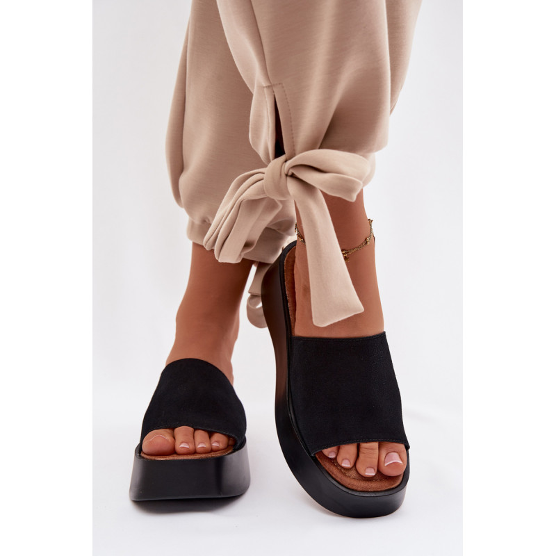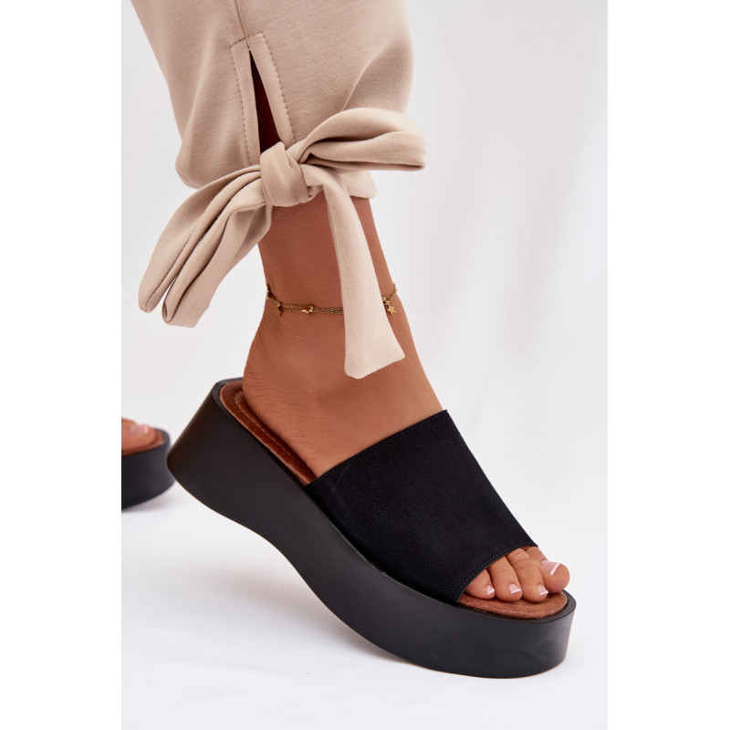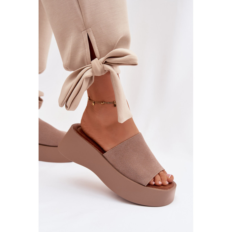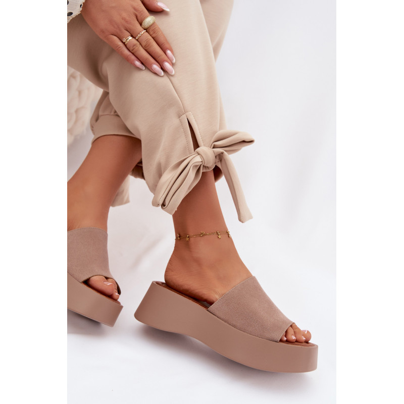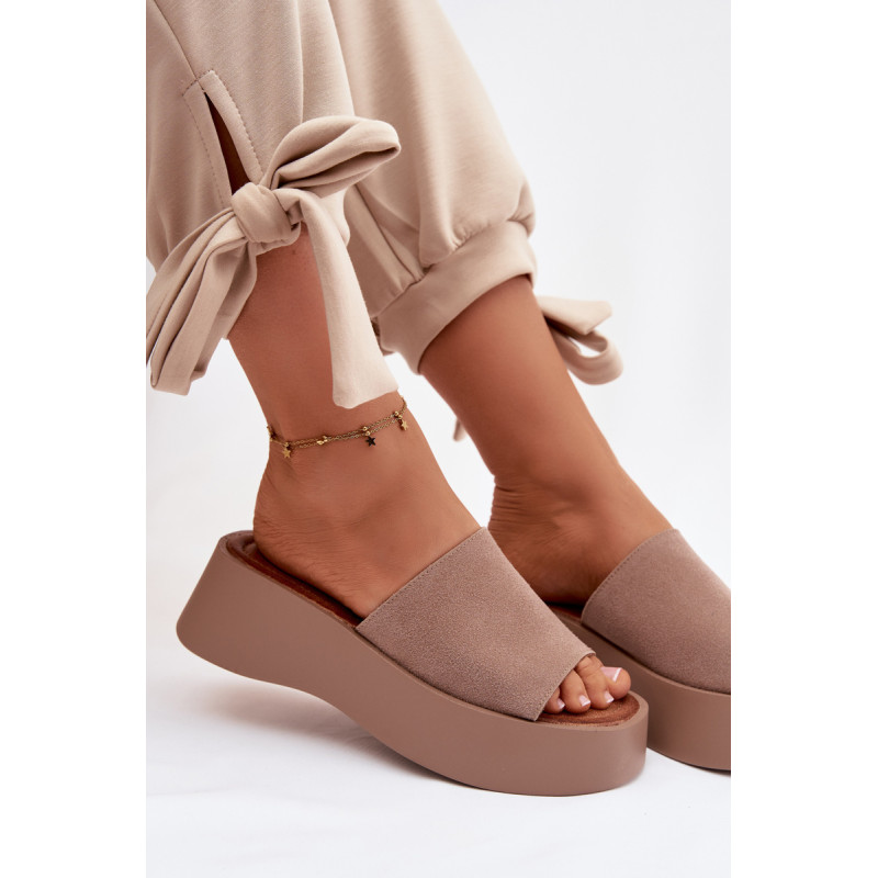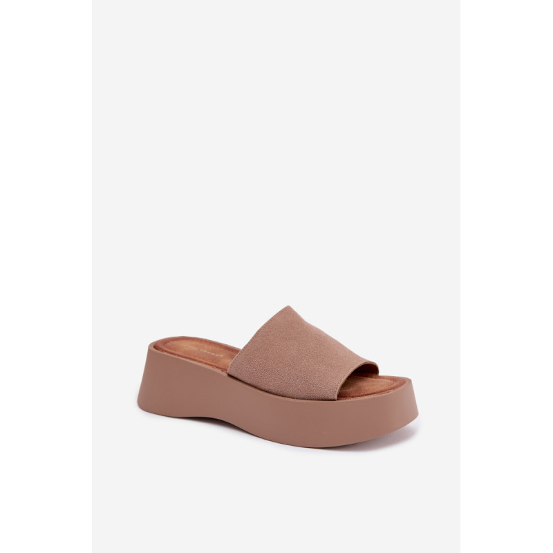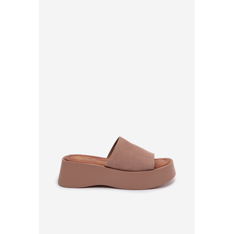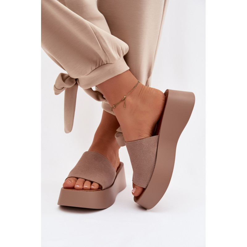 Moteriški platforminiai šlepetės yra patogus ir stilingas pasirinkimas šiltiems dienoms. Dirželiai pagaminti iš ekologiško zomšos. Minkšta įdėklas užtikrina komfortą visą dieną. Stabilus platforma šiek tiek pakelia siluetą, nepakenkiant patogumui. Šis modelis puikiai tinka kasdienėms vasaros stiliams. Renkantis dydį, vadovaukitės dydžių lentele.