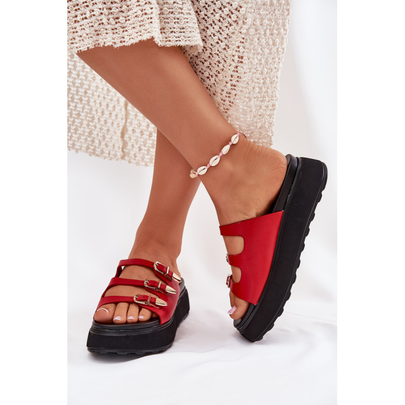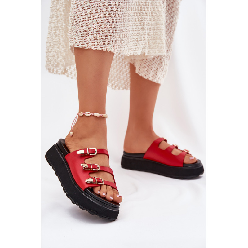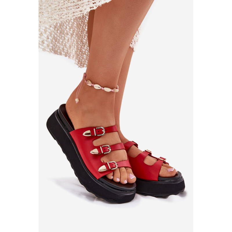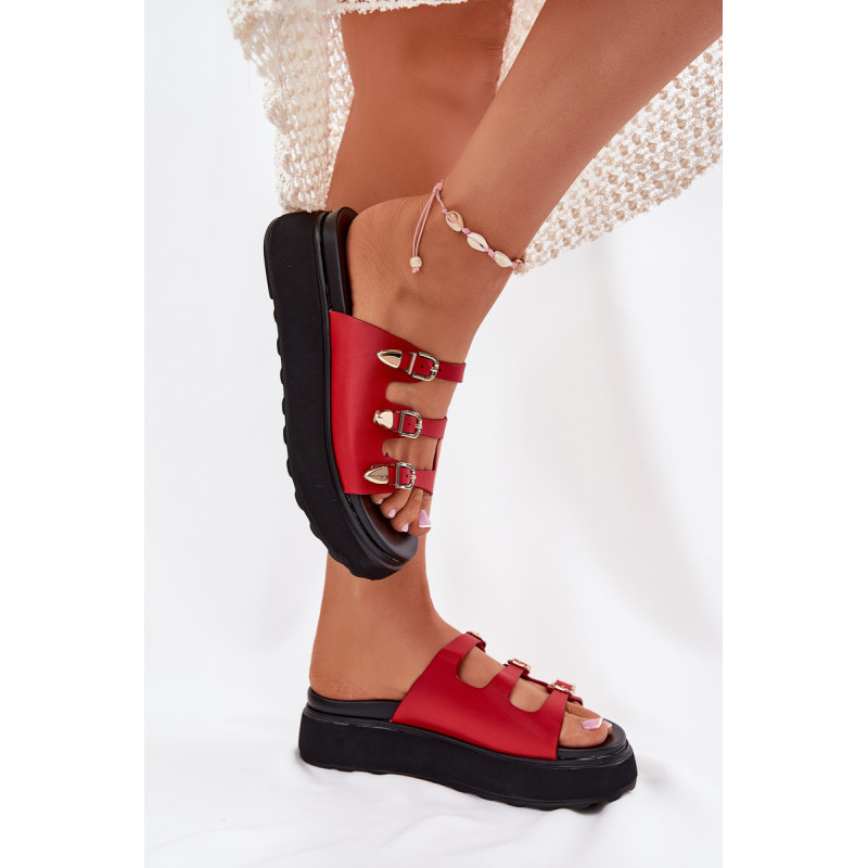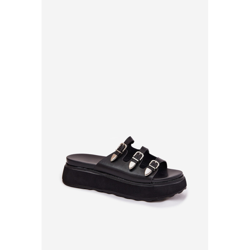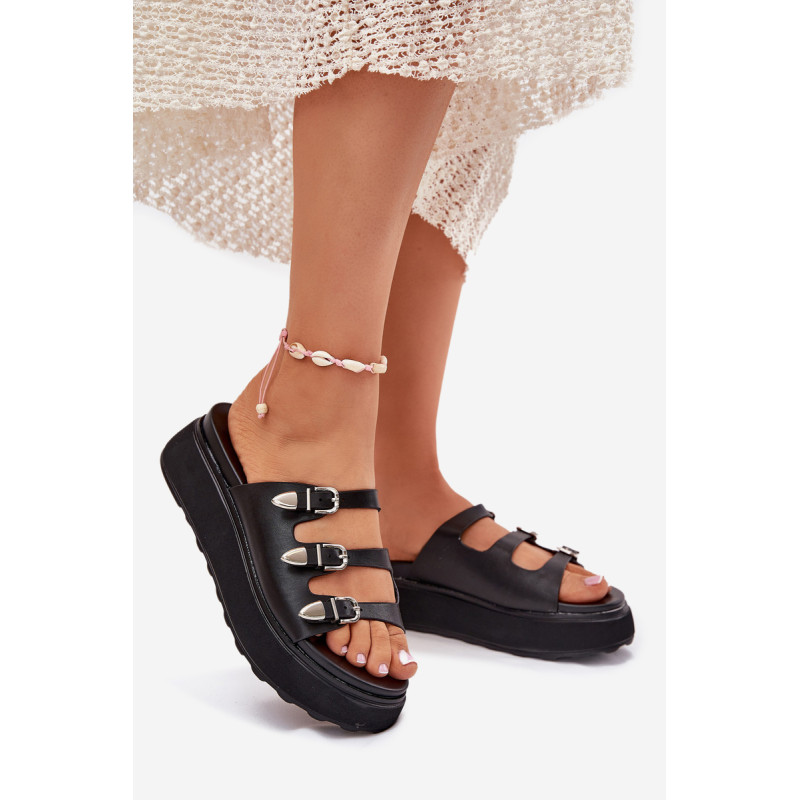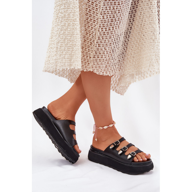 Moteriški ekologiški odiniai šlepetės, sumontuoti ant platformos, yra komforto ir stiliaus derinys. Modelis išsiskiria trimis plonais, reguliuojamais dirželiais su sagtimis, leidžiančiais puikiai pritaikyti prie pėdos. Minkšta padas užtikrina komfortą visą dieną, o modernus dizainas daro šlepetes puikiu pasirinkimu vasaros stiliams. Idealiai tinka kasdieniam dėvėjimui, derina funkcionalumą su madingu išvaizdu. Renkantis dydį, vadovaukitės dydžių lentele.