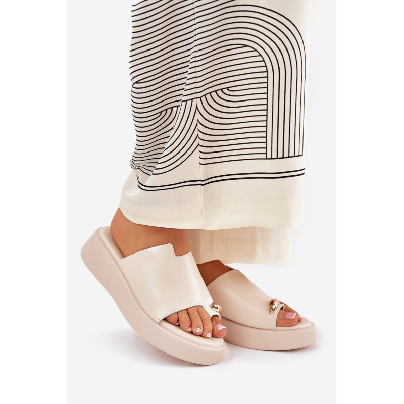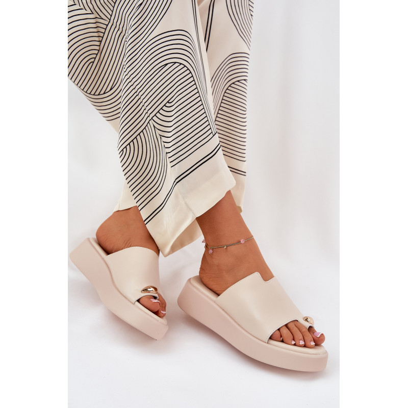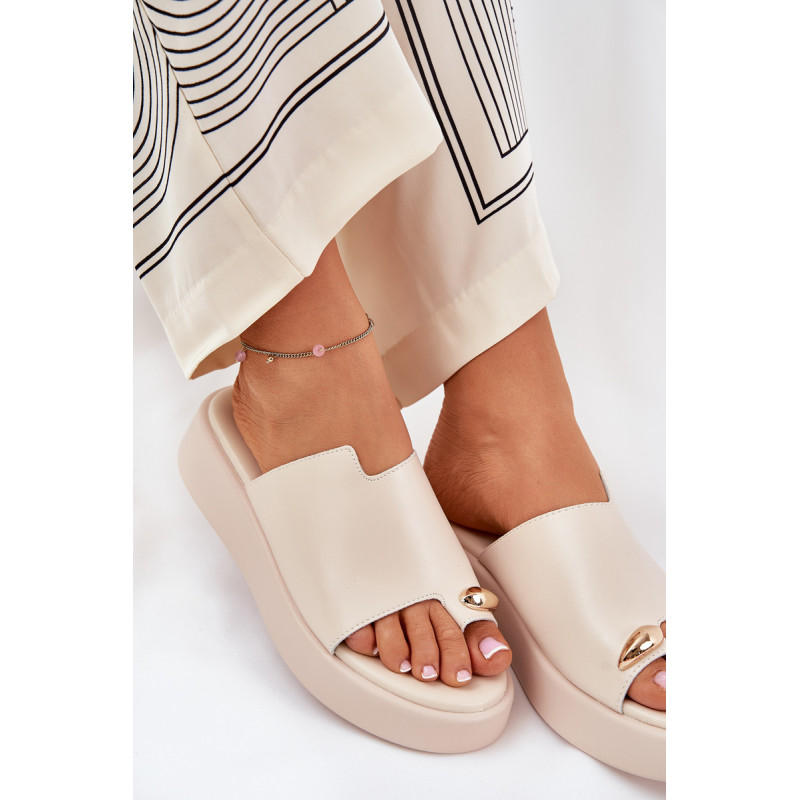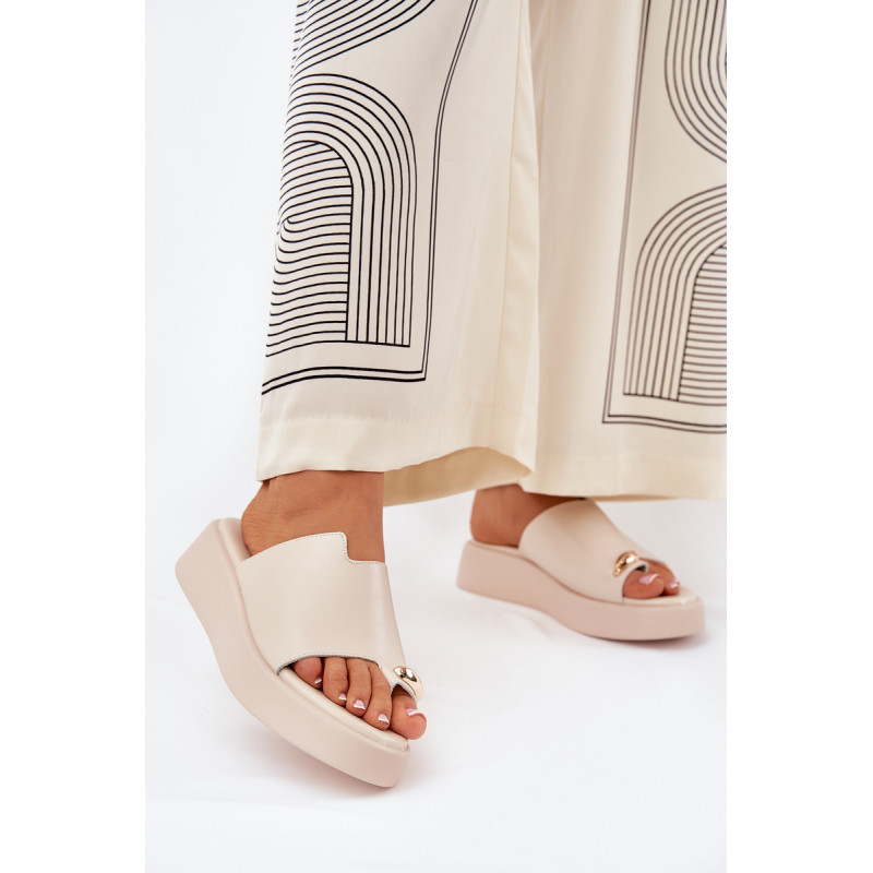 Stilingi moteriški šlepetės iš ekologiško zomšo. Įstatyta į švelnų platformą ir pakylą. Minkšta vidpadis užtikrina komfortą visą dieną. Priekyje yra subtilus dekoratyvinis elementas, kuris suteikia išskirtinį charakterį. Puikiai tinka šiltoms dienoms, šios šlepetės puikiai dera su vasarinėmis suknelėmis, sijonais ir kelnėmis, suteikdamos lengvumo kiekvienam įvaizdžiui. Renkantis dydį, vadovaukitės dydžių lentele.