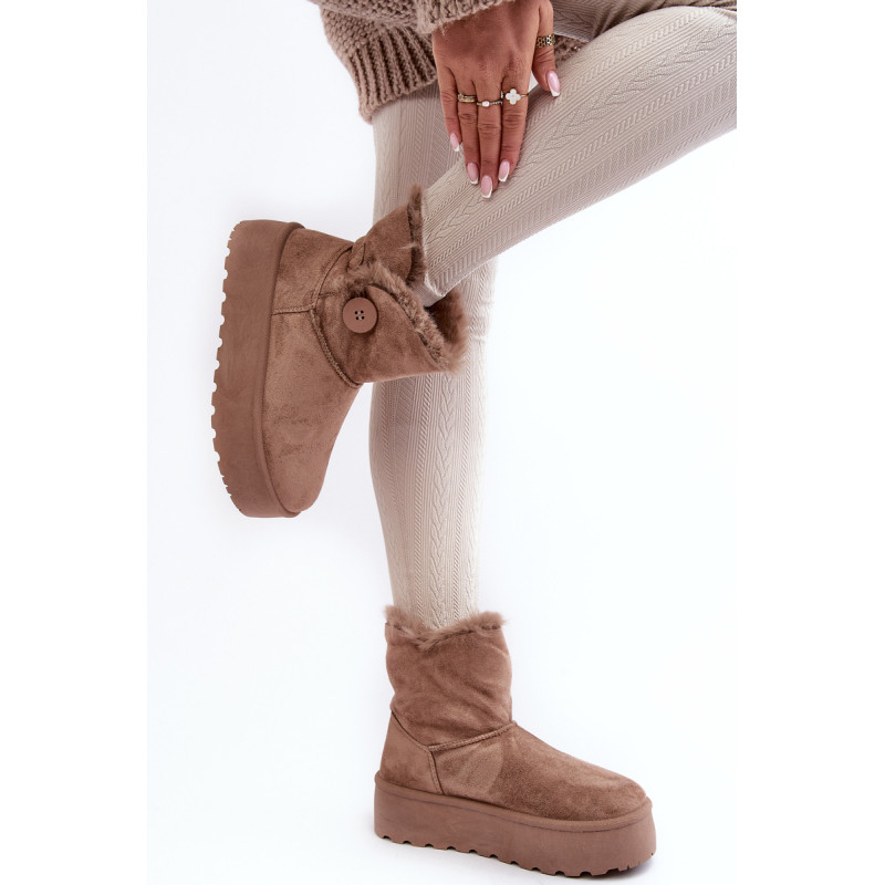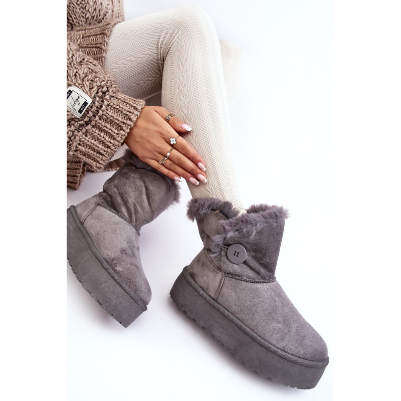Moteriški sniego batai ant storos platformos. Pagaminta iš ekologiškos zomšos. Kulkšnies batai puošti sagute ir kailiuku. Apšiltintas vidus. Šis madingas modelis puikiai tiks rudens-žiemos sezonui. Turite juos turėti! Renkantis dydį, žiūrėkite dydžių lentelę.
