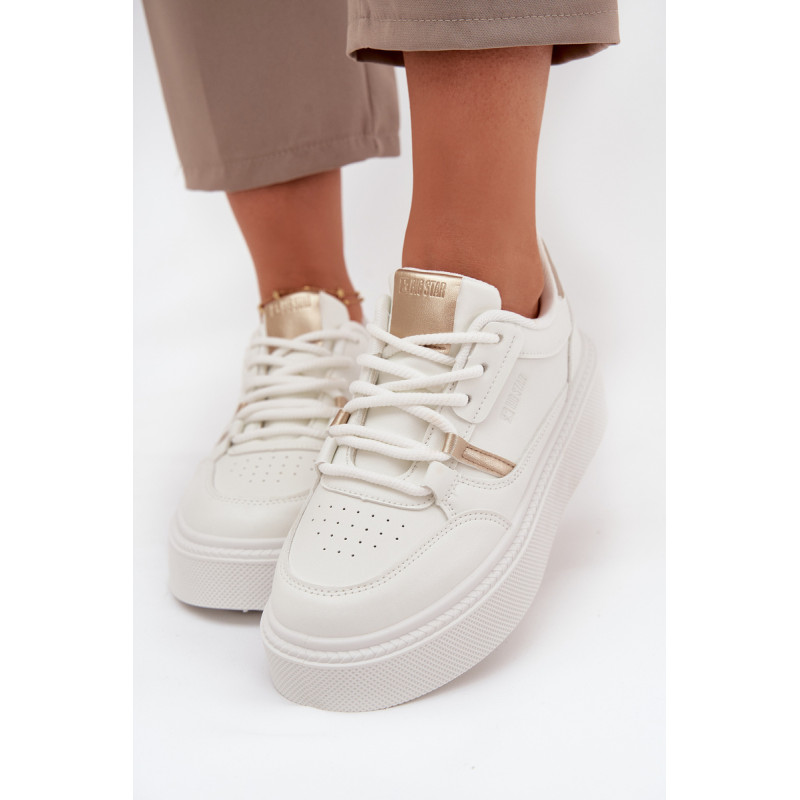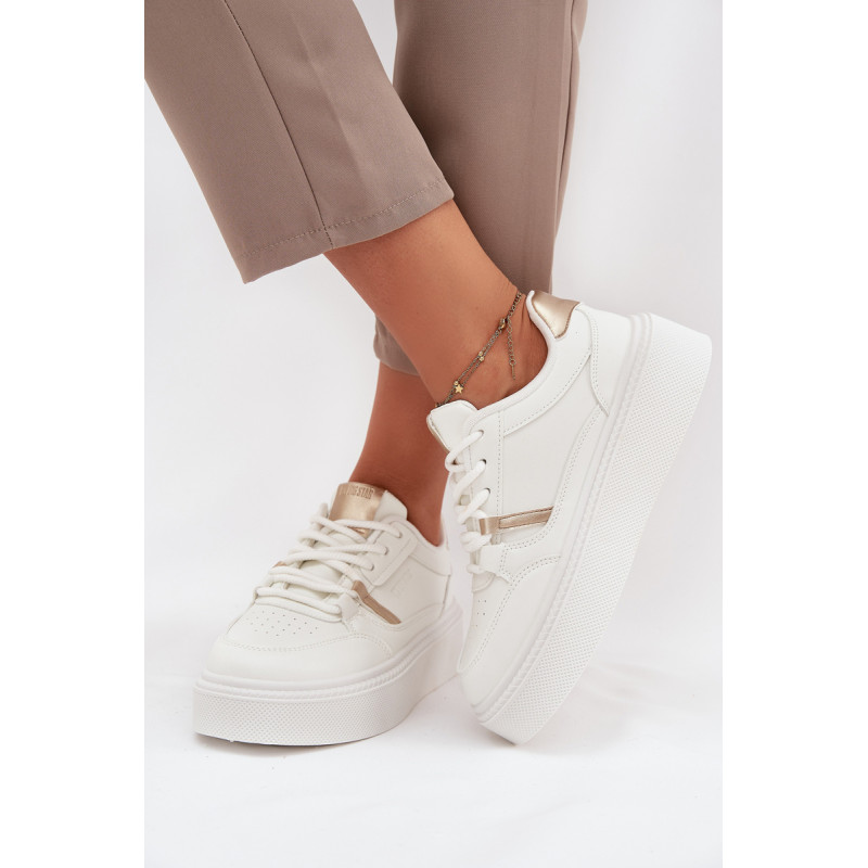 Moteriški sportbačiai iš Big Star. Pagaminti iš ekologiškos odos, ant platformos, kuri prideda aukštį ir lieknina siluetą. Minkšta vidpadis suteikia komfortą visą dieną, o klasikinis raištis leidžia puikiai pritaikyti. Puikus pasirinkimas kasdienėms stiliams, šie sportbačiai bus puikus papildymas bet kuriai garderobai, suteikiant lengvumo ir stiliaus. Renkantis dydį, vadovaukitės dydžių lentele.