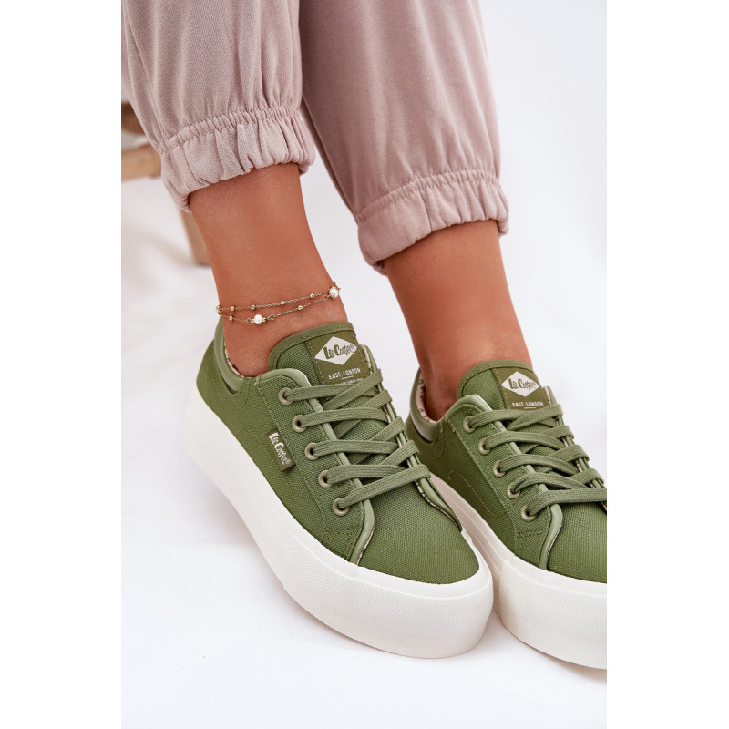 Lee Cooper moteriški sportbačiai, pagaminti iš tekstilės, yra patogumo ir madingo įvaizdžio derinys. Išdėstyti ant platformos, kuri subtiliai pakelia siluetą, jie užtikrina komfortą ir lengvumą visą dieną. Klasikinis raištelių užrišimas leidžia tobulai pritaikyti prie pėdos, o minkšta tekstilinė pado įdėklas rūpinasi tinkamu amortizavimu. Šie sportbačiai yra puikus pasirinkimas kasdieniams stiliams! Renkantis dydį, vadovaukitės dydžių lentele.