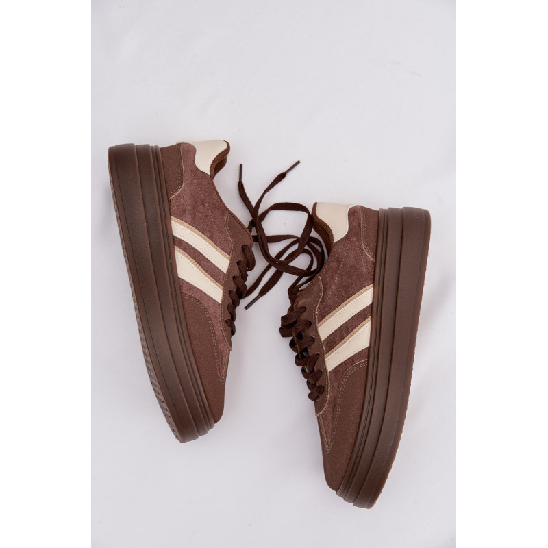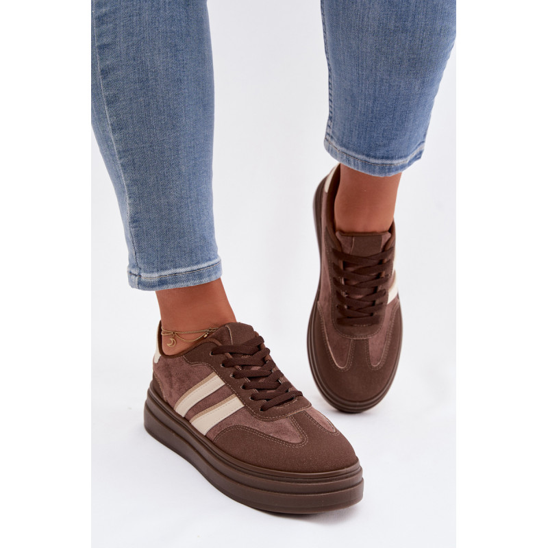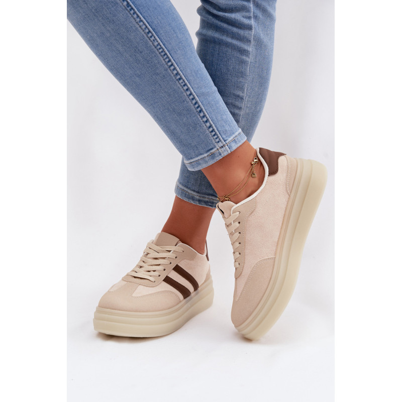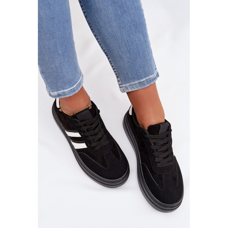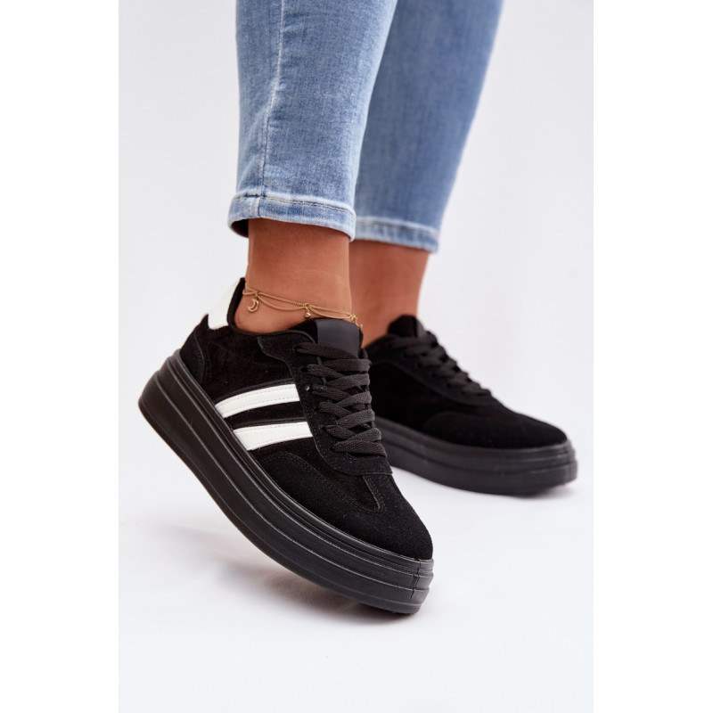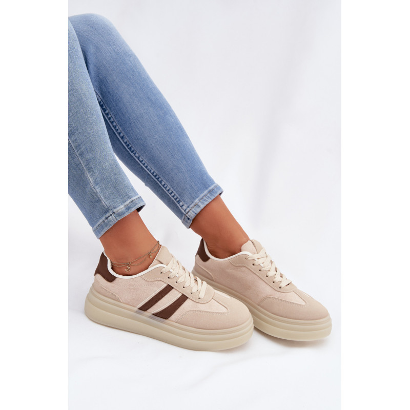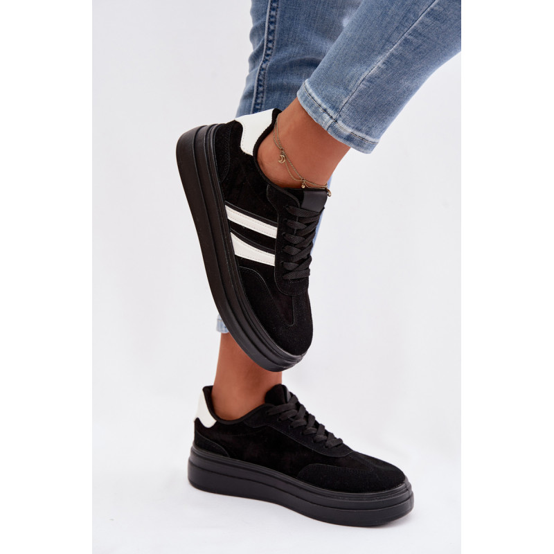 Stilingi moteriški sportbačiai iš ekologiško zomšiaus yra patogus pasirinkimas kasdien. Modelis su platforma subtiliai pabrėžia siluetą ir užtikrina stabilumą vaikštant. Du dirželiai šone suteikia sportišką, modernų charakterį. Minkšta putų įdėklas užtikrina komfortą visą dieną, todėl šie sportbačiai puikiai tinka kasdieniams įvaizdžiams. Renkantis dydį, vadovaukitės dydžių lentele.