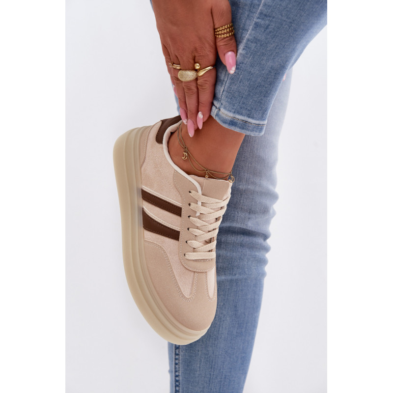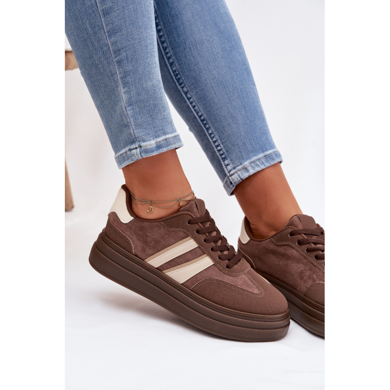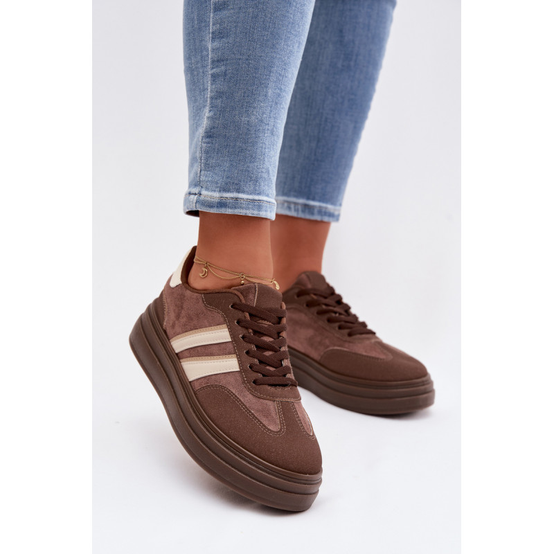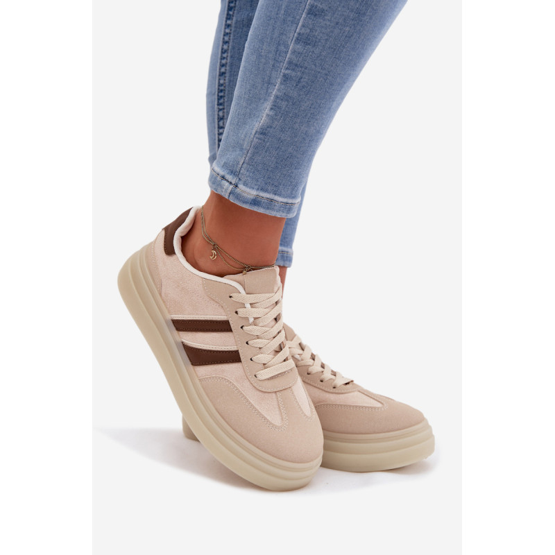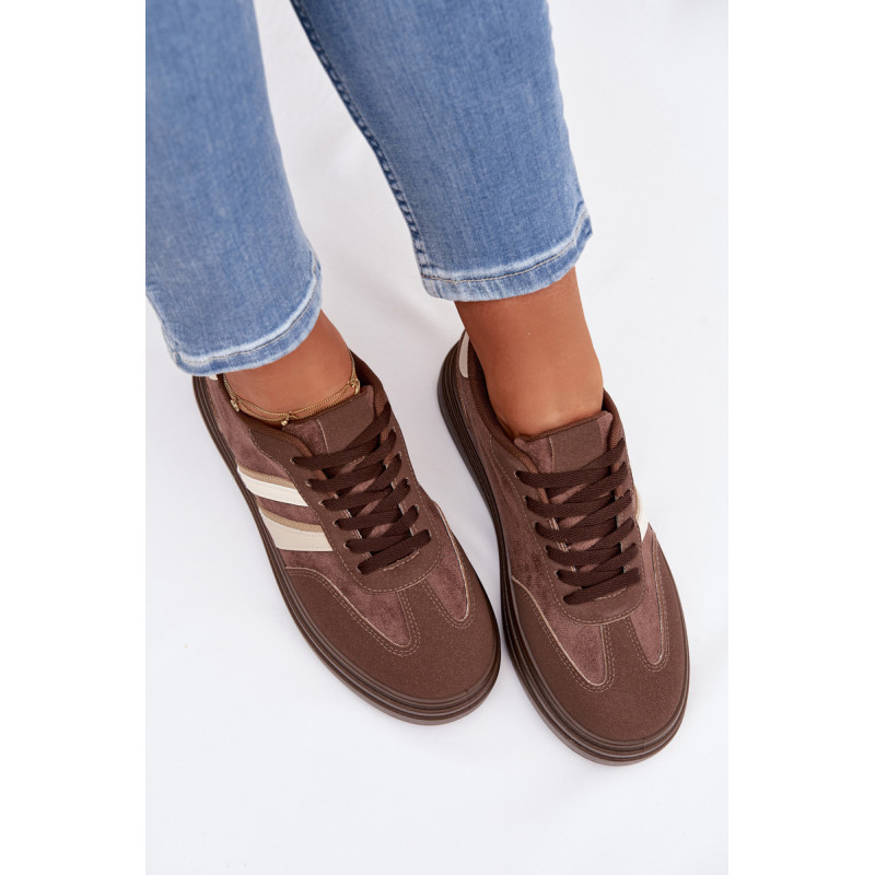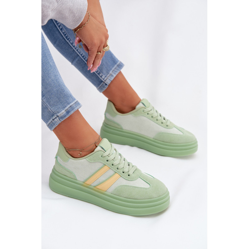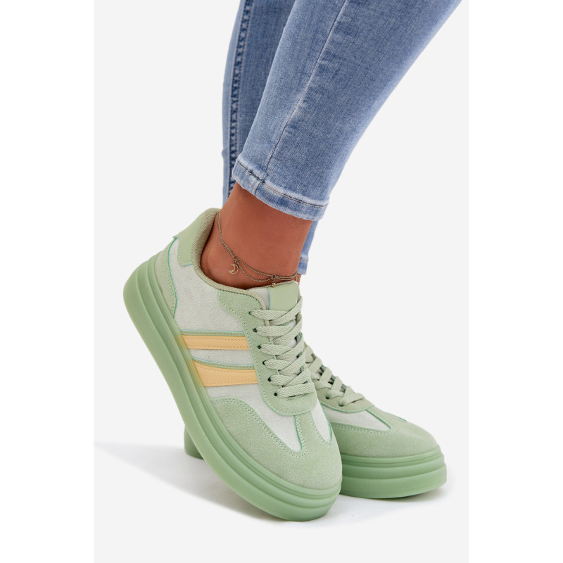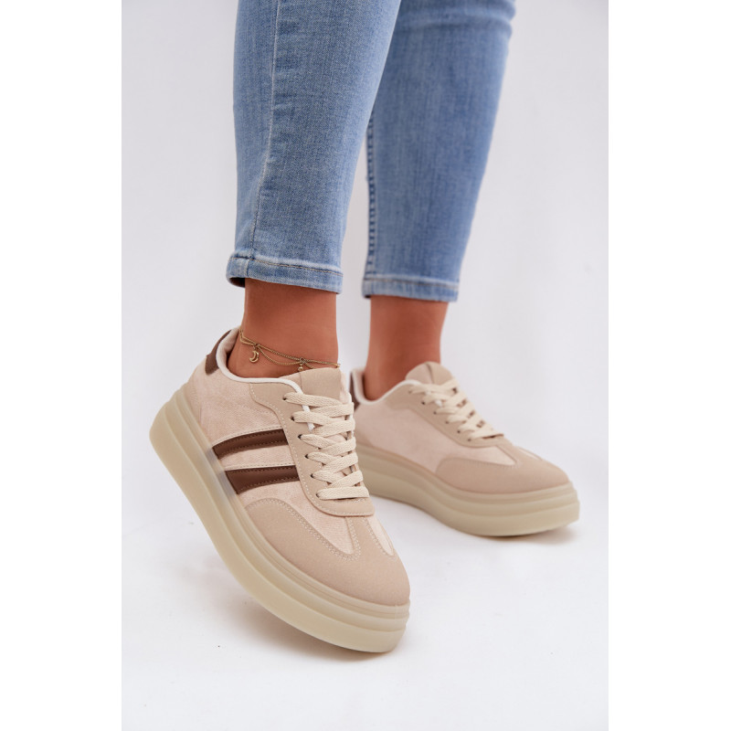 Stilingi moteriški sportbačiai iš ekologiško zomšiaus yra patogus pasirinkimas kasdien. Modelis su platforma subtiliai pabrėžia siluetą ir užtikrina stabilumą vaikštant. Du dirželiai šone suteikia sportišką, modernų charakterį. Minkšta putų įdėklas užtikrina komfortą visą dieną, todėl šie sportbačiai puikiai tinka kasdieniams įvaizdžiams. Renkantis dydį, vadovaukitės dydžių lentele.