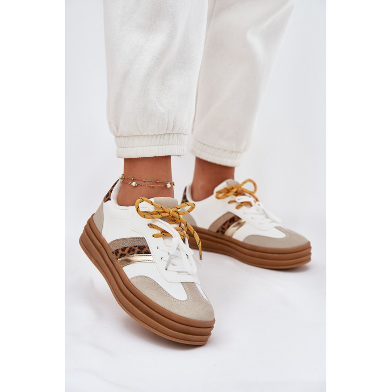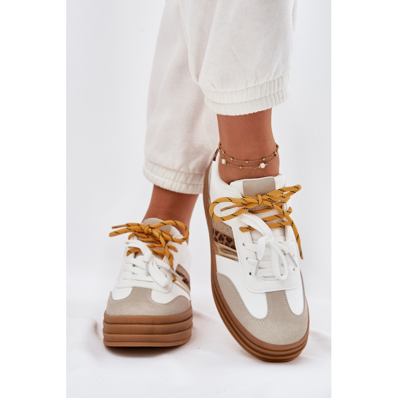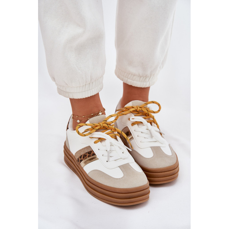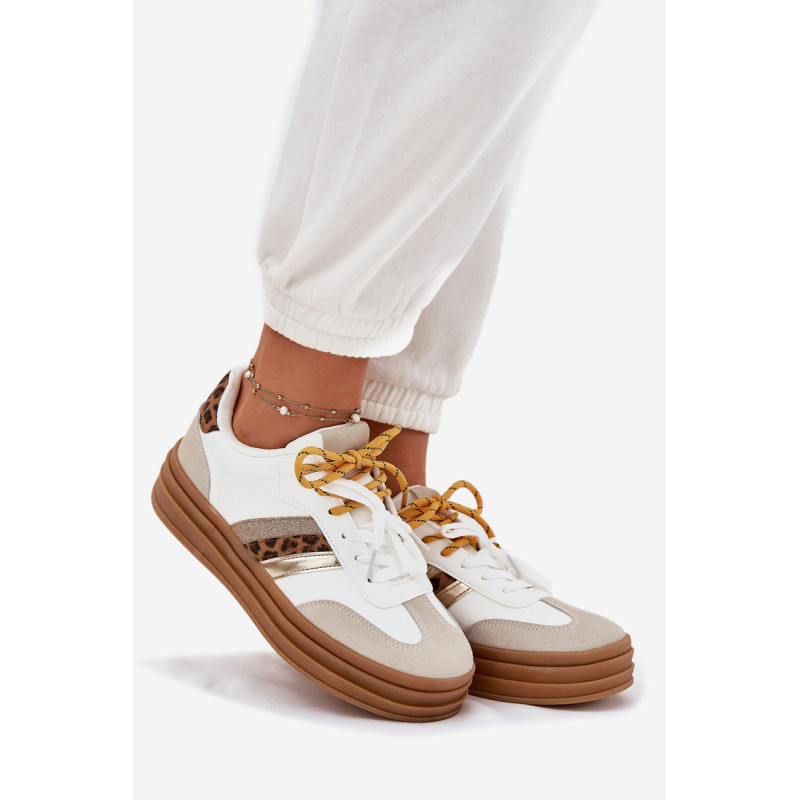 Moteriški sneakeriai, pagaminti iš ekologiškos odos, sujungia modernų stilių ir komfortą. Šis modelis išsiskiria dvigubiu raišteliu, kuris suteikia charakterį, o apvalūs pirštai užtikrina patogumą vaikštant. Putų pado, padengto medžiaga, dėka užtikrinama tinkama amortizacija, garantuojanti komfortą. Šis stilingas modelis puikiai papildys jūsų kasdienius drabužius! Renkantis dydį, vadovaukitės dydžių lentele.