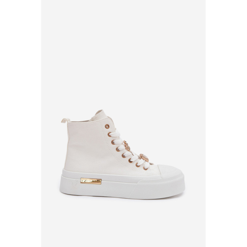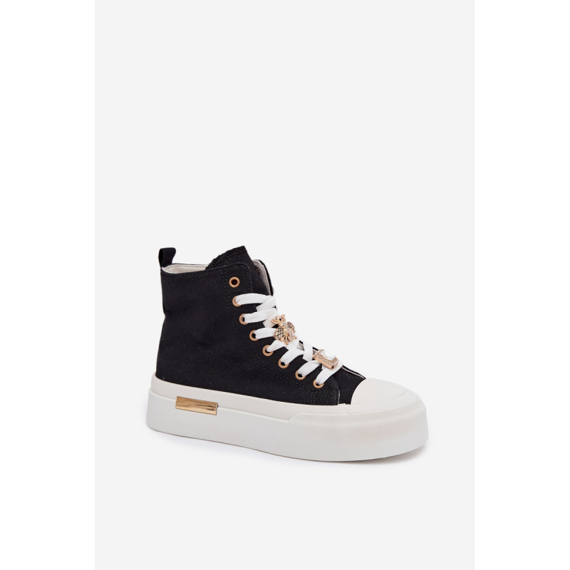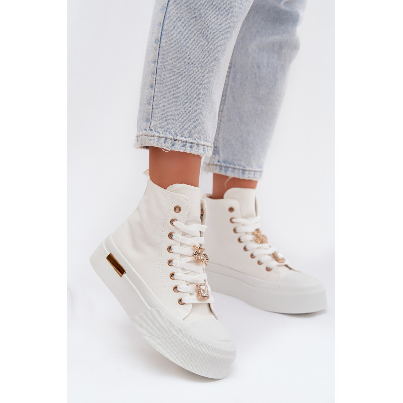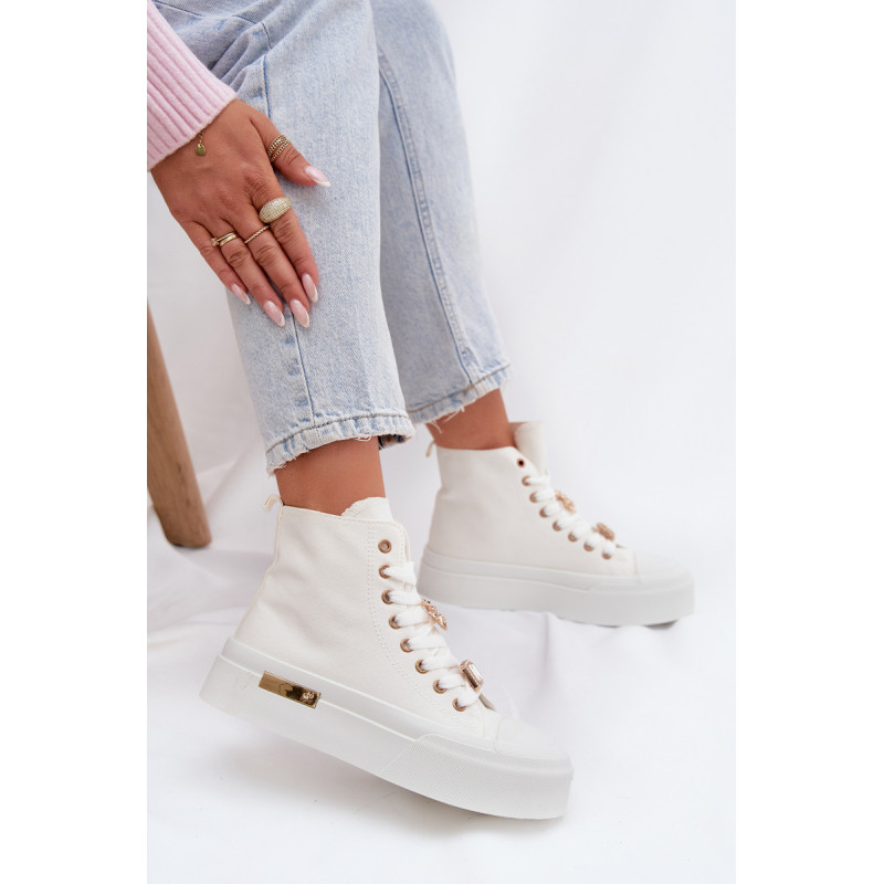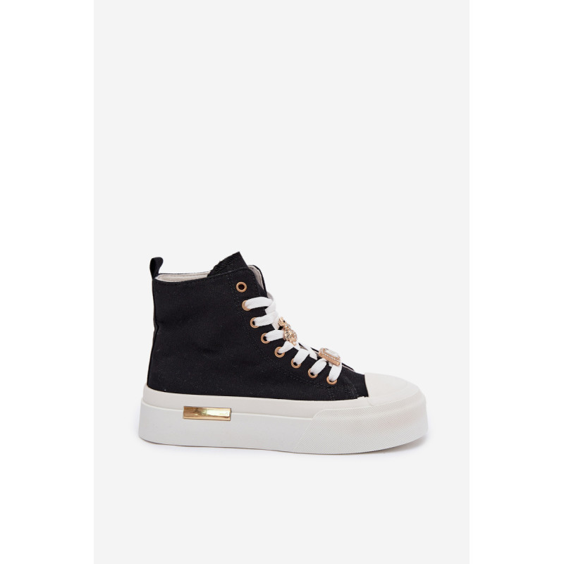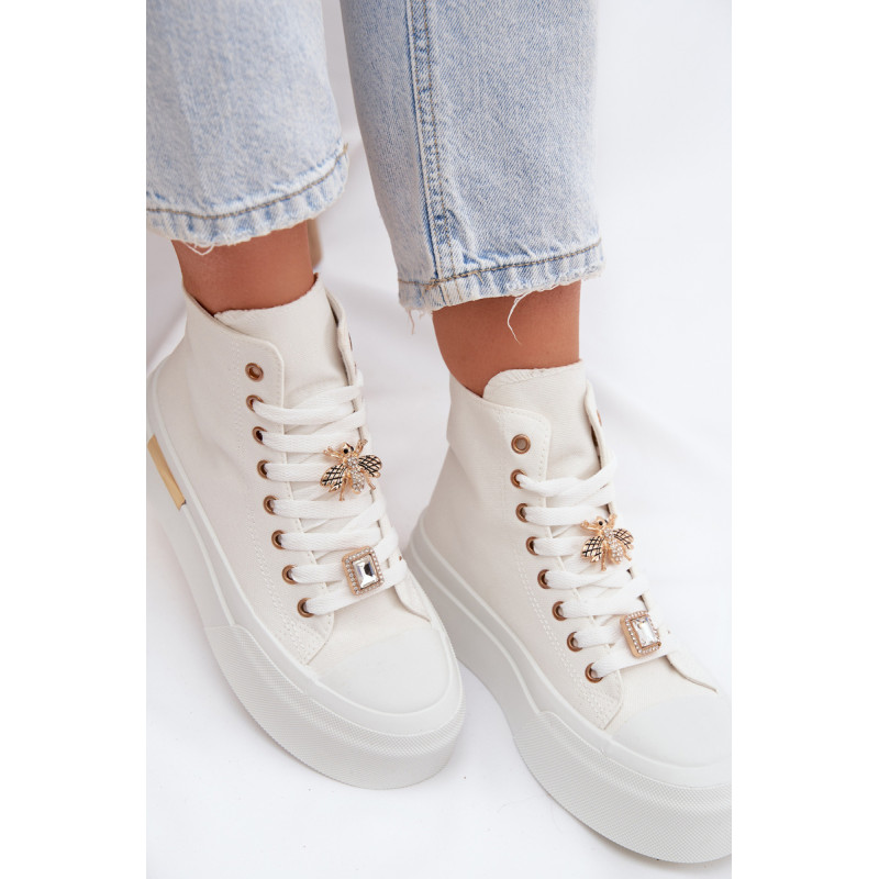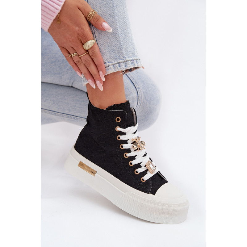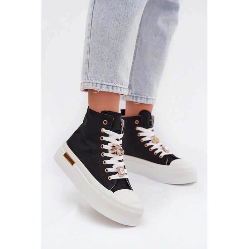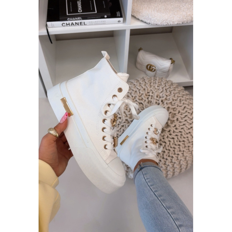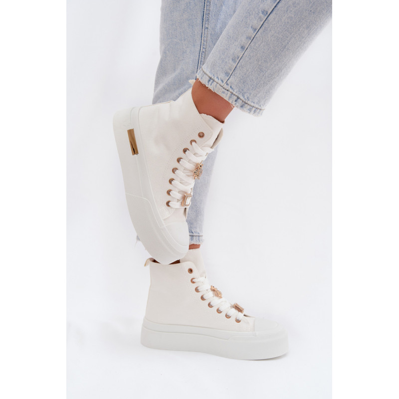 Moteriški sportiniai bateliai su masyviu platformu yra madingas pasirinkimas tiems, kurie mėgsta išraiškingą stilių. Stambus padas suteikia avalynei šiuolaikišką charakterį ir užtikrina patogumą, o auksinis elementas yra akį traukiančios detalės. Raištelių modelis garantuoja gerą pritaikymą prie pėdos, o dekoratyviniai segtukai suteikia originalumo ir madingo įvaizdžio. Šie bateliai puikiai tinka kasdienėms stiliams. Renkantis dydį, vadovaukitės dydžių lentele.