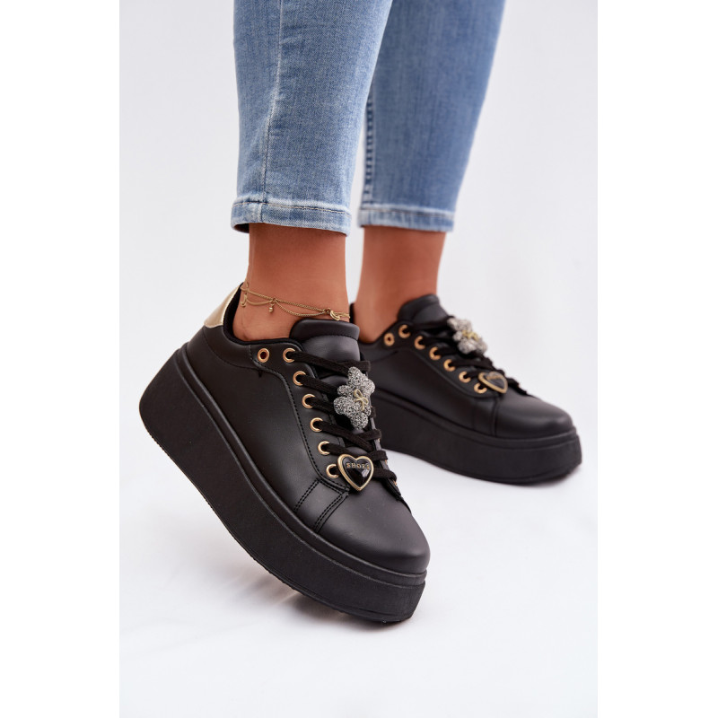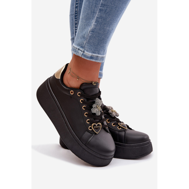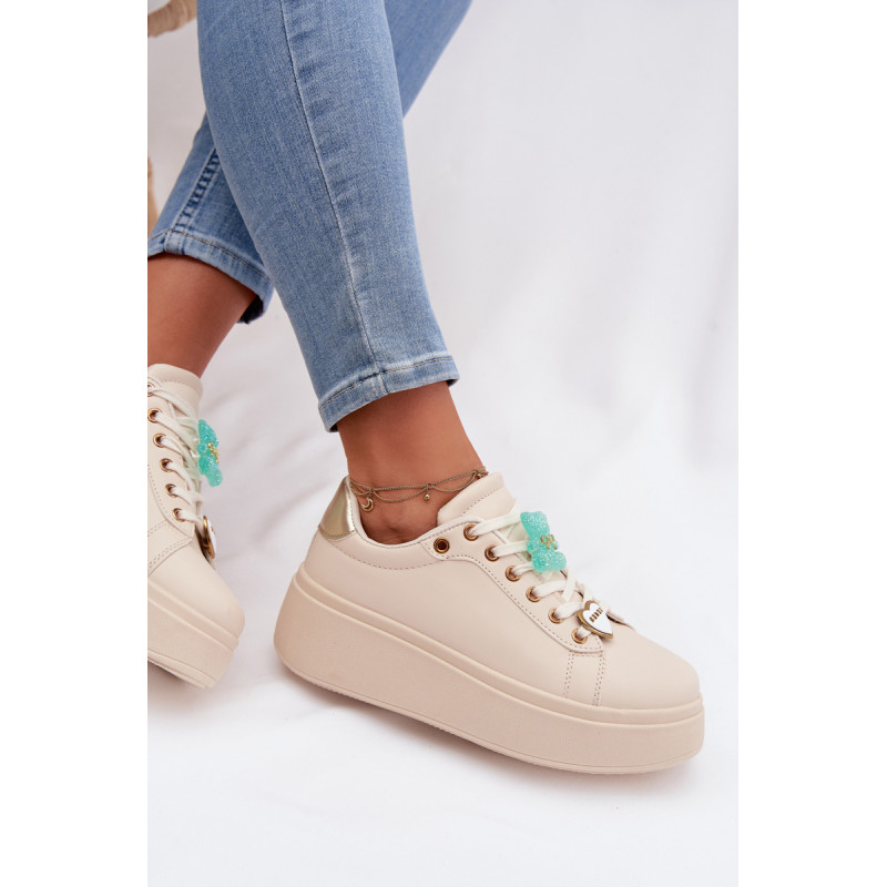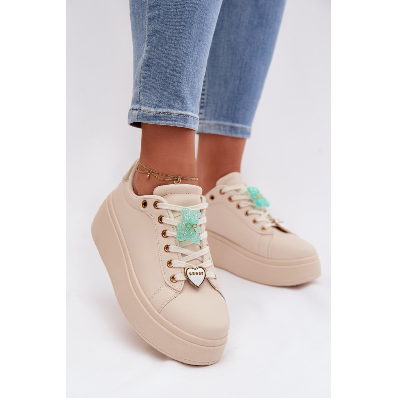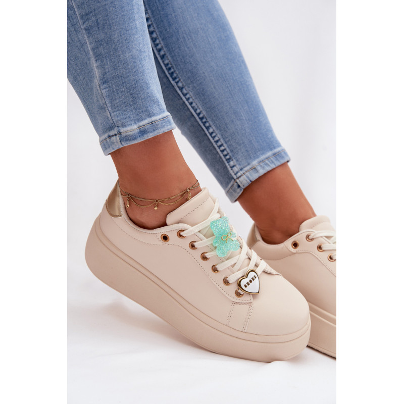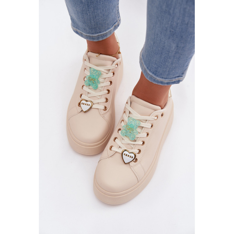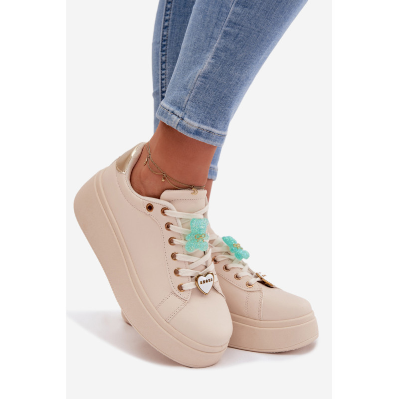 Stilingi moteriški sneakers iš ekologiškos odos – originalus pasirinkimas madingų detalių mylėtojoms. Modelis ant platformos subtiliai pabrėžia siluetą ir užtikrina patogumą visą dieną. Papuoštas segtukais, formos meškiukas ir širdelė, suteikia išskirtinį, mergaitišką charakterį. Minkšta putplasčio įdėklas, papildomai padengtas medžiaga, garantuoja komfortą visą dieną. Šie sneakers puikiai tiks kasdieniams miesto stiliams. Renkantis dydį, vadovaukitės dydžių lentele.