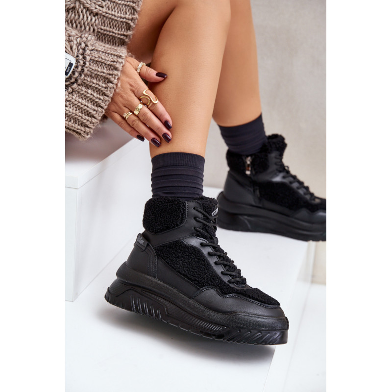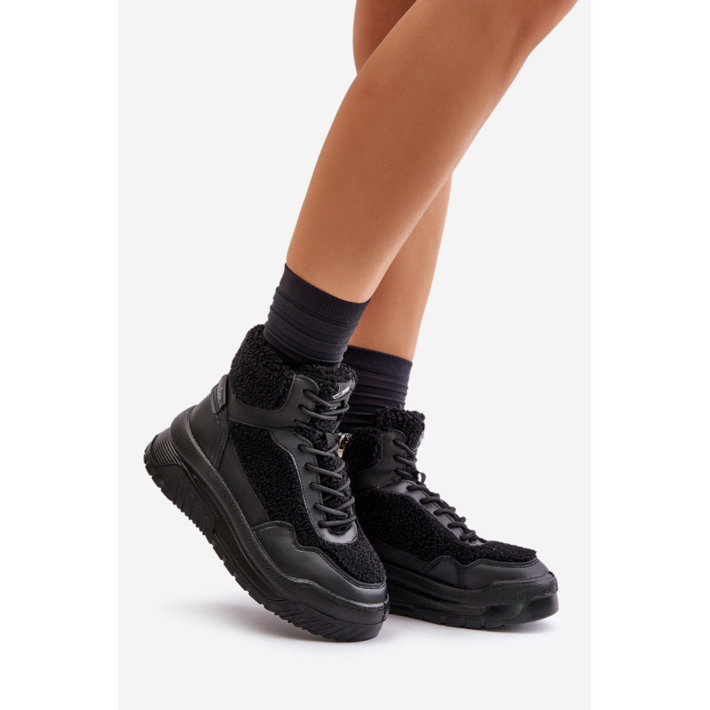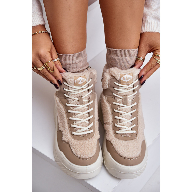 Ženske superge blagovne znamke Lee Cooper, nameščene na platformi, so popolna kombinacija sloga in udobja. Zgornji del, okrašen z ovčjim krznom, jim daje značaj in jih dela ne le modnih, temveč tudi toplih. Čevlji imajo tako vezalke kot praktičen zadrgo, kar olajša obuvanje in zagotavlja popolno prileganje. Notranjost, obložena s čevljarskim materialom, zagotavlja termično udobje v hladnejših dneh. To je stilna izbira za vsakodnevno nošenje, ki se odlično obnese v jesensko-zimski sezoni. Pri izbiri velikosti si oglejte tabelo velikosti.