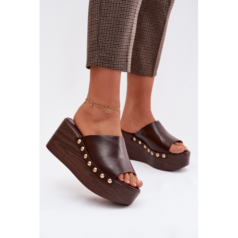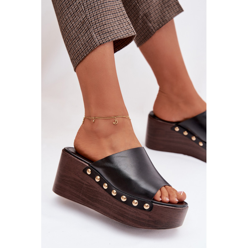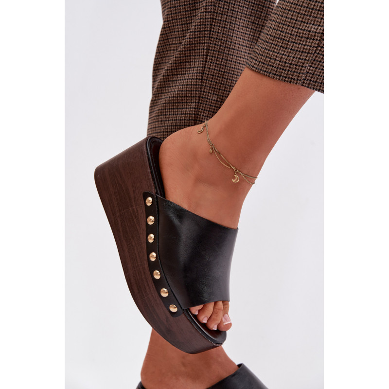 Stilingi moteriški šlepetės, pagamintos iš ekologiškos odos, yra patogus ir įspūdingas pasirinkimas kasdieniam dėvėjimui. Kulnas, sujungtas su platforma, užtikrina stabilumą ir komfortą, subtiliai pabrėždama siluetą. Auksiniai kniedės, išdėstyti šonuose, suteikia visumai madingą charakterį. Modelis puikiai tiks vasaros stiliams – tiek su suknelėmis, tiek su kelnytėmis ar sijonais. Tai ideali pasirinkimas moterims, kurios vertina patogumą, susietą su išraiškingu, stilingu detalu. Renkantis dydį, vadovaukitės dydžių lentele.