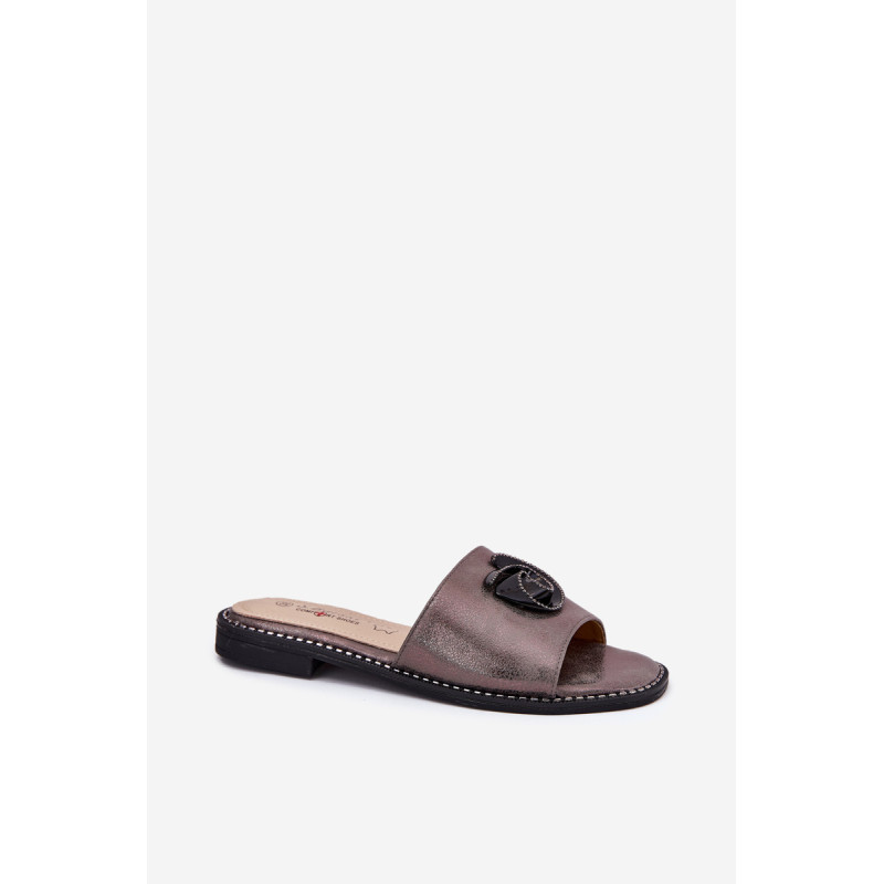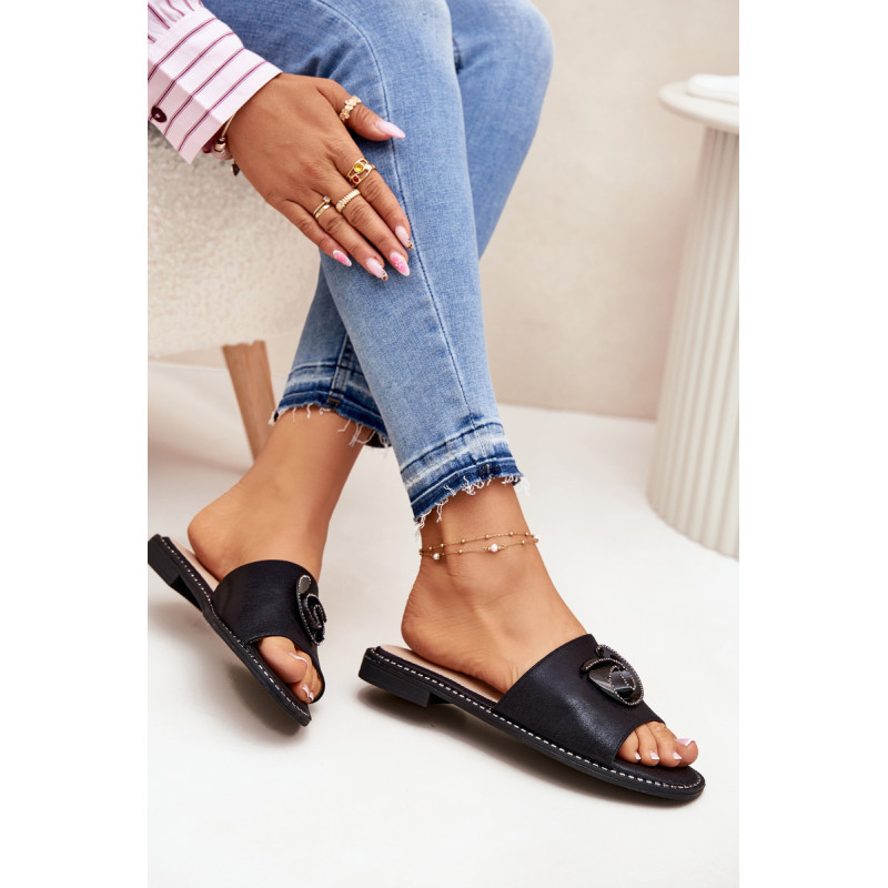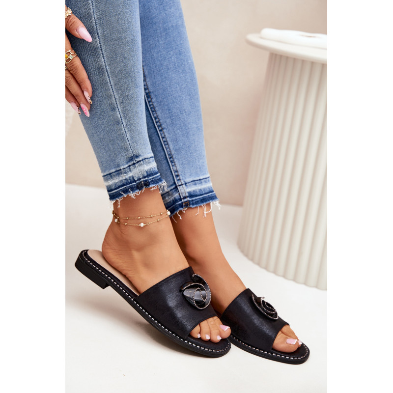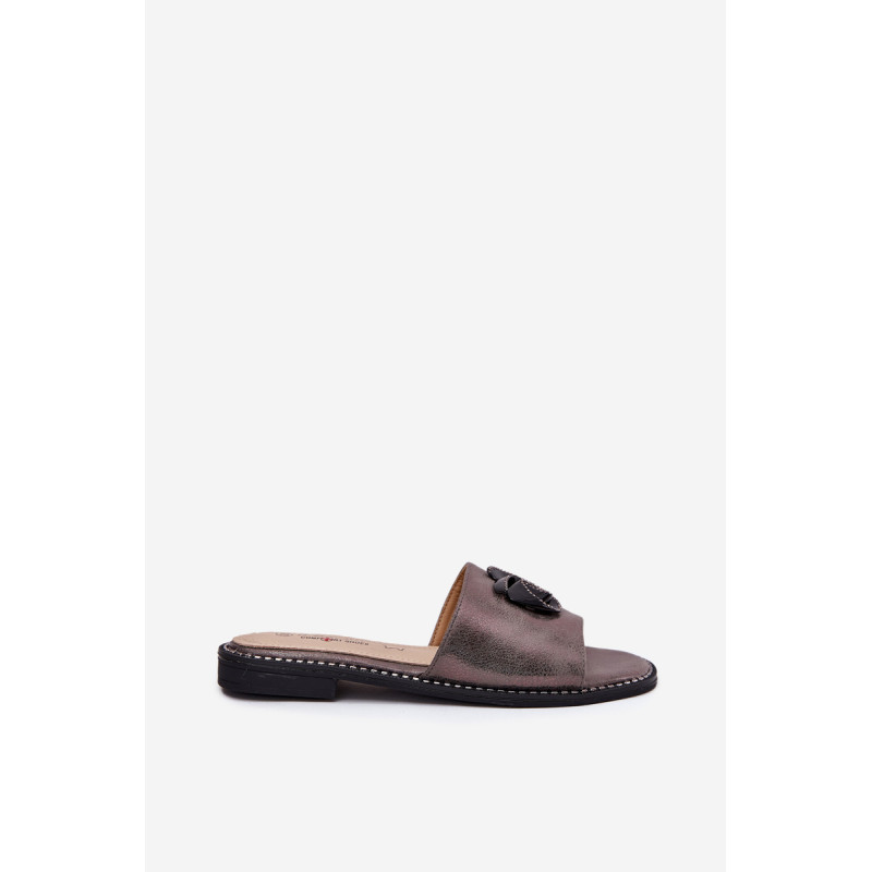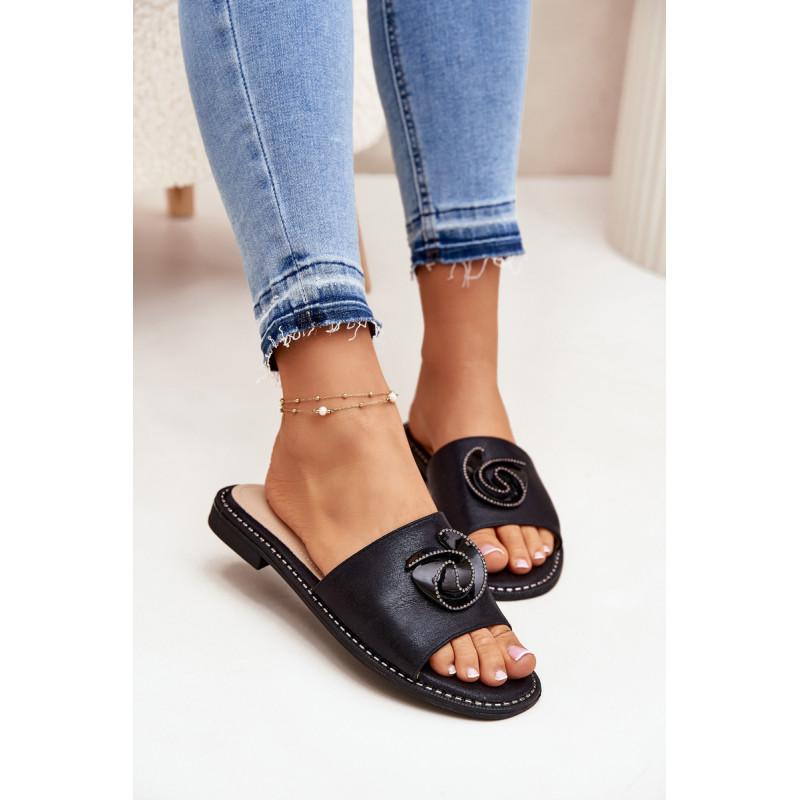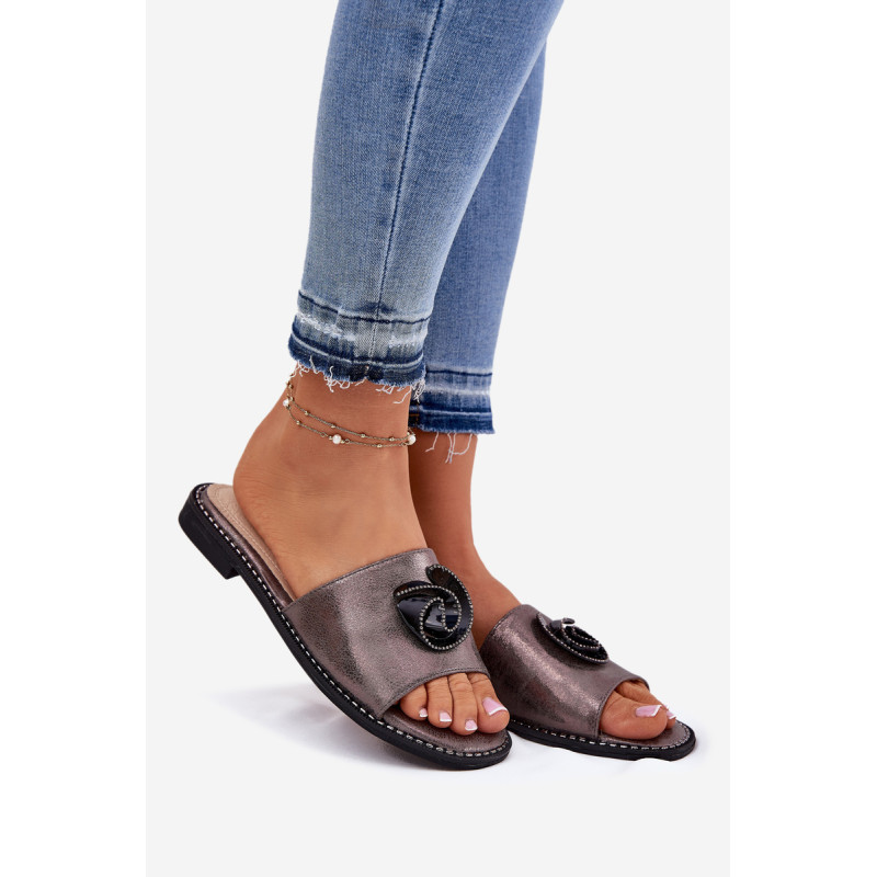 Elegantiški moteriški šlepetės iš S.Barski prekės ženklo yra stilingas pasiūlymas šiltesnėms dienoms. Įmontuoti ant plokščio kulno. Pagaminti iš eko odos. Priekyje dekoratyvinis elementas, suteikiantis jiems unikalų charakterį. Puikiai tinka kasdieniams stiliams, jie jungia eleganciją su funkcionalumu, puikiai derindamiesi su vasaros apranga. Renkantis dydį, vadovaukitės dydžių lentele.