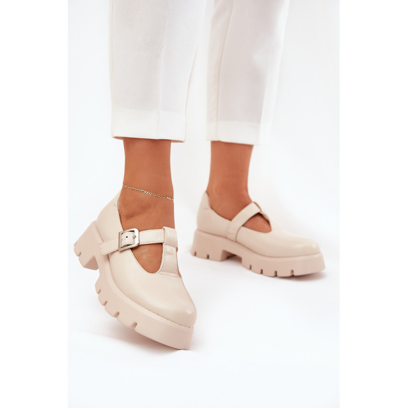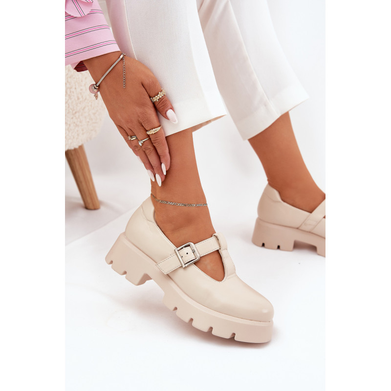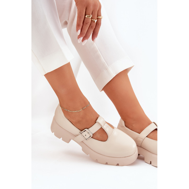Stilingi moteriški pusbačiai, pagaminti iš ekologiškos odos, yra puikus klasikos ir modernios išvaizdos derinys. Įrengti ant plokščio kulno ir platformos, jie užtikrina komfortą ir stabilumą kiekviename žingsnyje. Dirželis su sagtimi ant pėdos vidurio padidina pritaikymą ir palaiko pėdą. Idealiai tinka kasdieniam dėvėjimui, tiek kasdienėms, tiek elegantiškesnėms aprangoms! Renkantis dydį, vadovaukitės dydžių lentele.