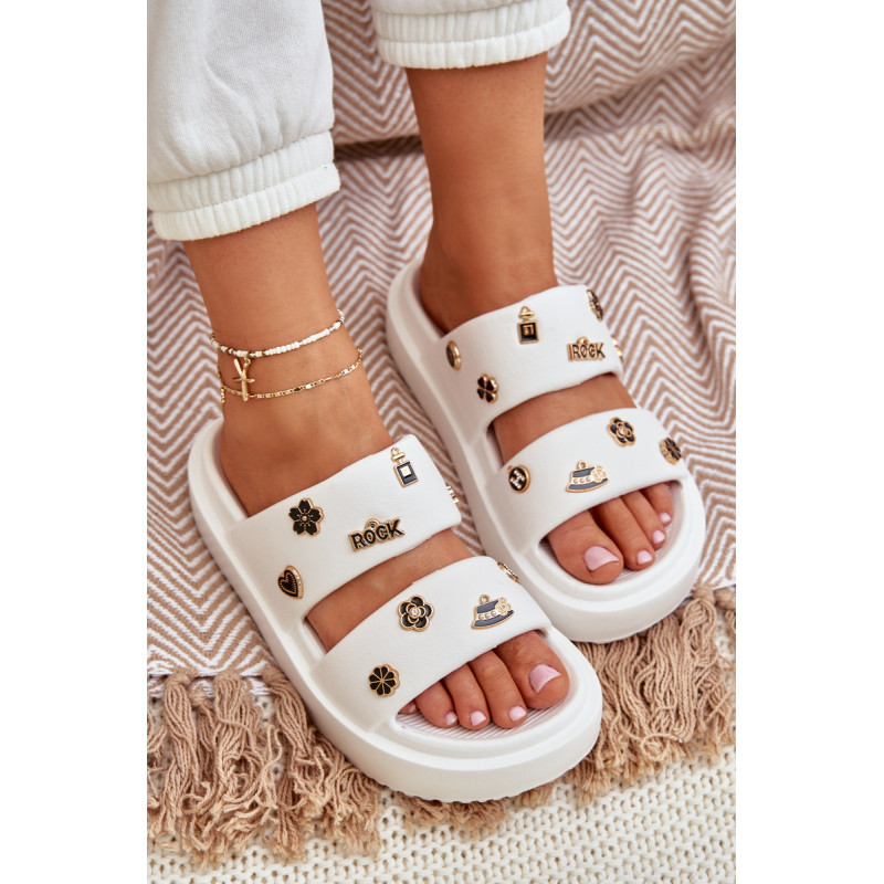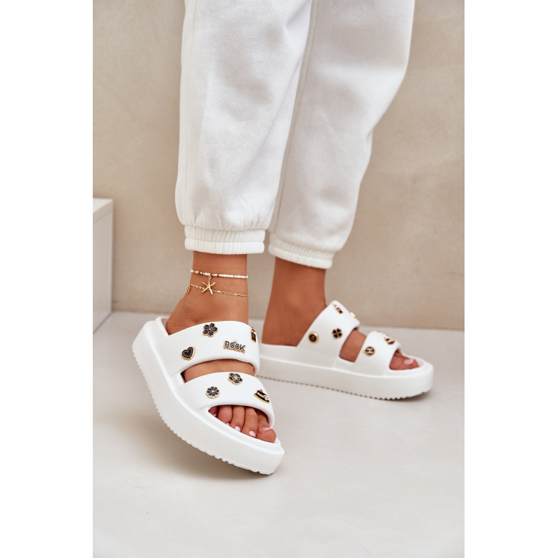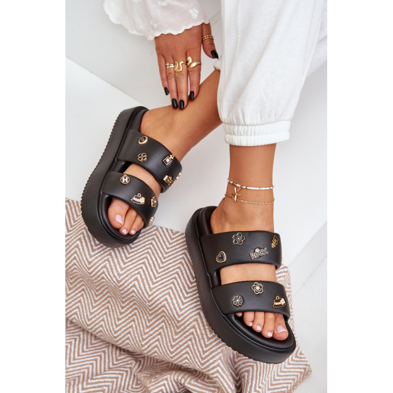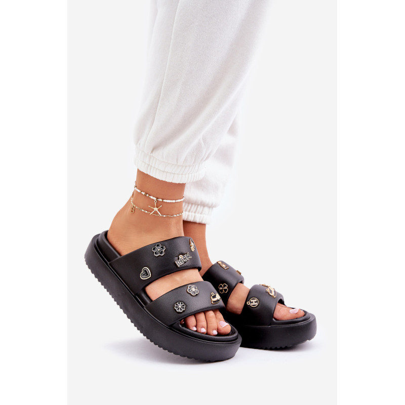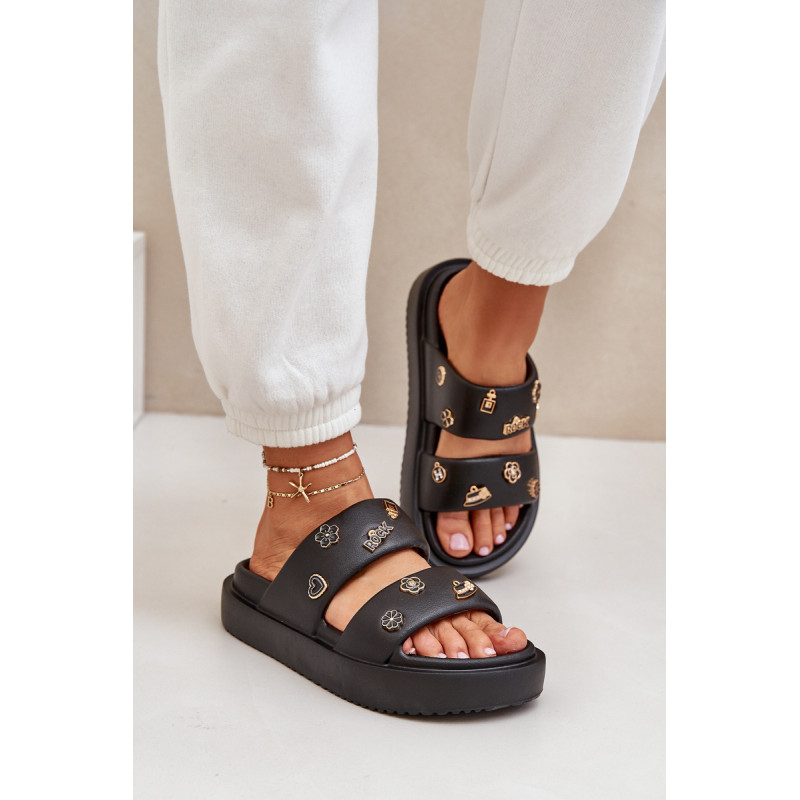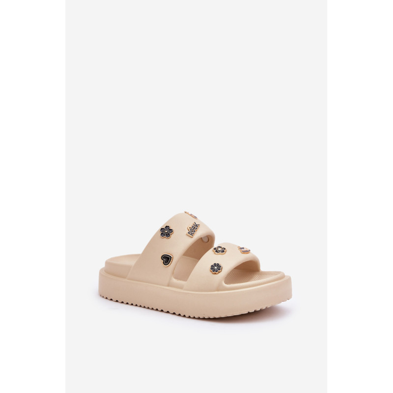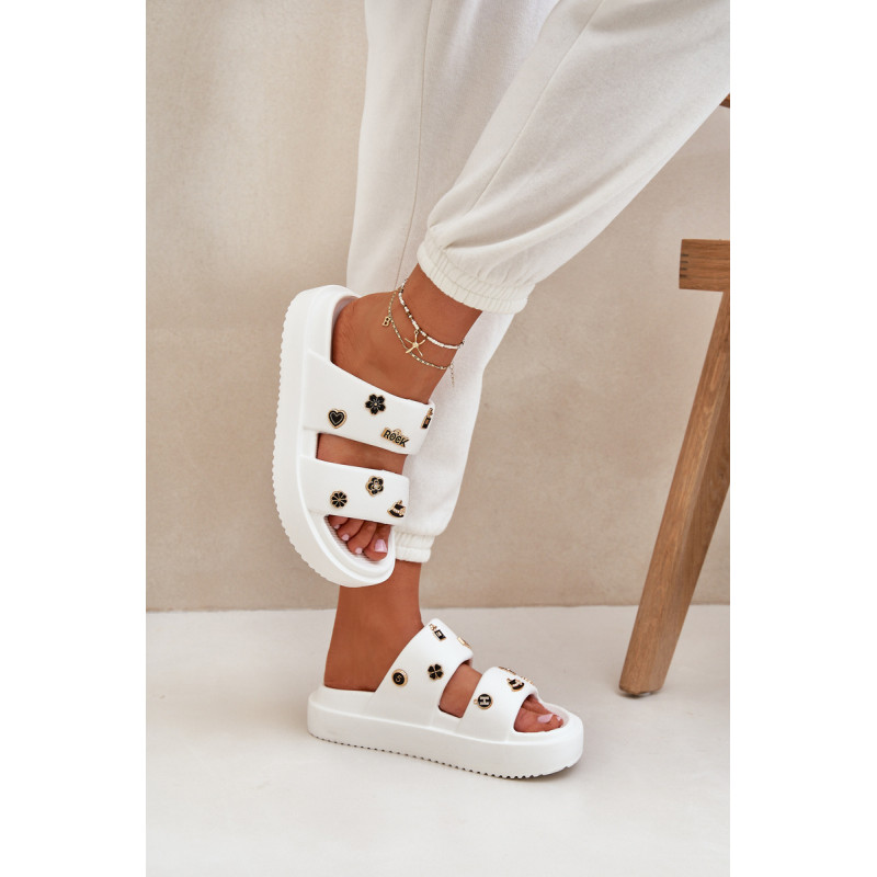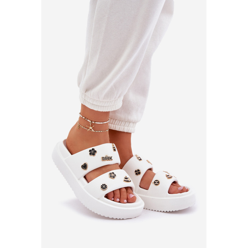 Moteriški šlepetės iš lengvos putos yra stilingas pasirinkimas kiekvienai moteriai. Platforma garantuoja komfortą ir stabilumą. Šlepetės dekoruotos detalėmis, kurios traukia dėmesį, puikiai derančiomis prie vasaros derinių, sujungiančių komfortą su madingu stiliumi. Renkantis dydį, vadovaukitės dydžių lentele.
