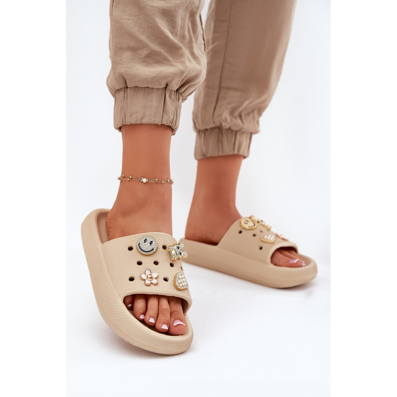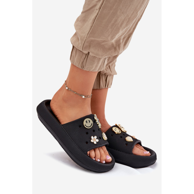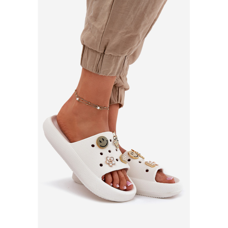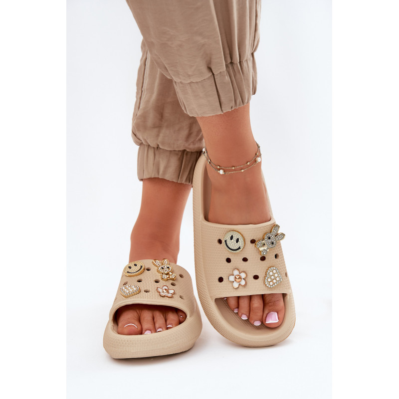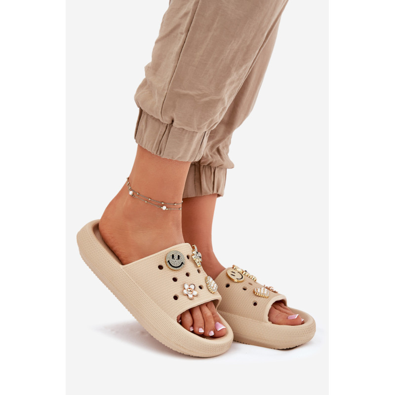 Lengvi moteriški šlepetės, pagamintos iš putų medžiagos, sumontuotos ant patogios platformos. Šis modelis išsiskiria spalvingomis dekoratyvinėmis segtukais, kurie suteikia jam unikalų charakterį. Puikiai tinka baseinui, paplūdimiui, vasaros atostogoms ar vasaros pasivaikščiojimams - užtikrina komfortą ir madingą išvaizdą kiekvienoje situacijoje! Renkantis dydį, vadovaukitės dydžių lentele.