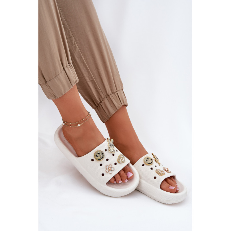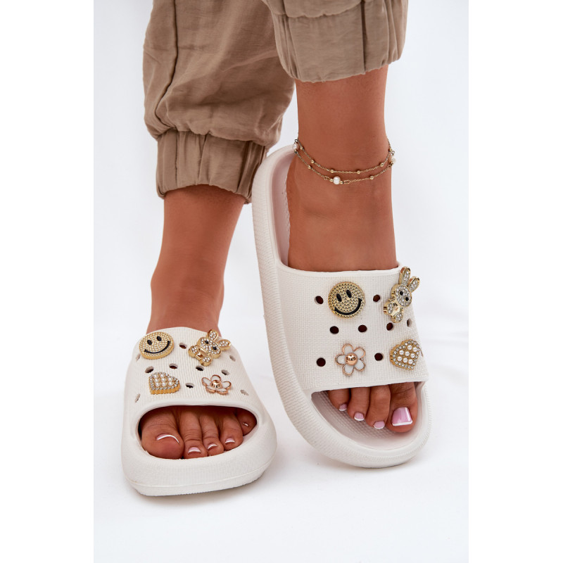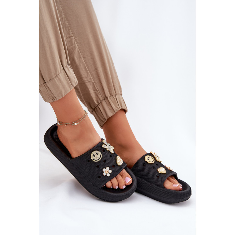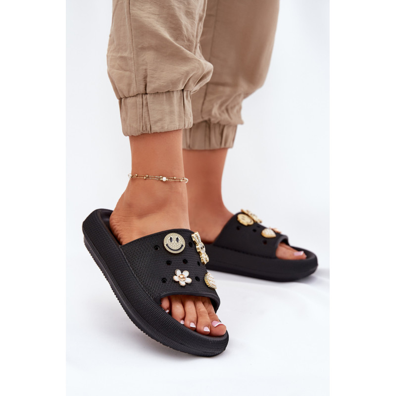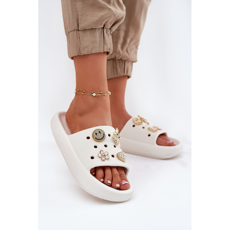 Lengvi moteriški šlepetės, pagamintos iš putų medžiagos, sumontuotos ant patogios platformos. Šis modelis išsiskiria spalvingomis dekoratyvinėmis segtukais, kurie suteikia jam unikalų charakterį. Puikiai tinka baseinui, paplūdimiui, vasaros atostogoms ar vasaros pasivaikščiojimams - užtikrina komfortą ir madingą išvaizdą kiekvienoje situacijoje! Renkantis dydį, vadovaukitės dydžių lentele.