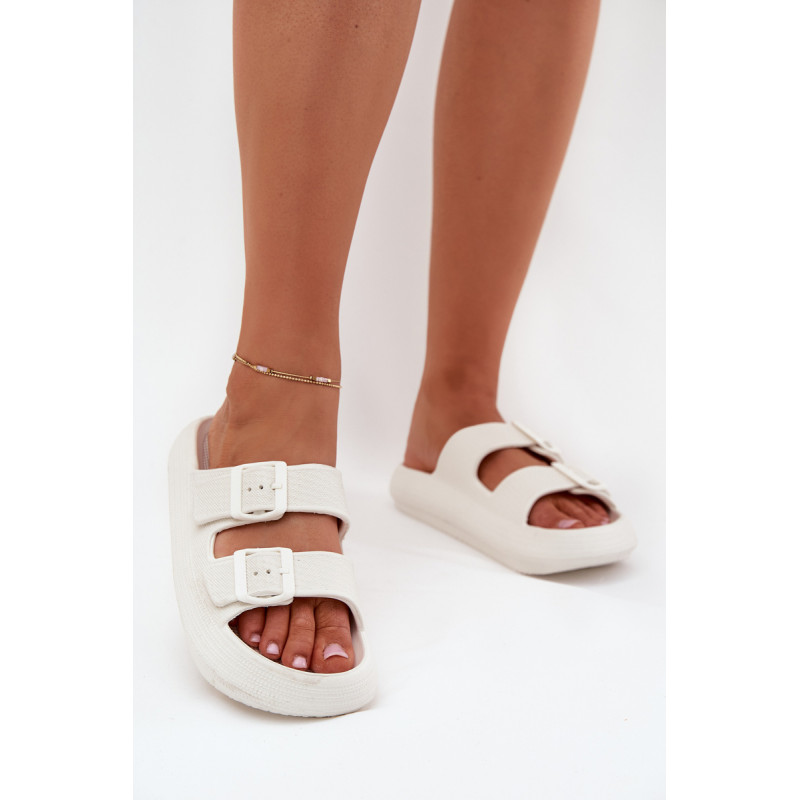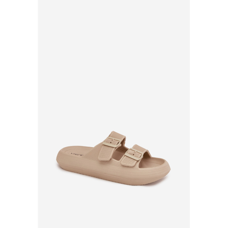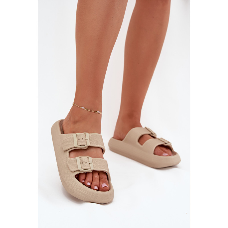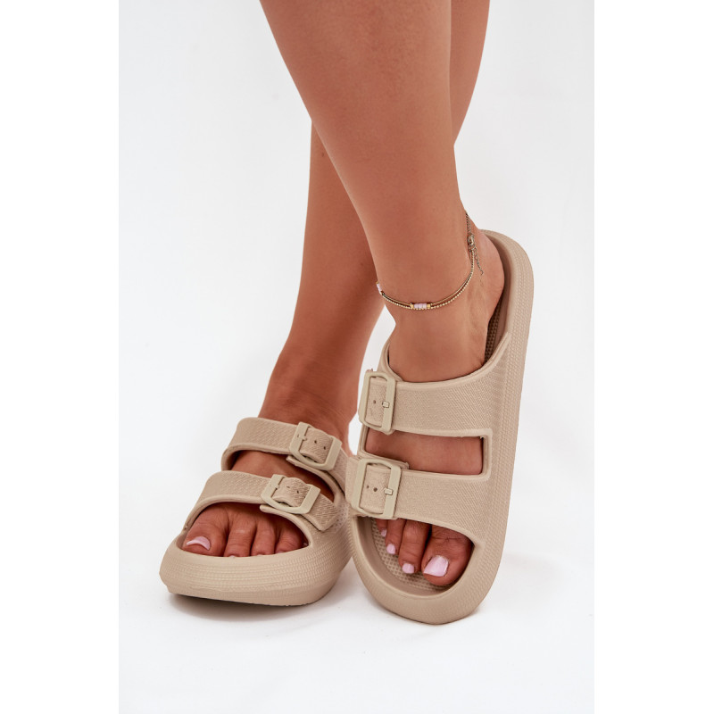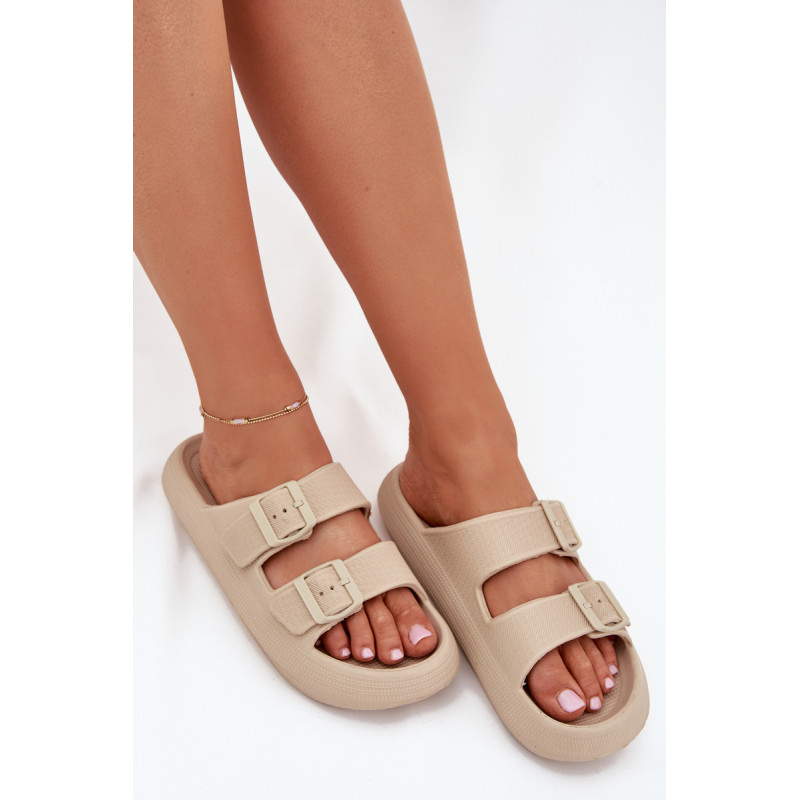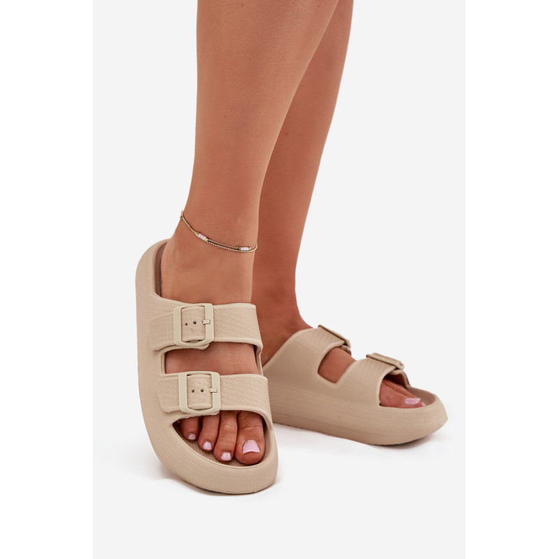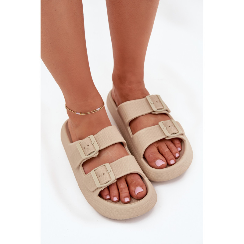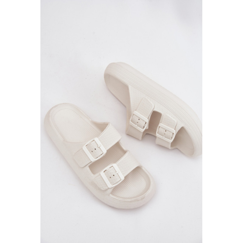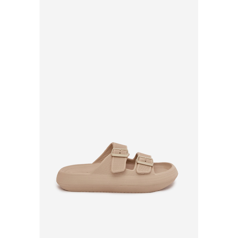 Moteriški šlepetės, pagamintos iš putplasčio medžiagos, sumontuotos ant storos padangos, sujungia komfortą su moderniu įvaizdžiu. Šis modelis turi reguliuojamas juostas su sagtimis, leidžiančias idealiai pritaikyti prie pėdos. Puikiai tinka kasdieniams pasivaikščiojimams, dienoms prie baseino, paplūdimyje ir vasaros kelionėms, užtikrindamos komfortą ir lengvumą, puikiai derančios prie vasaros klimato. Renkantis dydį, vadovaukitės dydžių lentele.