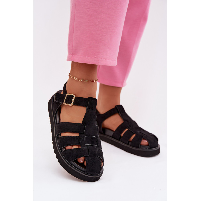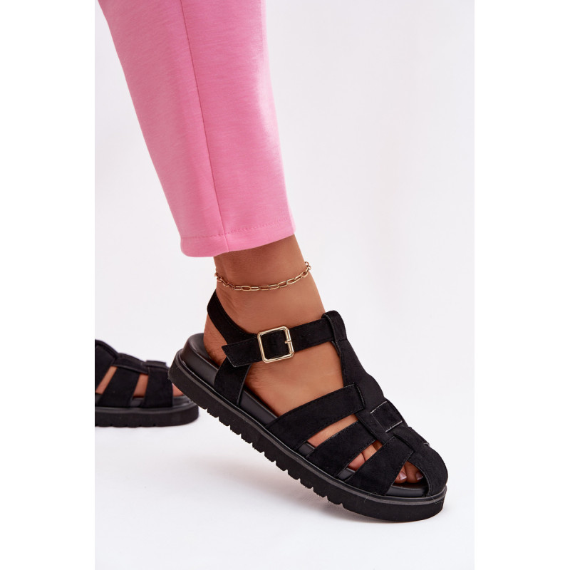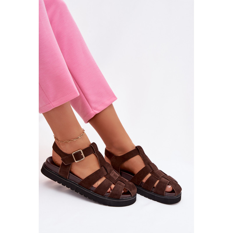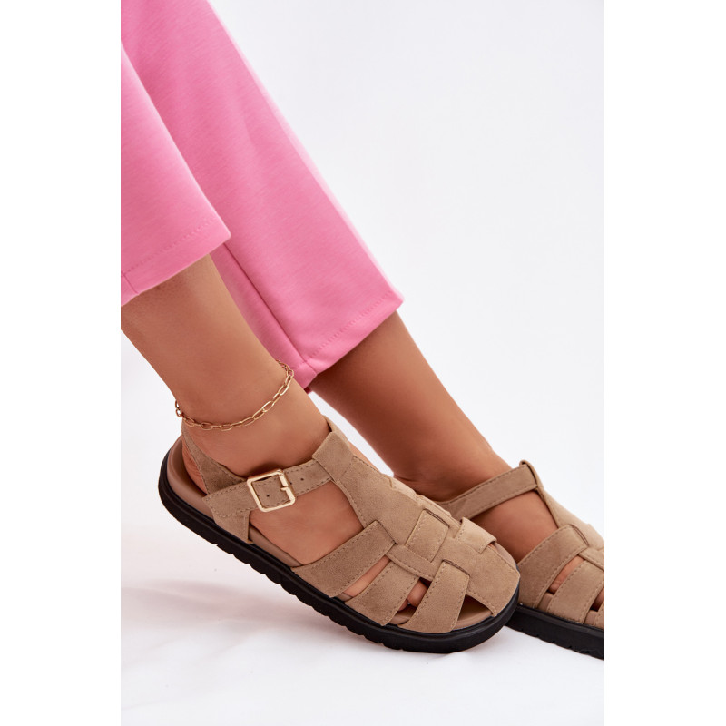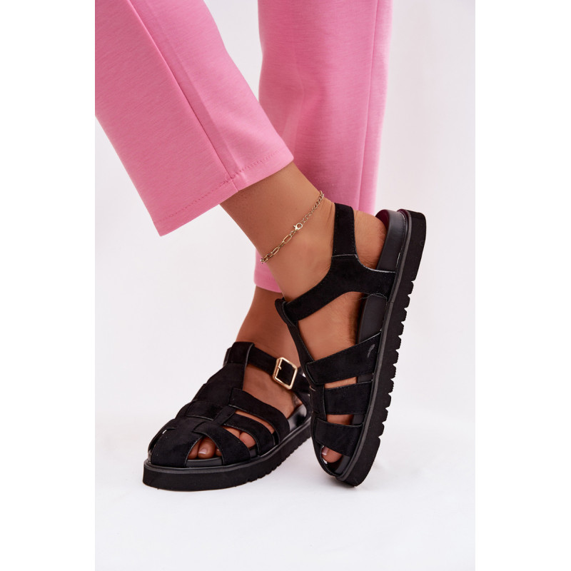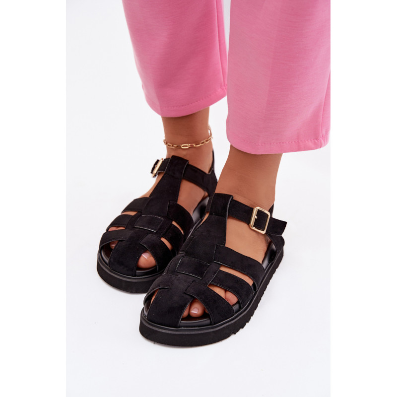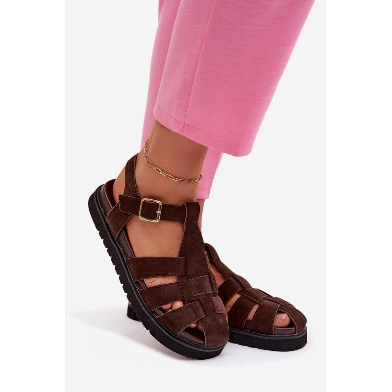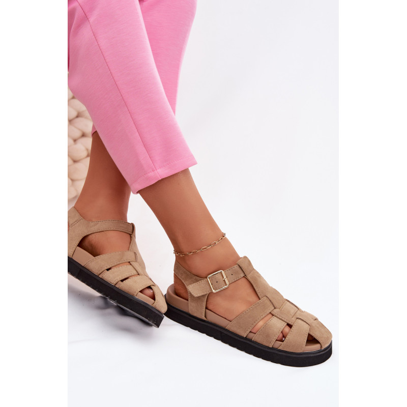 Moteriški sandalai, įkvėpti romėniško stiliaus, yra derinys vasaros lengvumo ir patogumo. Pagaminti iš ekologiško zomšos, atrodo stilingai ir elegantiškai, o platforma užtikrina komfortą ir saugumą žingsniuose. Reguliuojamas dirželis su auksine sagtimi leidžia pritaikyti prie pėdos. Puikus pasirinkimas kasdieniams vasaros deriniams, kurie sujungia madingą išvaizdą su funkcionalumu. Renkantis dydį, vadovaukitės dydžių lentele.