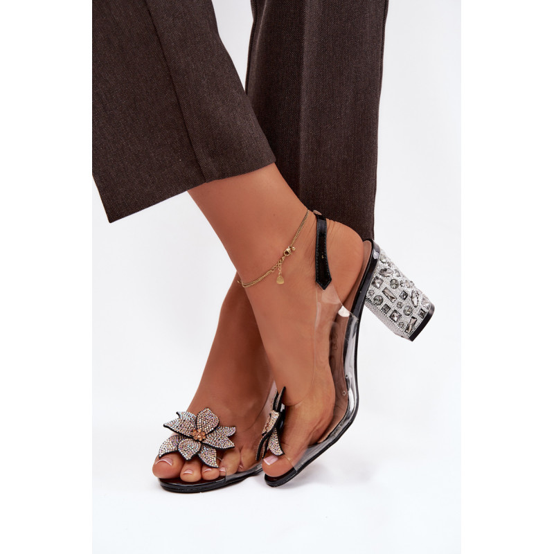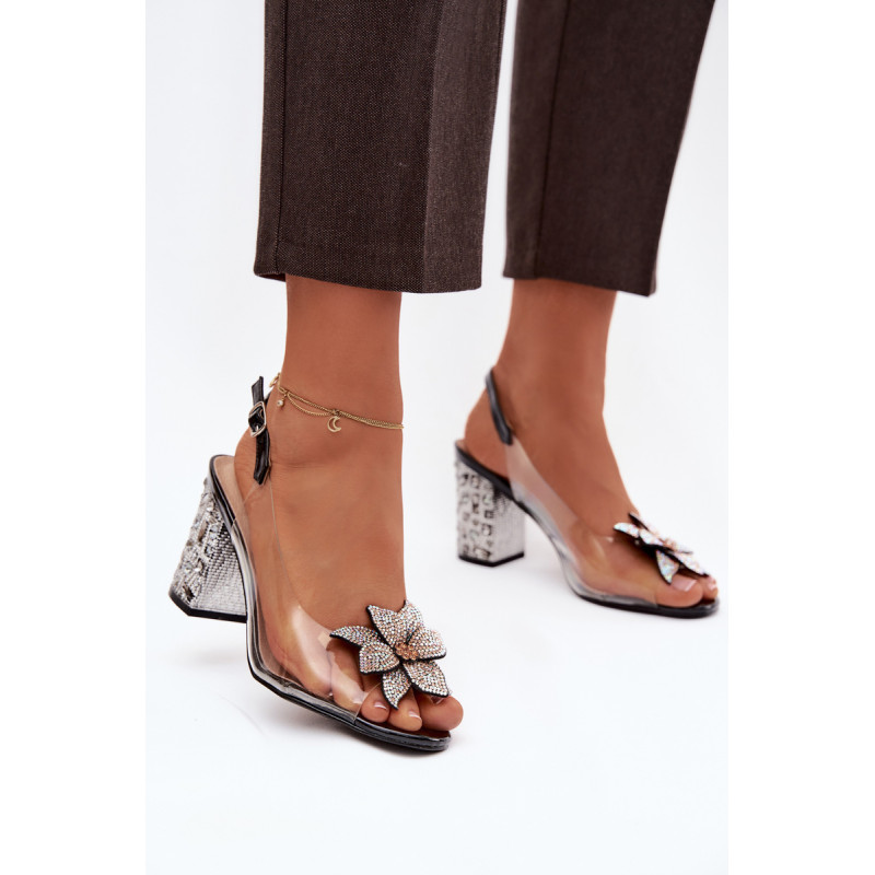 Įspūdingos skaidrios moterų sandalai yra elegantiškas pasirinkimas išskirtinėms progoms. Stabilus kubo formos kulnas, papuoštas kristalais, suteikia visapusiškai prabangų blizgesį ir tuo pačiu užtikrina patogumą bei pasitikėjimą kiekvienu žingsniu. Priekinė sandalų dalis papuošta dekoratyviniu gėlės formos akmeniu su cirkonių akmenimis, kurie pabrėžia modelio moterišką ir juvelyrinę charakteristiką. Odinė vidpadis garantuoja komfortą ir gerą prigludimą prie pėdos net ir ilgalaikio dėvėjimo metu. Užsegimas su sagtimi ir reguliuojamu dirželiu leidžia idealiai pritaikyti ir užtikrinti stabilumą. Šie sandalai puikiai papildys elegantiškas sukneles, vakaro aprangą ir iškilmingus drabužius. Pasirinkdami dydį, naudokitės dydžių lentele. Renkantis dydį, vadovaukitės dydžių lentele.