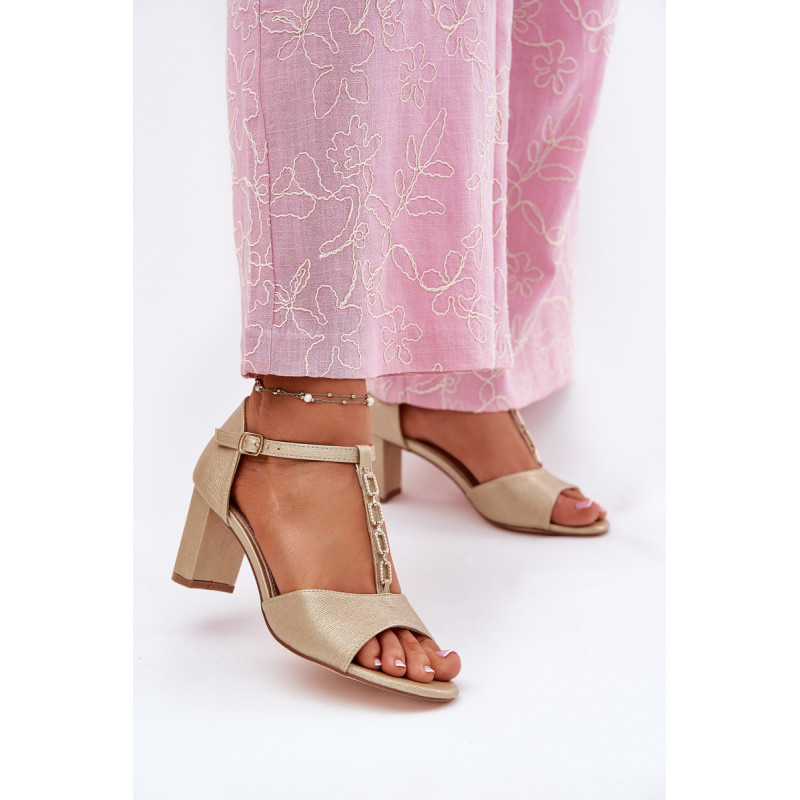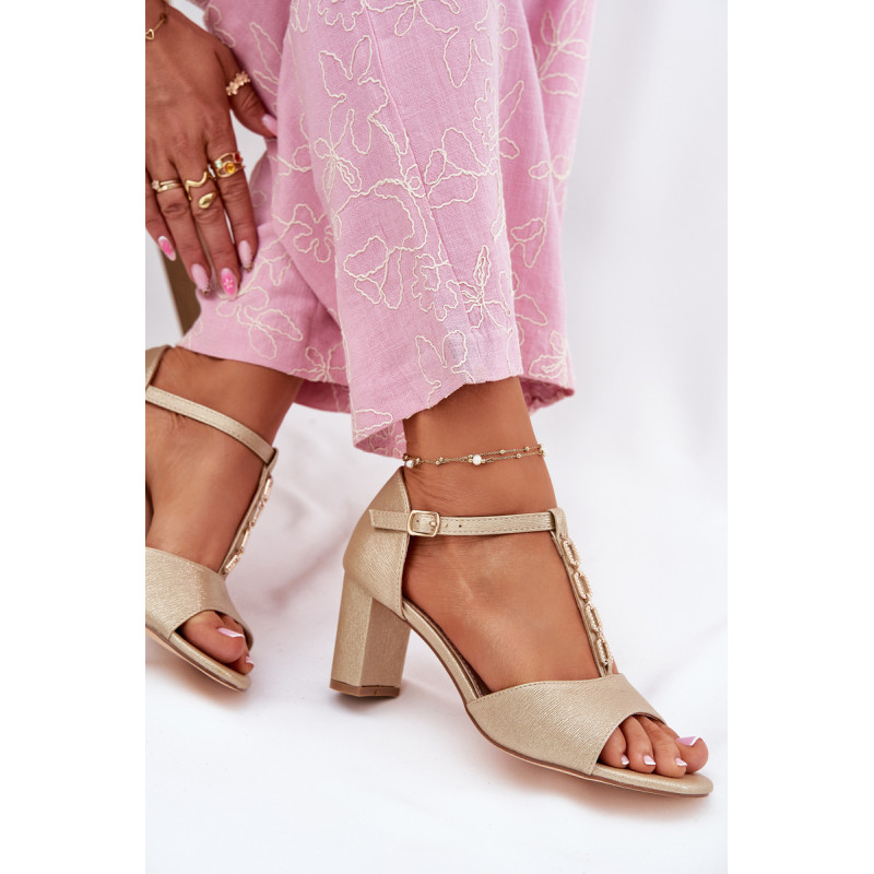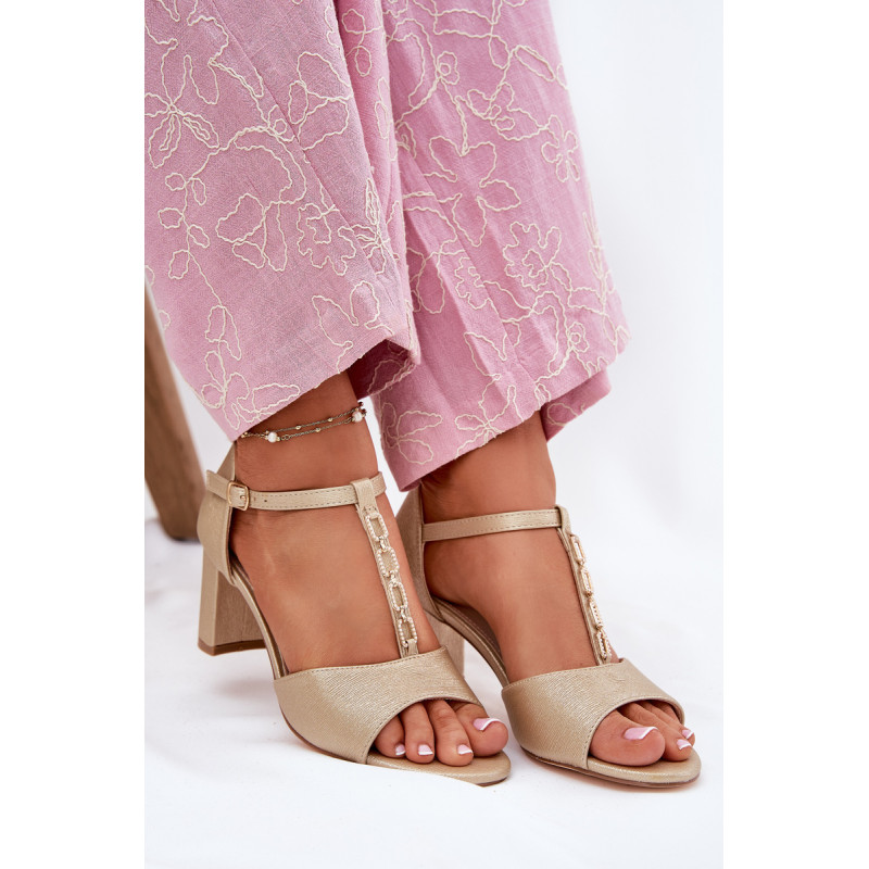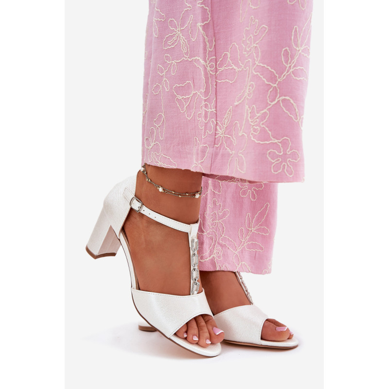 Elegantiški moteriški sandalai, pagaminti iš ekologiškos odos. Kulnas stulpelio formos. Dekoratyvinis dirželis priekyje. Papildomas privalumas – vidpadis iš natūralios odos, užtikrinantis komfortą naudojimo metu. Reguliuojamas dirželis su sagtimi leidžia reguliuoti individualiai. Puikiai tiks įvairioms progoms! Rinkdamiesi dydį, žiūrėkite dydžių lentelę.