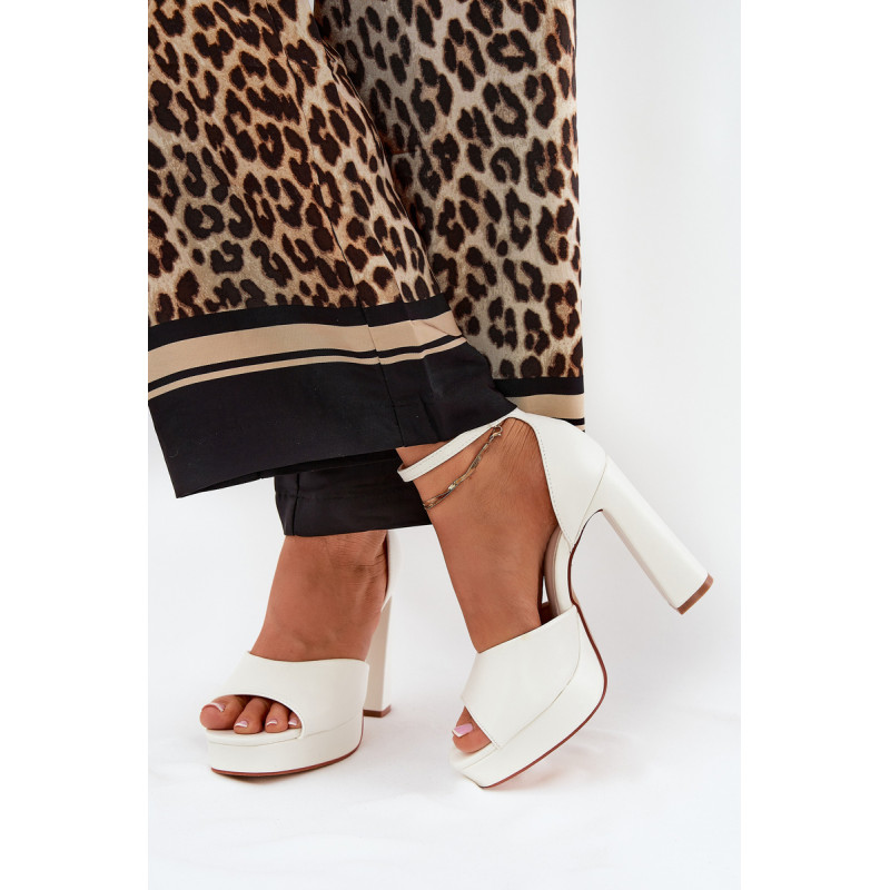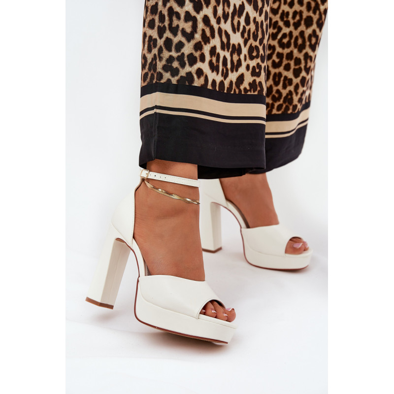 Moteriški sandalai, pagaminti iš ekologiškos odos. Įrengti ant aukšto blokinio kulno ir platformos, kurie užtikrina stabilumą ir komfortą. Uždaryti sagtimi su reguliuojamu dirželiu, leidžiančiu idealiai prisitaikyti prie pėdos. Šie sandalai yra puikus pasirinkimas vakarėliams ir įvairioms šventėms. Puikiai dera su vakarinėmis suknelėmis, kokteilių suknelėmis ir elegantiškomis kelnėmis. Renkantis dydį, vadovaukitės dydžių lentele.