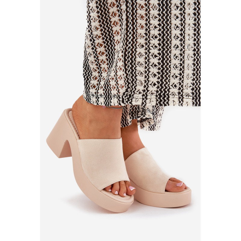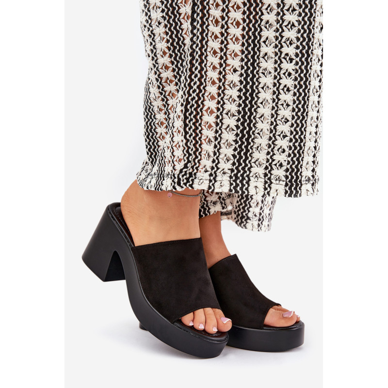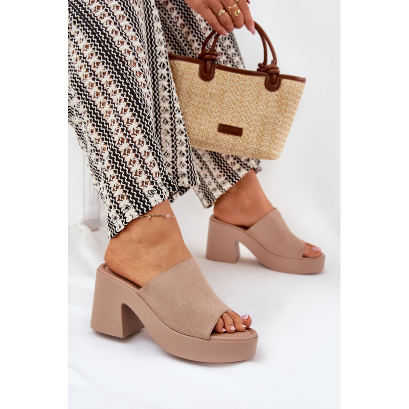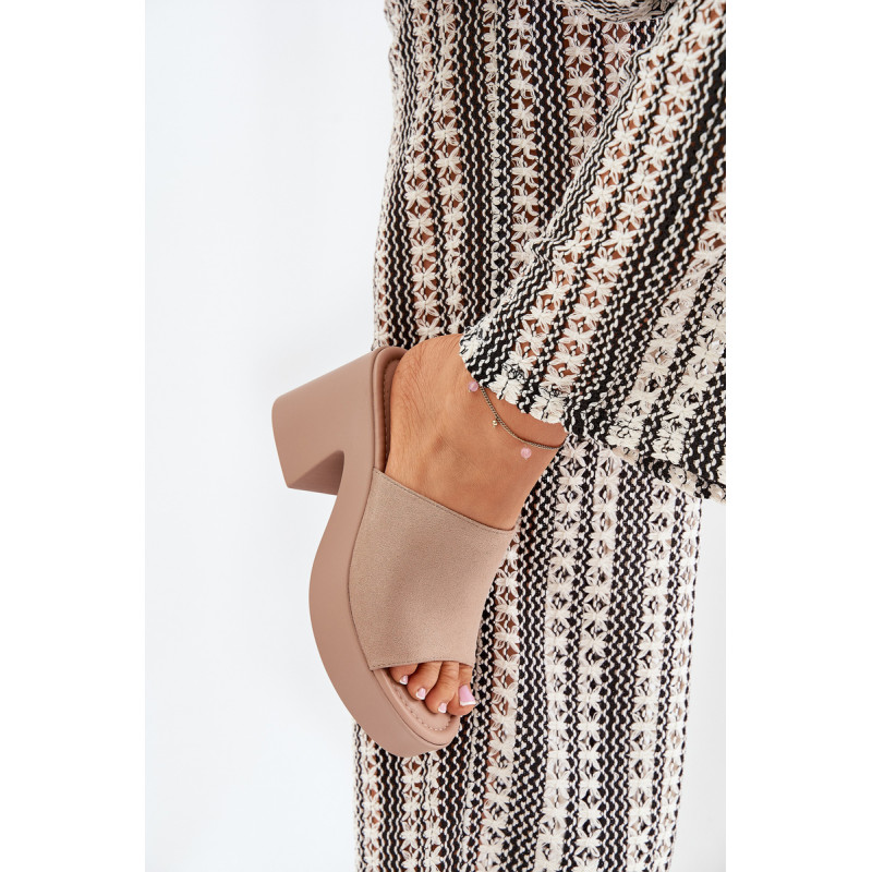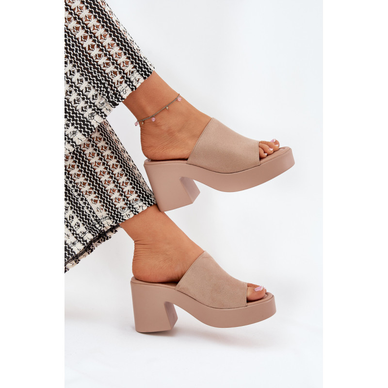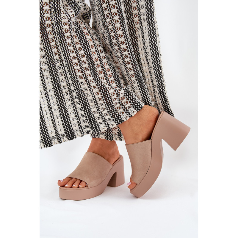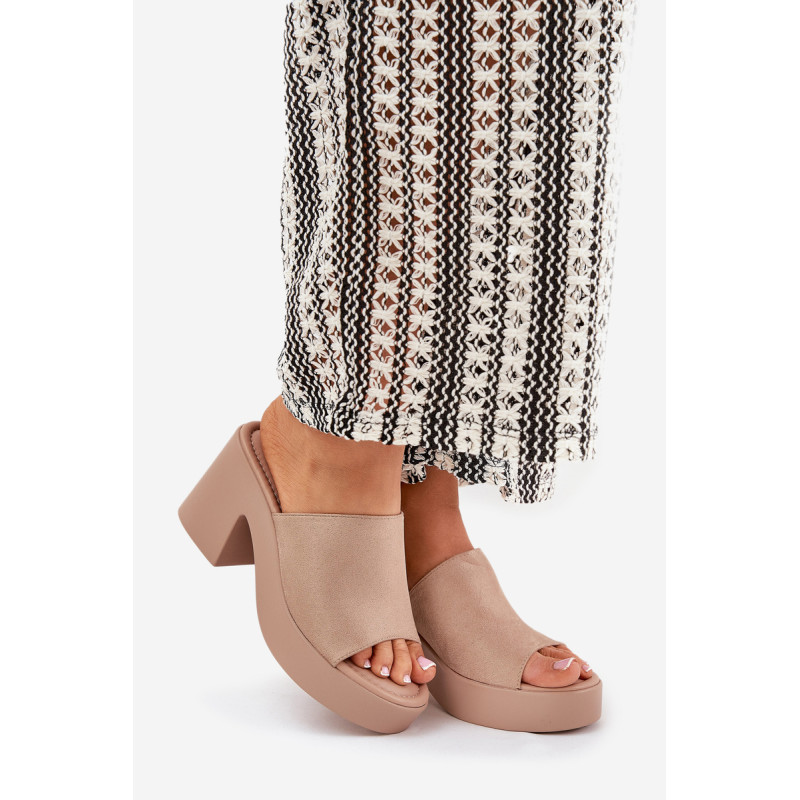Moteriški šlepetės ant platformos ir bloko kulno, kurie sujungia komfortą su madingu įvaizdžiu. Viršus pagamintas iš ekologiško zomšo, o minkšta padas užtikrina komfortą visą dieną. Klasikinis dizainas daro šias šlepetes idealiai tinkančiomis daugeliui vasaros stilių, suteikdamas elegancijos ir lengvumo kiekvienam įvaizdžiui. Idealiai tinka kasdieniams išėjimams ir ypatingoms progoms. Renkantis dydį, vadovaukitės dydžių lentele.