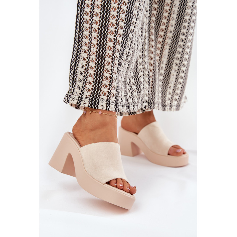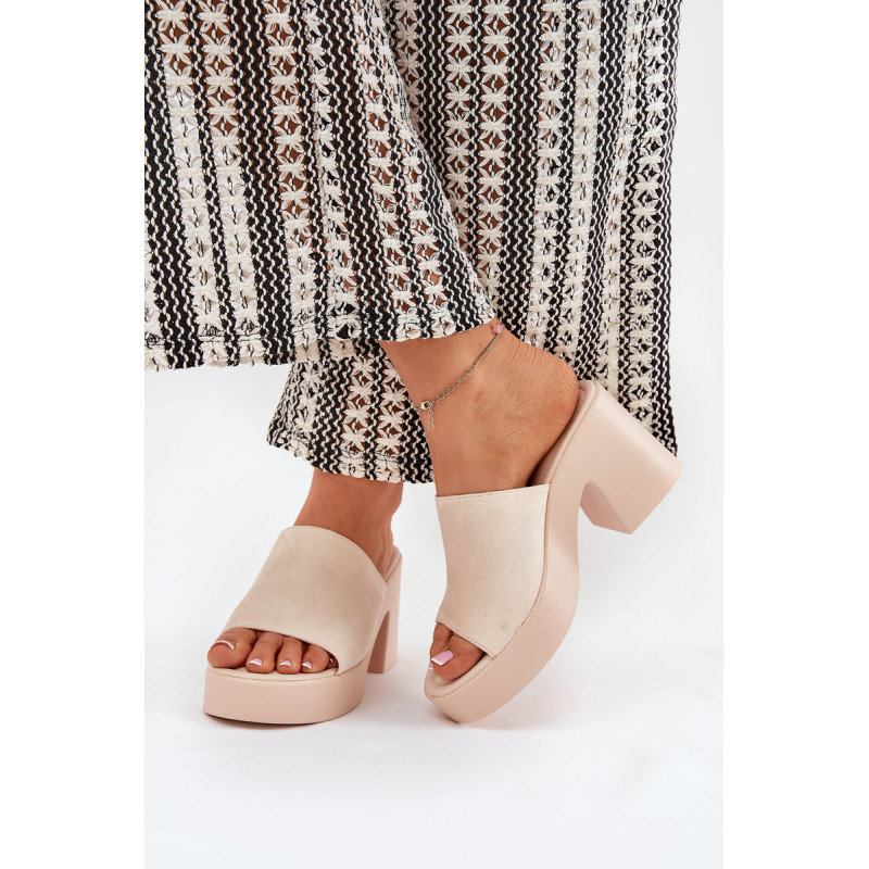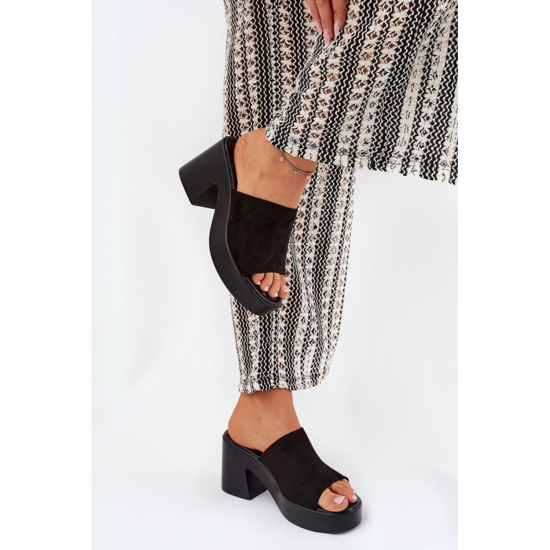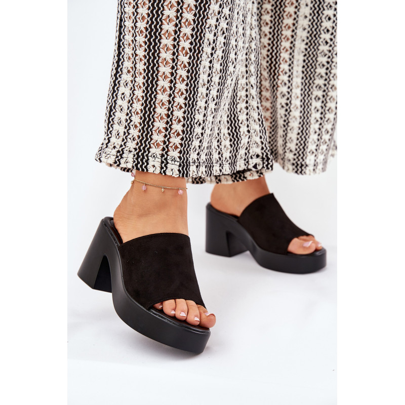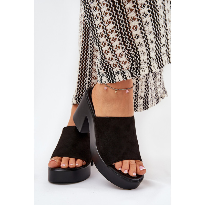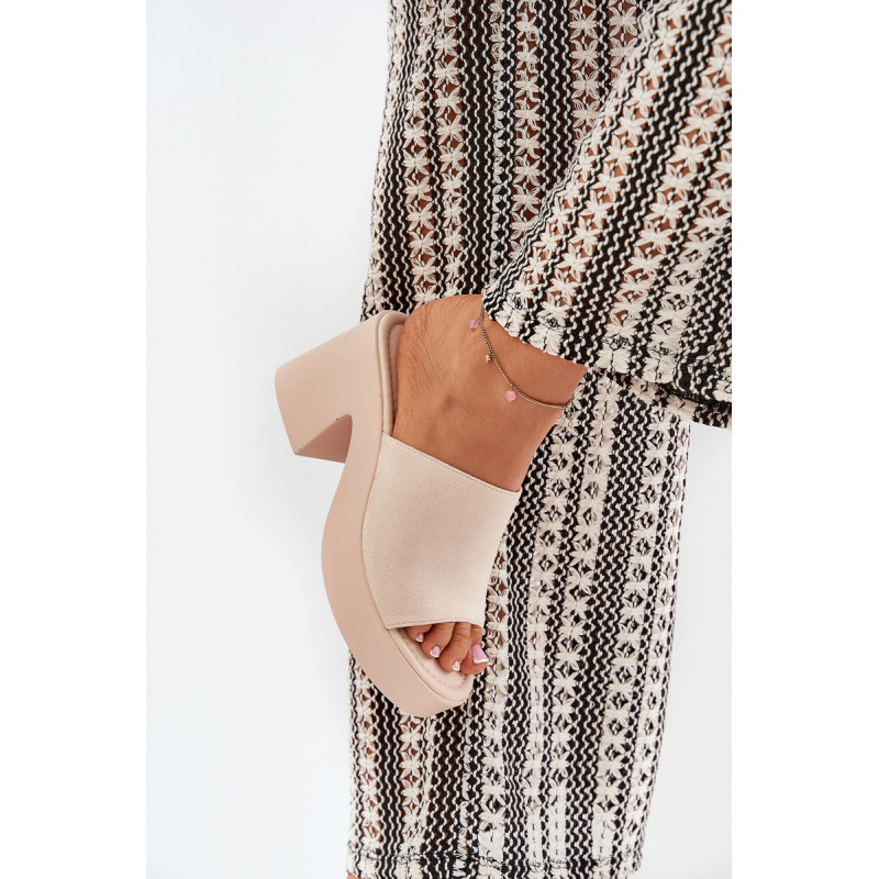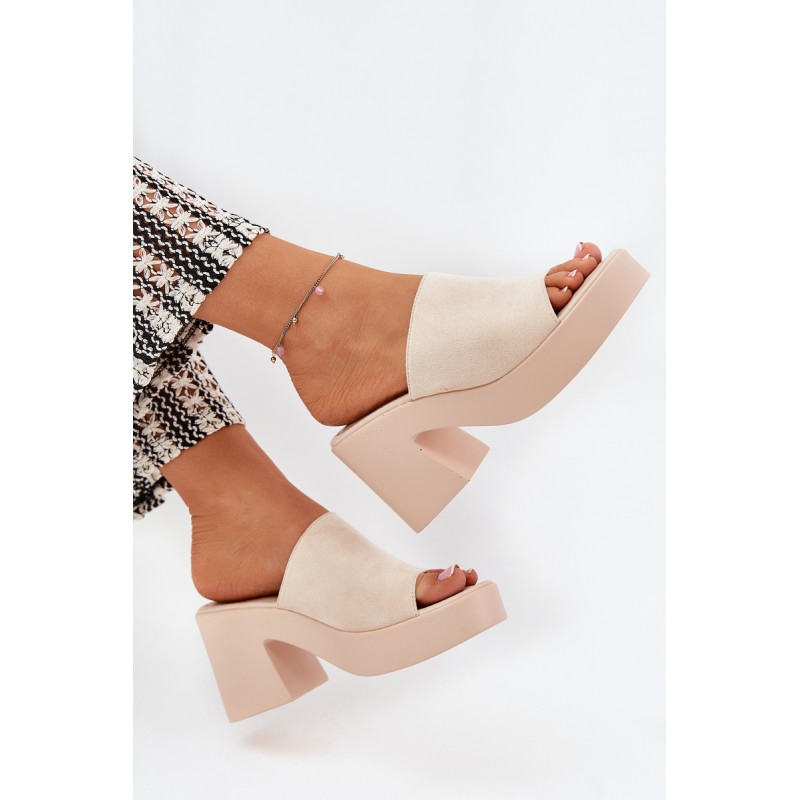 Moteriški šlepetės ant platformos ir bloko kulno, kurie sujungia komfortą su madingu įvaizdžiu. Viršus pagamintas iš ekologiško zomšo, o minkšta padas užtikrina komfortą visą dieną. Klasikinis dizainas daro šias šlepetes idealiai tinkančiomis daugeliui vasaros stilių, suteikdamas elegancijos ir lengvumo kiekvienam įvaizdžiui. Idealiai tinka kasdieniams išėjimams ir ypatingoms progoms. Renkantis dydį, vadovaukitės dydžių lentele.