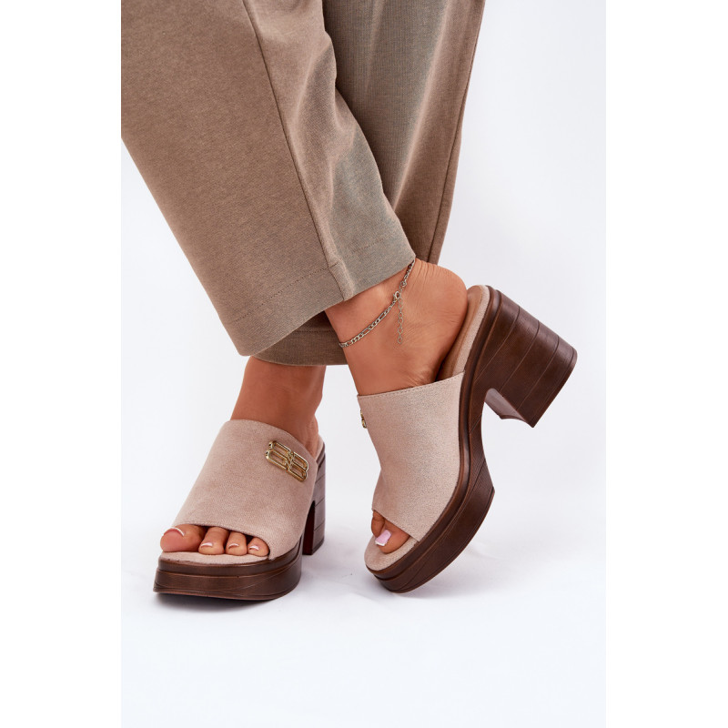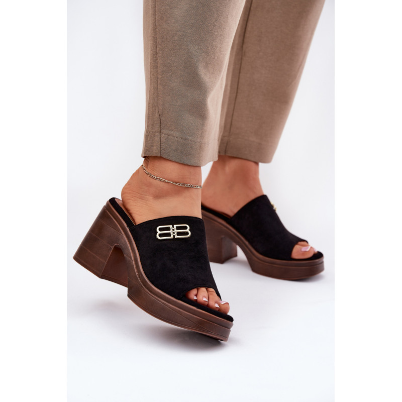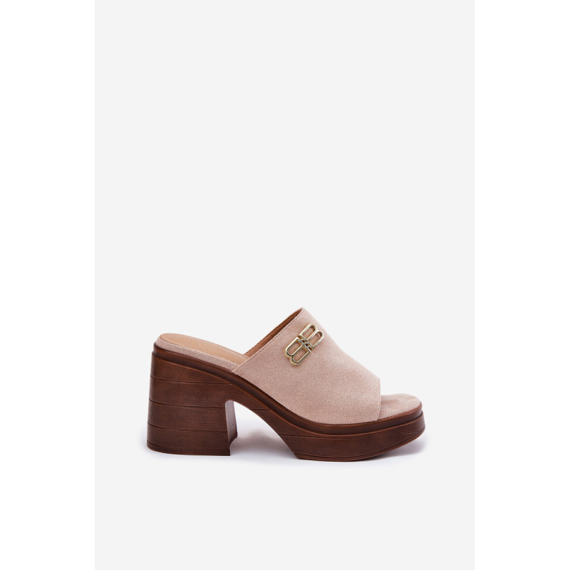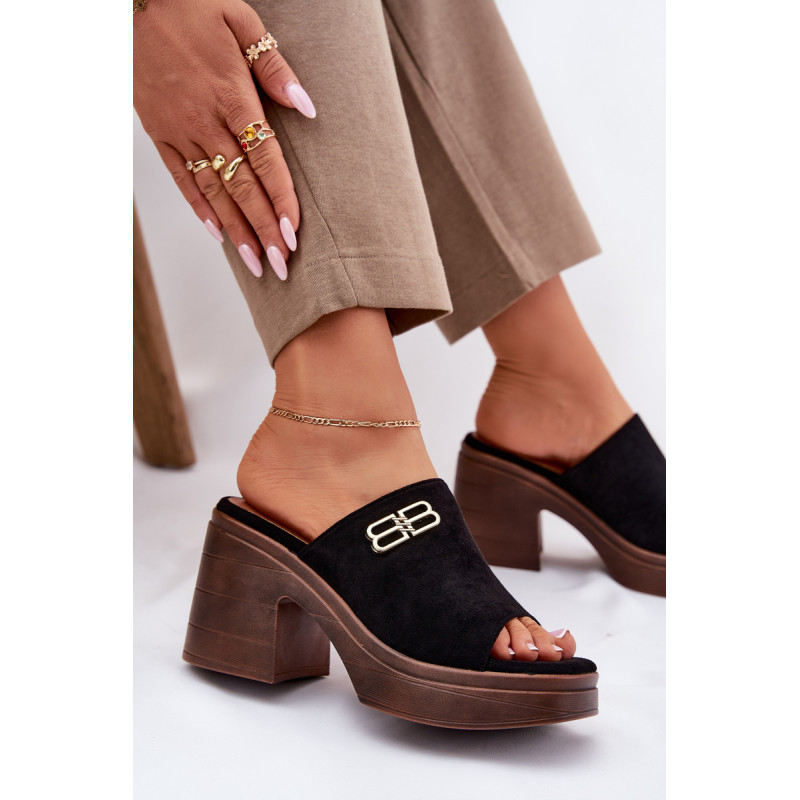 Eleganti moteriški šlepetės, pagamintos iš eko zomšos, yra ideali pasirinkimo galimybė ypatingoms progoms. Auksinė detalė priekyje suteikia subtilų spindesį, suteikdama elegantišką charakterį. Įrengti ant masyvaus kulno ir platformos, jie užtikrina stabilumą ir komfortą visą dieną. Šios šlepetės sujungia modernų dizainą su funkcionalumu, puikiai derindamos su elegantiškais stiliumi įvairioms šventėms ir vakariniams išėjimams. Renkantis dydį, vadovaukitės dydžių lentele.