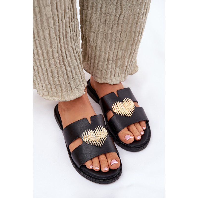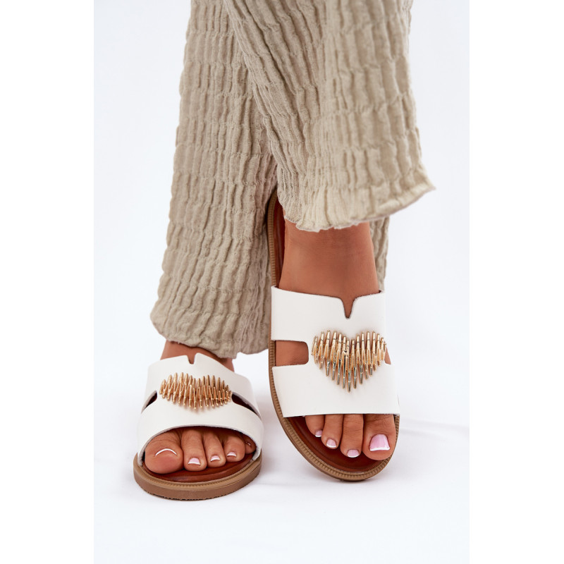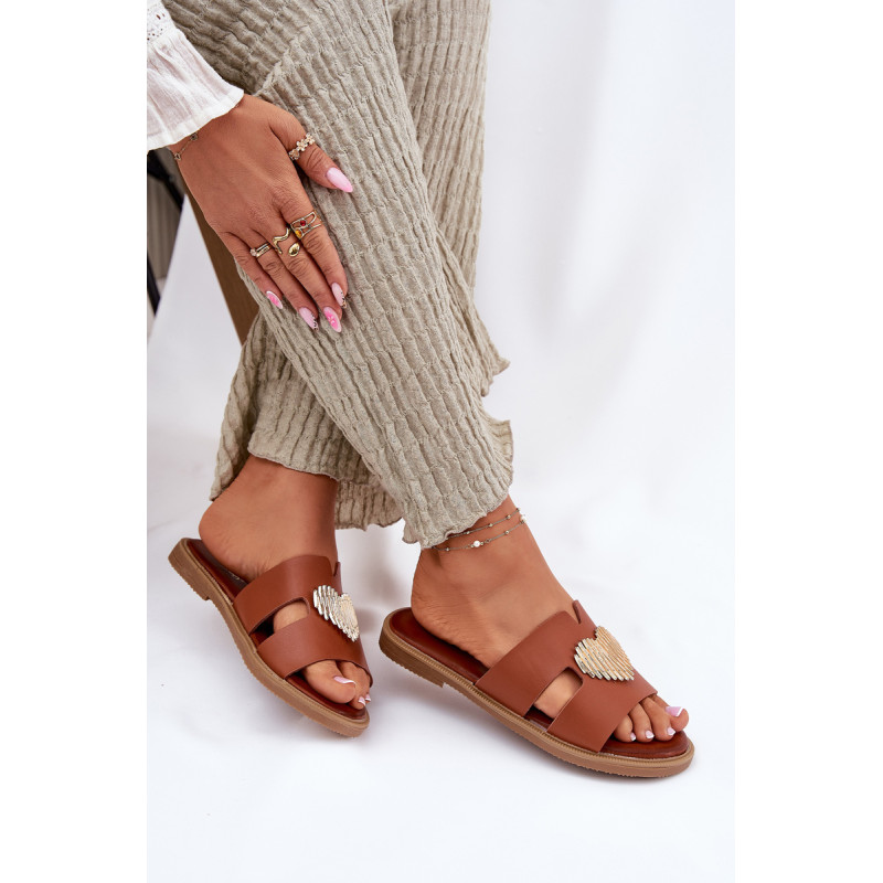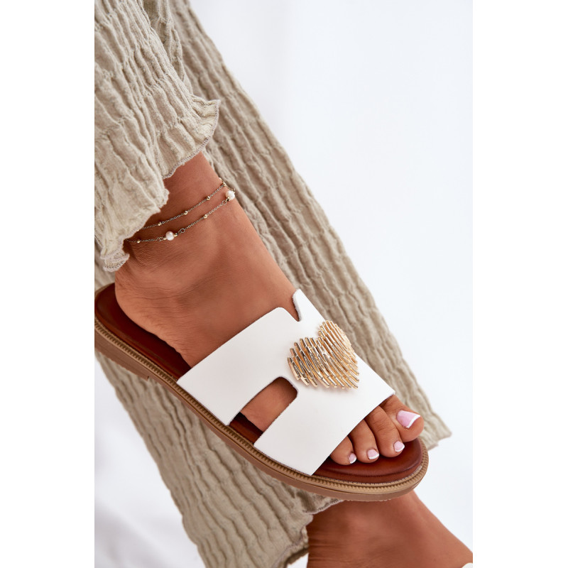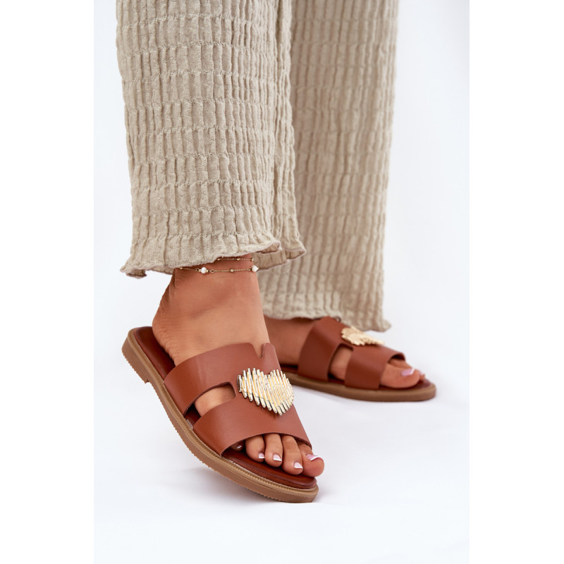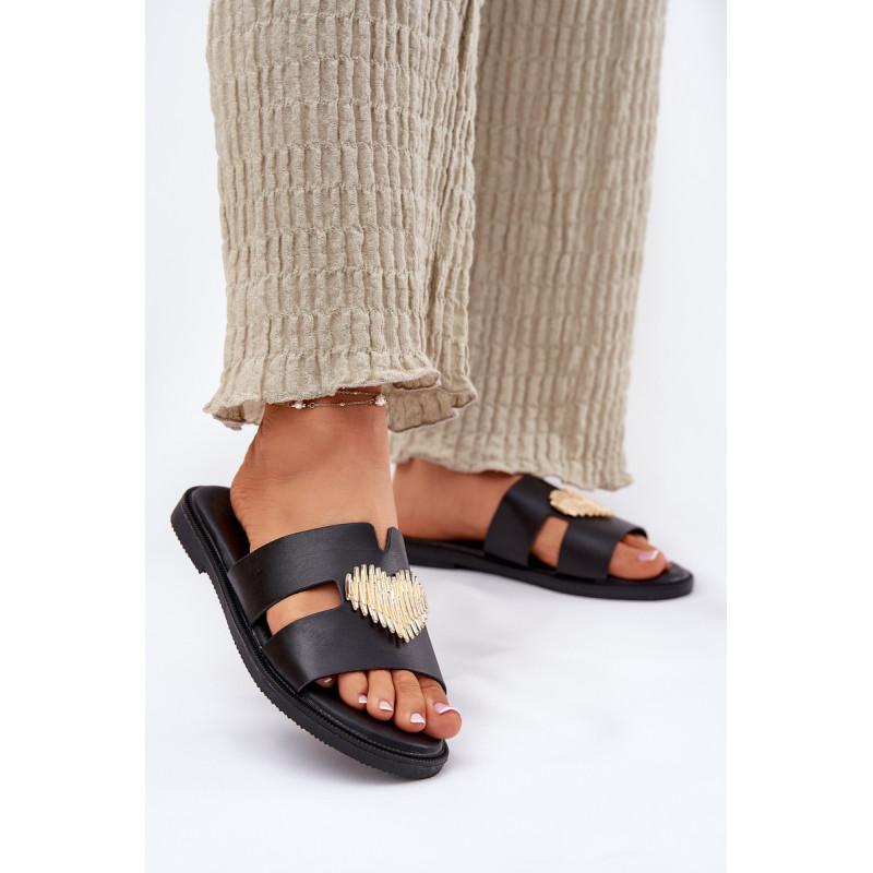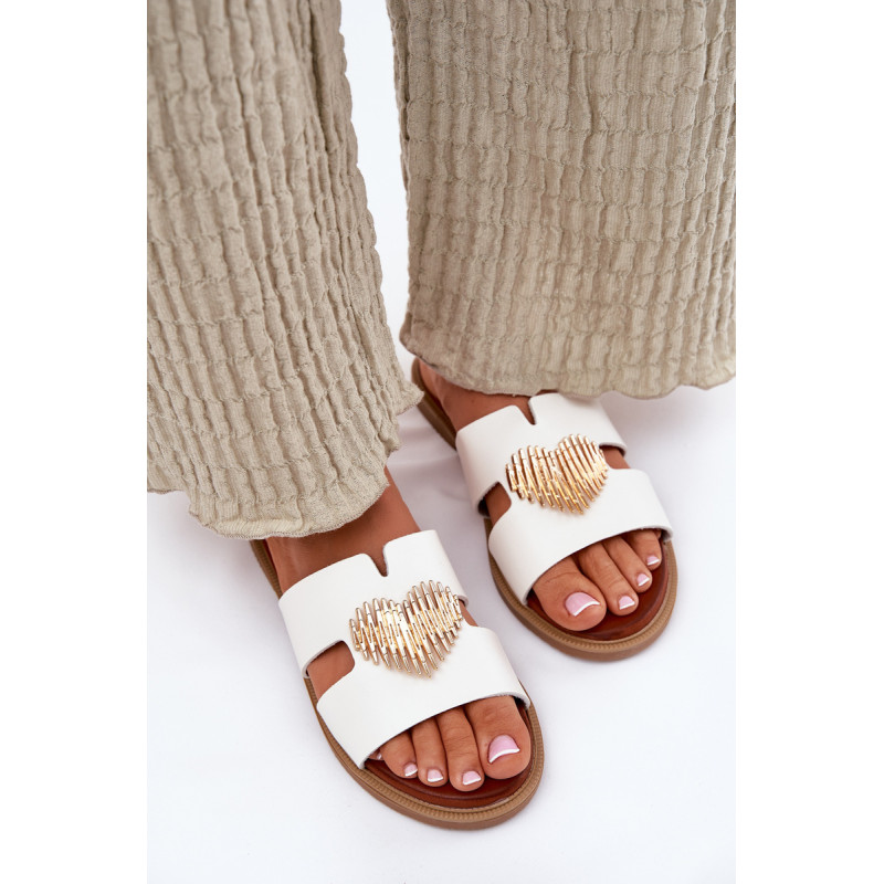 Moteriški šlepetės, pagamintos iš ekologiškos odos, yra puikus pasirinkimas šiltomis dienomis. Įrengtos ant plokščio kulno, jos visą dieną užtikrina komfortą ir lengvumą. Priekyje yra žavingas širdelės formos papuošalas, suteikiantis joms subtilaus žavesio. Minkšta vidpadžio medžiaga garantuoja komfortą, todėl šios šlepetės yra puikus pasirinkimas vasaros stiliams, sujungiant eleganciją su funkcionalumu. Idealiai tinka kasdieniams pasivaikščiojimams saulėtomis dienomis! Renkantis dydį, vadovaukitės dydžių lentele.